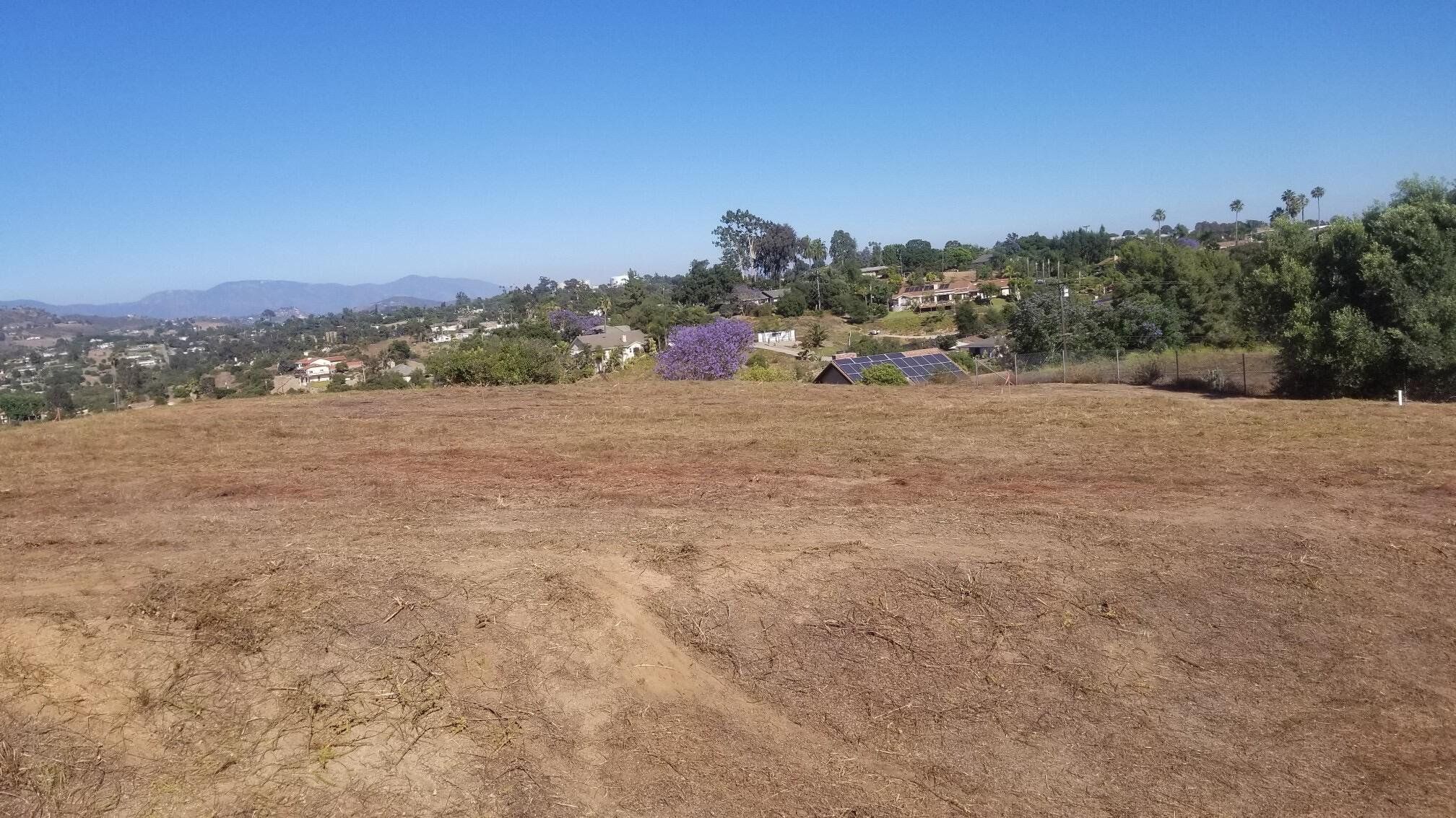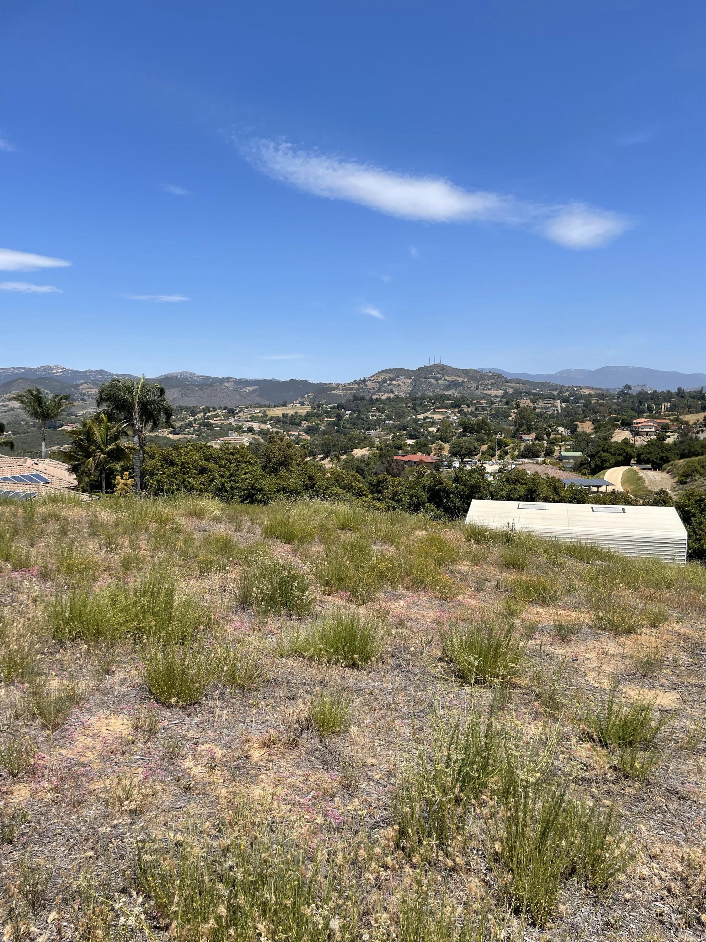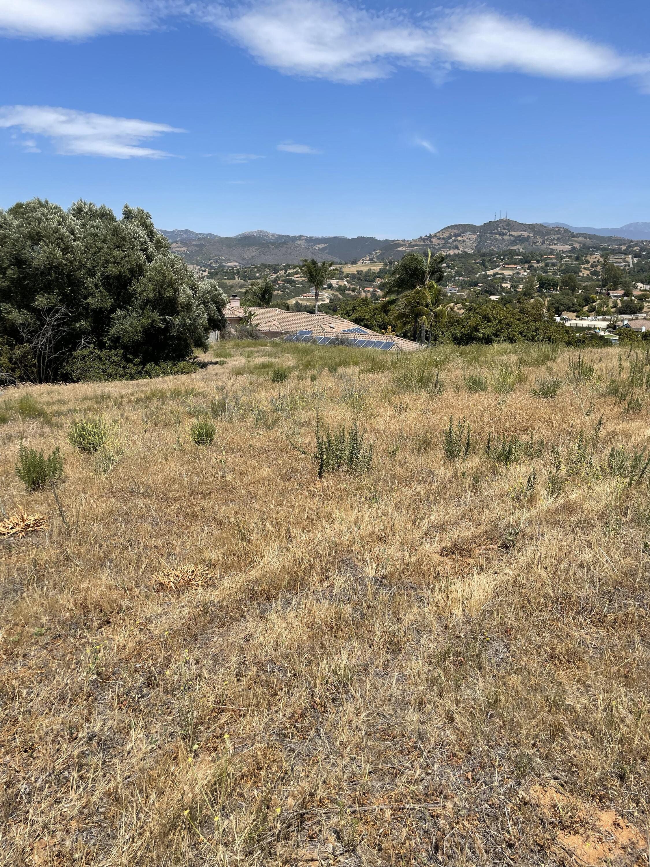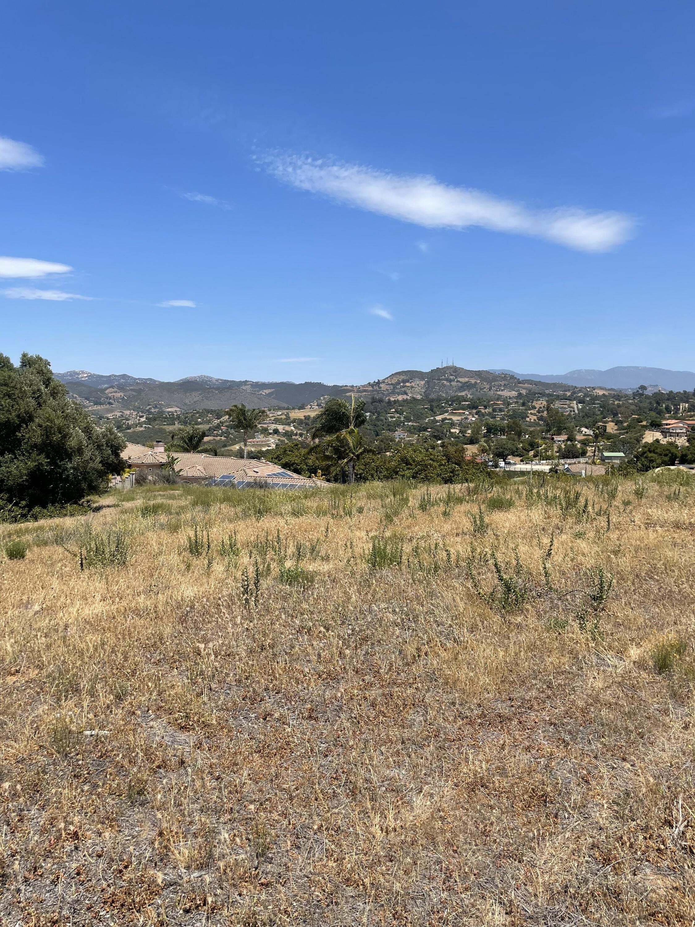 2.45 acre parcel on Knoll Park Lane in Fallbrook. This beautiful property has a 360-degree view and was owned by the Fallbrook Water District from 1959 until just last year, otherwise it would have been developed many years ago, due to its beautiful setting. The lot had a comprehensive perc test done last year and recently received septic approval for a 4-BR home, and an ADU could easily be included. The water district already has water onsite, making for an easy meter installation. There is also already an SDGE easement and power pole. The property is completely fenced on 3 boundaries, with vehicle access. It also has easements along the main road for impressive driveway options. There is a center knoll sloping slightly in every direction with large usable areas. There are a few olive trees scattered throughout. This is a truly special "King-of-the-Hill" type of property. Close to town and close to Interstate 15, in beautiful Fallbrook. A park-like setting with refreshing breezes and spectacular views!