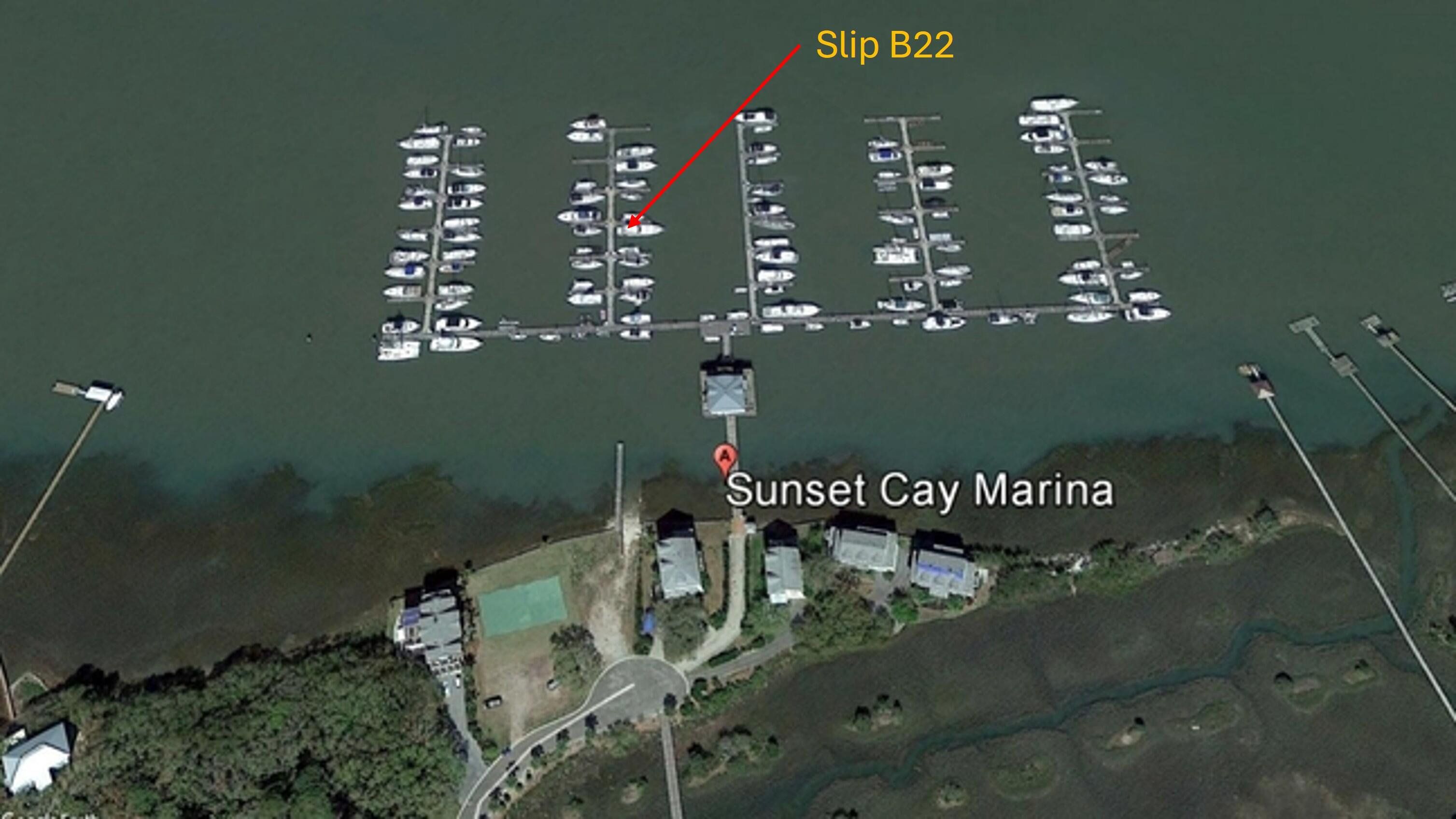 Sunset Cay Marina Boat Slip B22 located in Folly Beach South Carolina on the Folly River. The boat slip can accommodate up to a 55ft boat and has storm proven concrete pier construction with wood decks. The location is hard to beat with the marina parking lot located in between the Atlantic Ocean and your boat with a short walk to either. Slip B22 is one of the most protected in the marina and has a wide turning radius to your slip with no neighboring boats on the adjacent Pier C. Run offshore or travel in protected waters to Charleston Harbor, only a short distance to the Stono Inlet or the Inter Coastal Waterway.