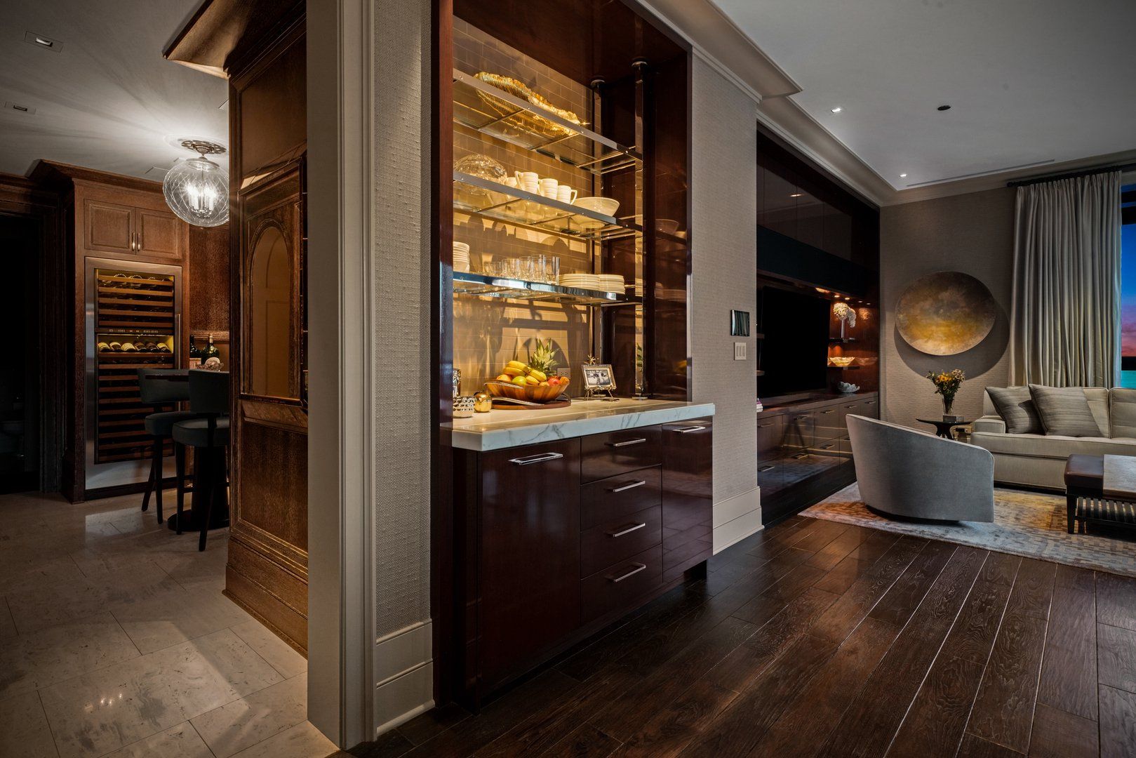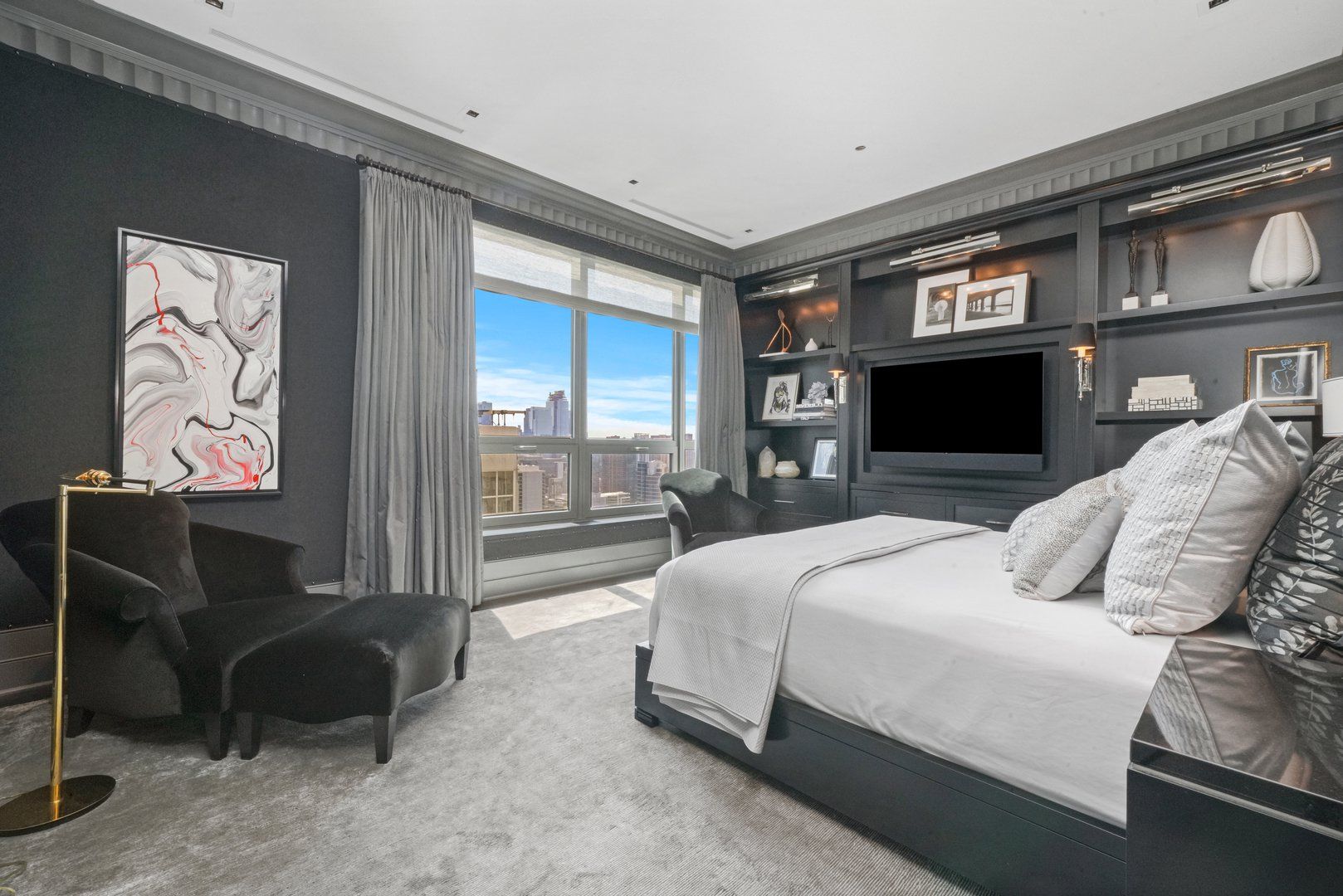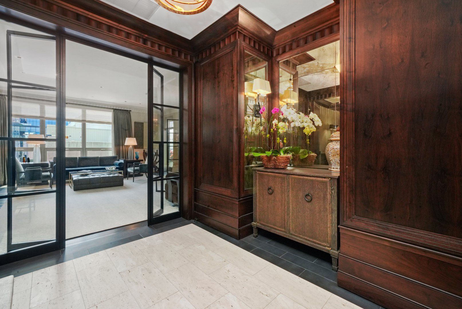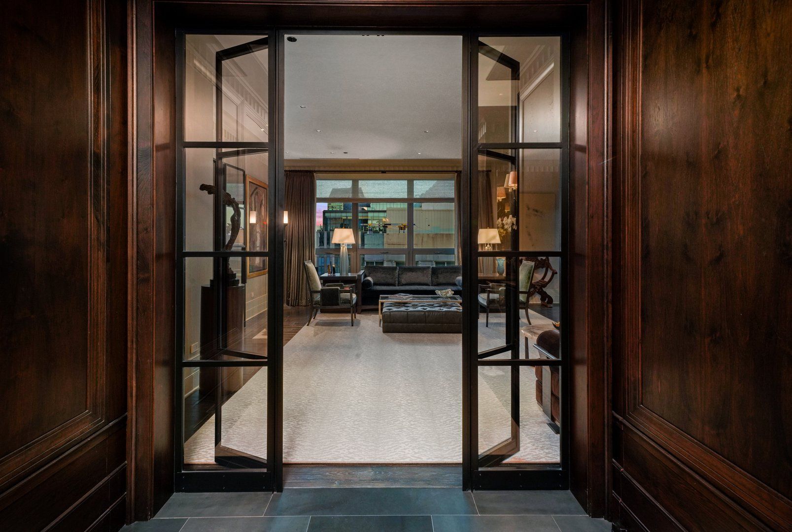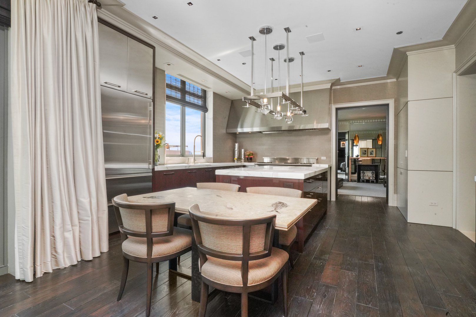 Perched atop the prestigious "10 East" in Chicago's sought-after Gold Coast, this extraordinary custom penthouse defines refined luxury. A dramatic foyer wrapped in rich walnut paneling sets the tone, opening into expansive living and entertaining spaces thoughtfully designed with impeccable craftsmanship throughout. The grand Living Room flows seamlessly into a warm, inviting Family Room and a showstopping chef's kitchen featuring custom Wenge cabinetry, striking 3-inch-thick Calacatta Gold countertops, and world-class appliances including a 60" La Cornue range and Sub-Zero refrigerator/freezer. Designed for both everyday living and elevated entertaining, the layout offers sophistication at every turn. Two oversized private terraces provide sweeping views of the Gold Coast, Chicago skyline, and Lake Michigan-an exceptional backdrop for outdoor dining or quiet mornings above the city. The primary suite is a true sanctuary, entered through a private den or office and enhanced by illuminated custom built-ins and exquisite millwork. A fully organized walk-in closet and a spa-caliber bath with Calacatta Gold stone slabs, heated floors, and a custom William Garvey teak Japanese soaking tub complete the retreat. Additional highlights include a custom wine room, wide-plank hand-scraped hickory flooring, Lutron touchpad lighting system, gas fireplace, and exceptional storage throughout. The residence includes two deeded parking spaces (available at additional cost) and a full-height storage locker. Residents of 10 East enjoy premier amenities including a rooftop pool, state-of-the-art fitness center, and 24-hour door staff-all moments from Michigan Avenue, Rush Street, and the lakefront. This is Gold Coast penthouse living at its finest. Explore the property in 3D-click the 3D tour to experience every detail.