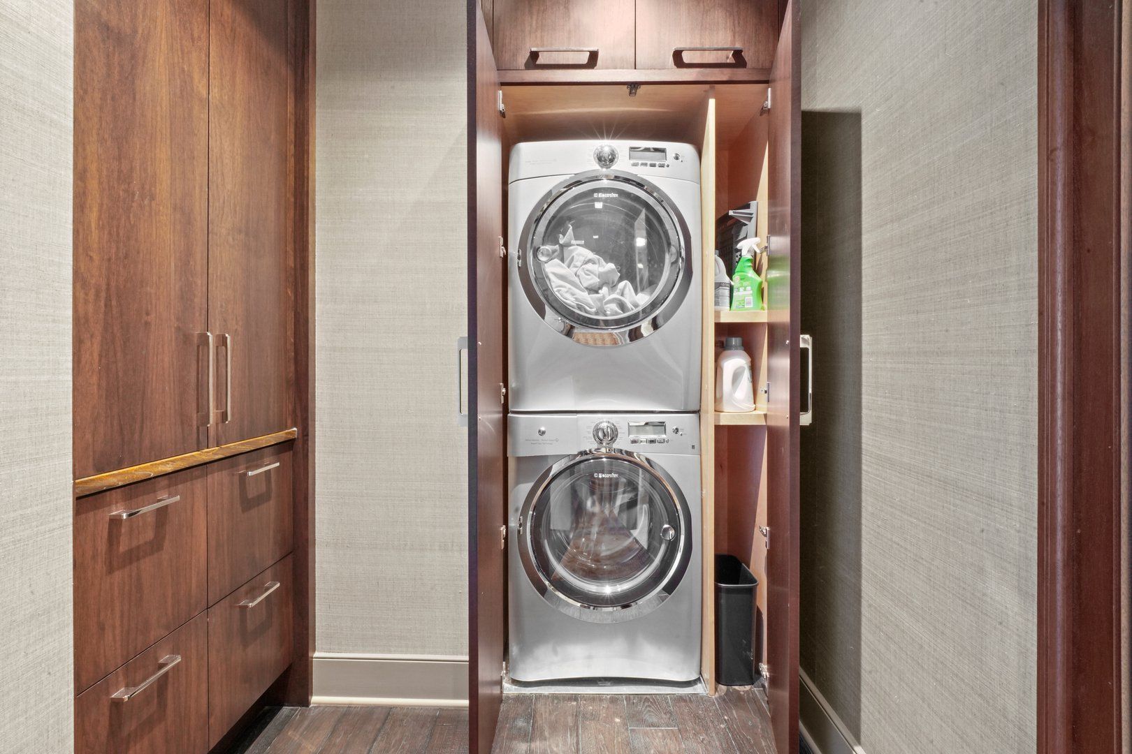 Appliances: Double Oven, Microwave, Dishwasher, Refrigerator, High End Refrigerator, Washer, Dryer, Disposal, Indoor Grill, Stainless Steel Appliance(S)