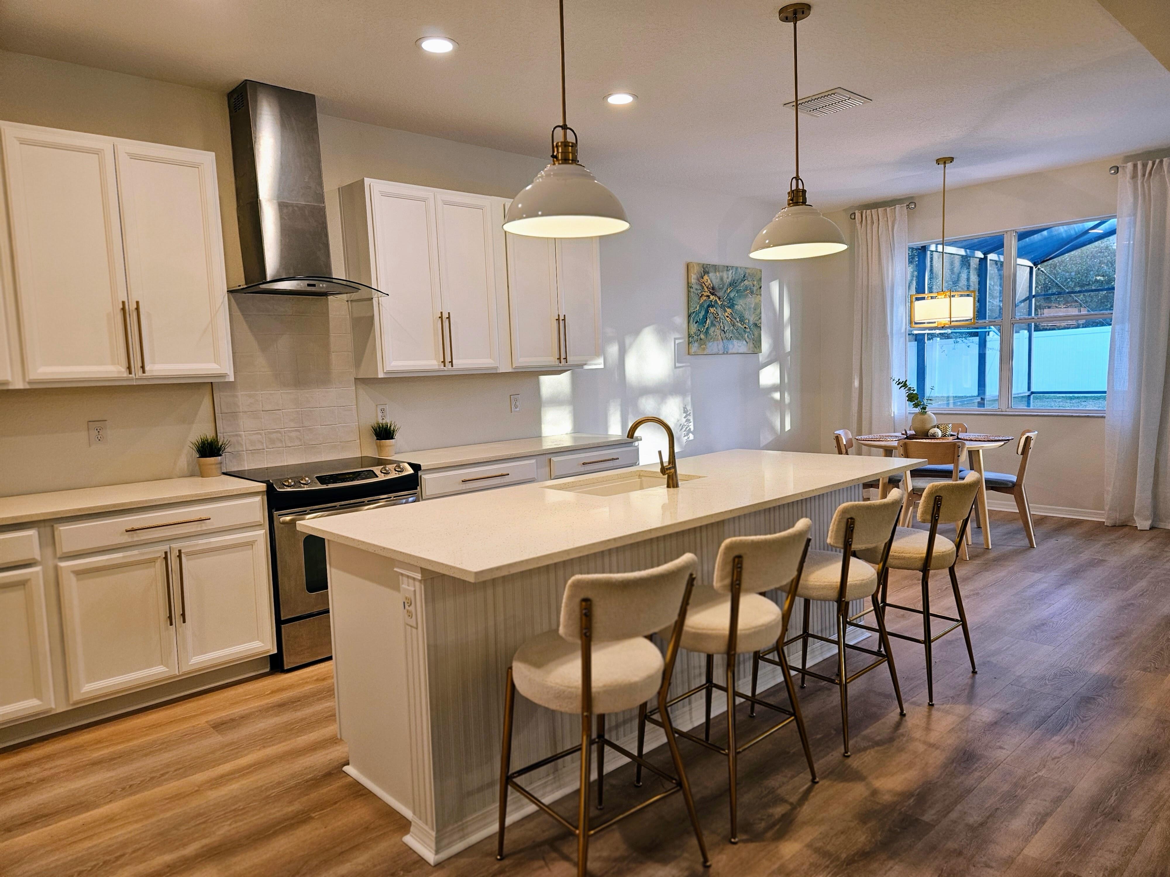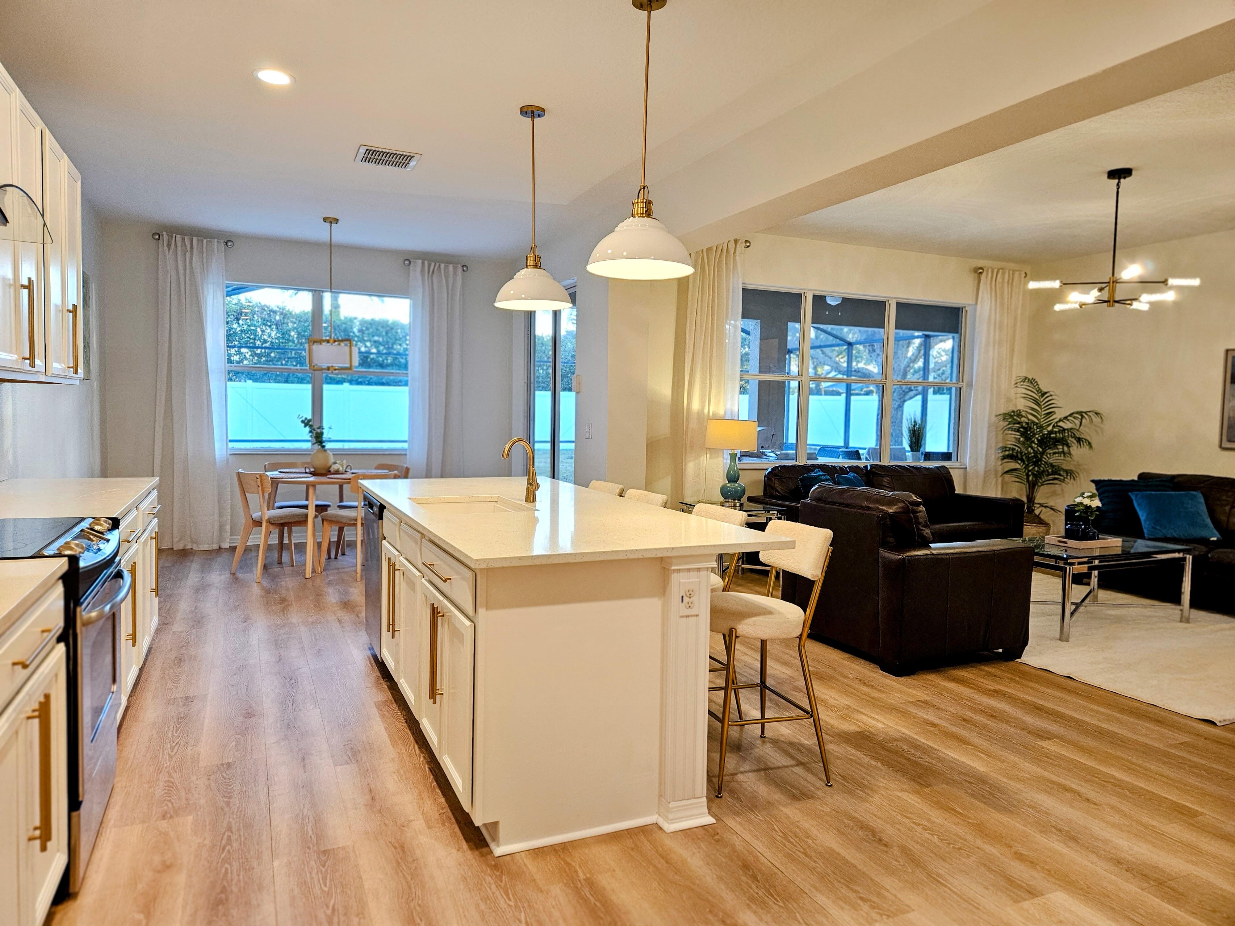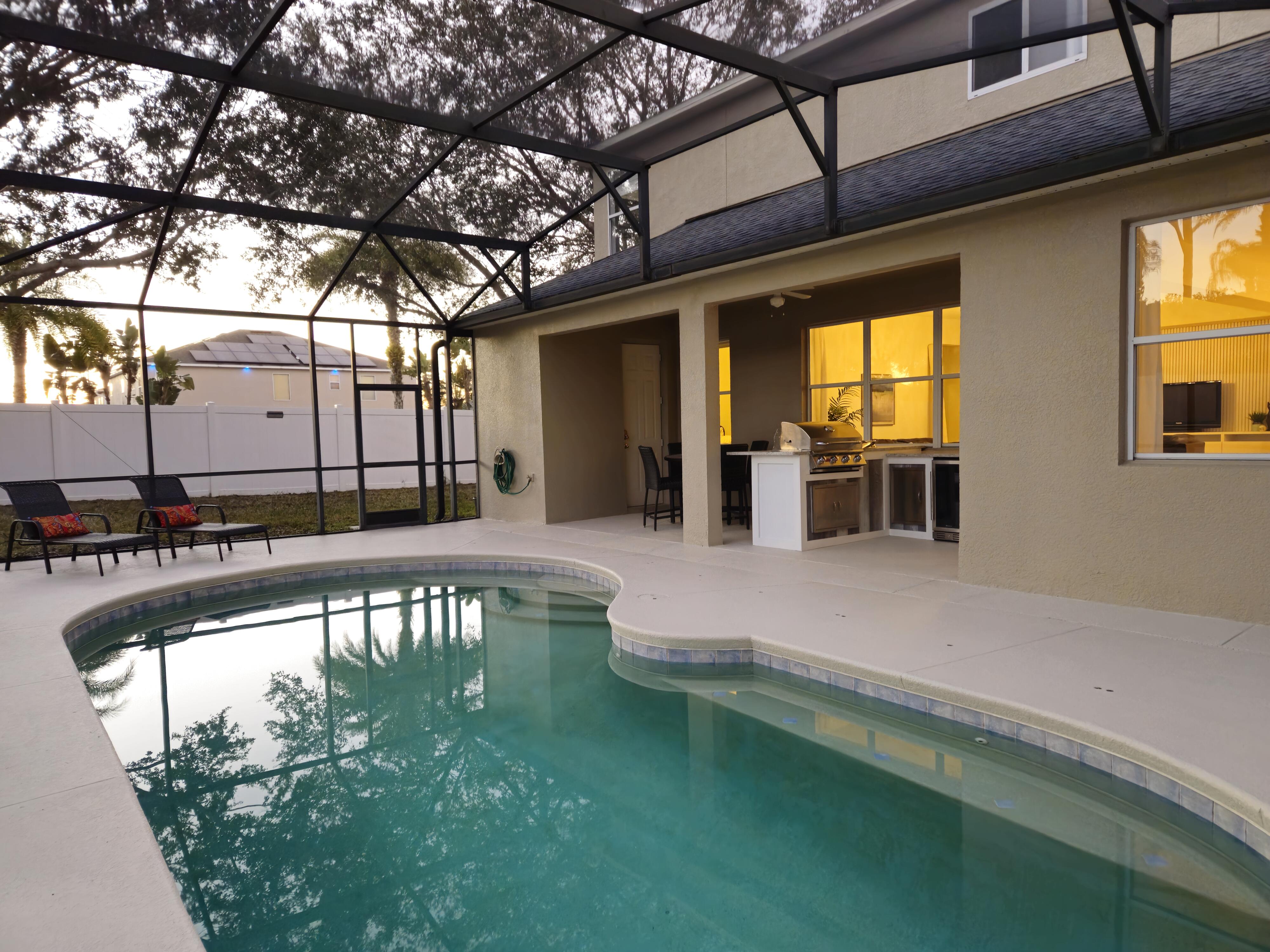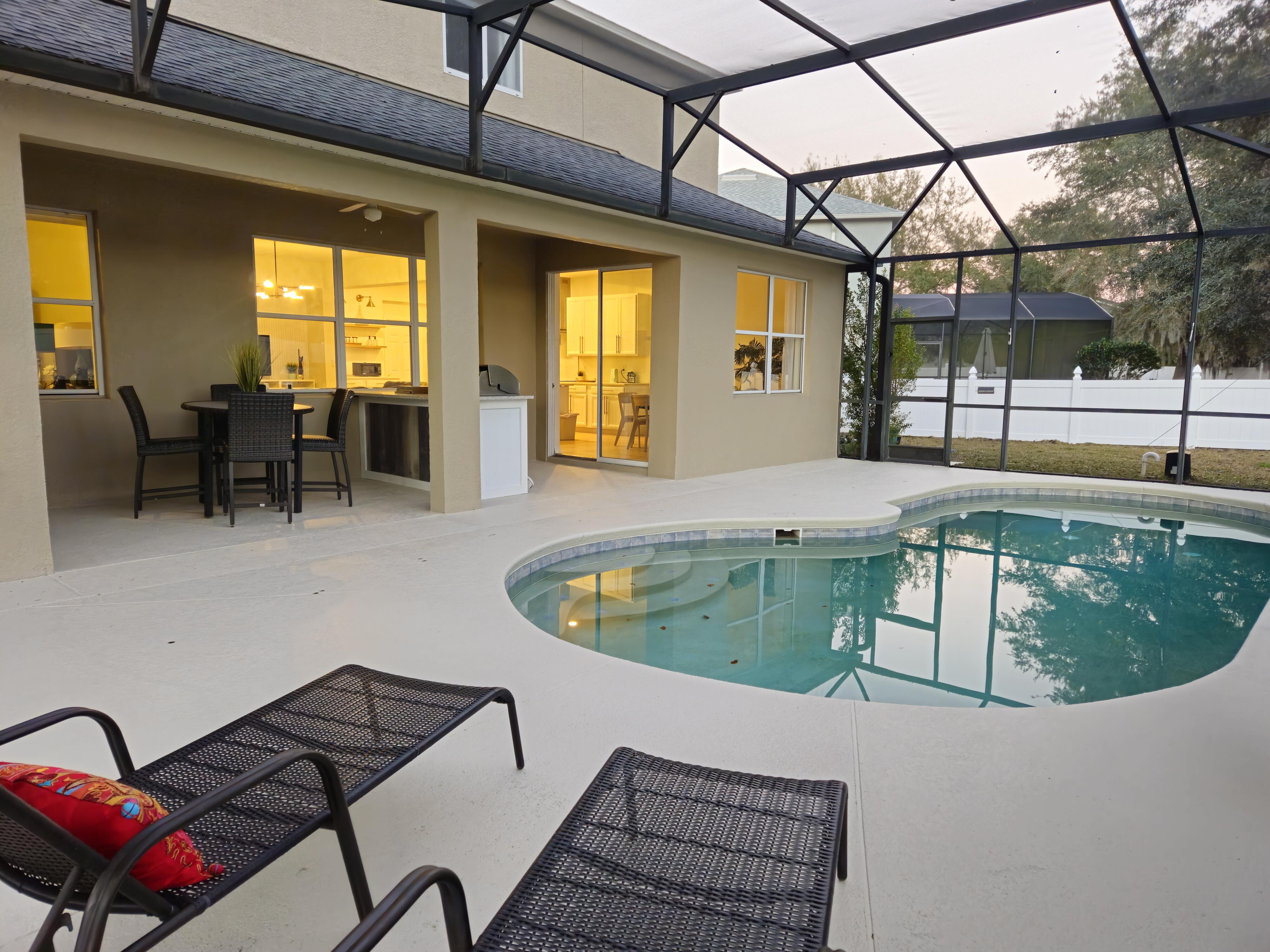 Welcome to this standout 5-bedroom, 4.5-bath residence situated on an oversized corner lot in Davenport. This spacious home delivers a seamless balance of luxury, comfort, and practicality, making it a top-tier choice for full-time living, seasonal getaways, or income-producing opportunities. Located just minutes from Disney and the Orlando attractions, the property blends comfort and convenience with quick access to shopping centers, grocery stores, restaurants, and essential services. This prime setting makes it an excellent option for both transient stays and long-term residents. Completely remodeled in 2026 with over $70,000 in top-of-the-line upgrades, the home showcases quality craftsmanship and modern design throughout. The interior and exterior have been completely freshly painted, enhancing the home’s bright, clean, and move-in-ready appeal. The open and airy floor plan provides generous space for entertaining and everyday living. A standout feature of the home is the private pool suite with its own separate entrance, well-suited for in-laws, extended family, or Airbnb guests. This flexible space adds privacy and significantly increases rental and income potential. Step outside to your private backyard oasis, featuring a heated pool and a fully equipped outdoor kitchen, tailored for year round entertaining or relaxing evenings at home. The backyard is fully fenced for added privacy. Additional upgrades include new irrigation sprinklers, a new pool filter, and an epoxy finished garage that is currently being used as an entertainment room. Parking is convenient with space for two cars in the driveway, and this community is one of the few in the area that allows street parking as well. Beautifully maintained and immaculate, the home is professionally decorated and being sold fully furnished and completely turn key, allowing for immediate enjoyment or rental use. Major systems have been thoughtfully updated, including a roof that is only three years old and a new AC system installed in 2024, providing peace of mind and long term value. With its close proximity to Orlando attractions, easy access to everyday conveniences, and the added advantage of a low HOA with no street parking or rental restrictions, this property represents an outstanding investment opportunity with strong potential for passive income. Whether you are seeking a primary residence, a private retreat, or an income producing property, this home truly delivers on all fronts. Schedule your private tour today and experience the ultimate combination of luxury, convenience, and investment potential.