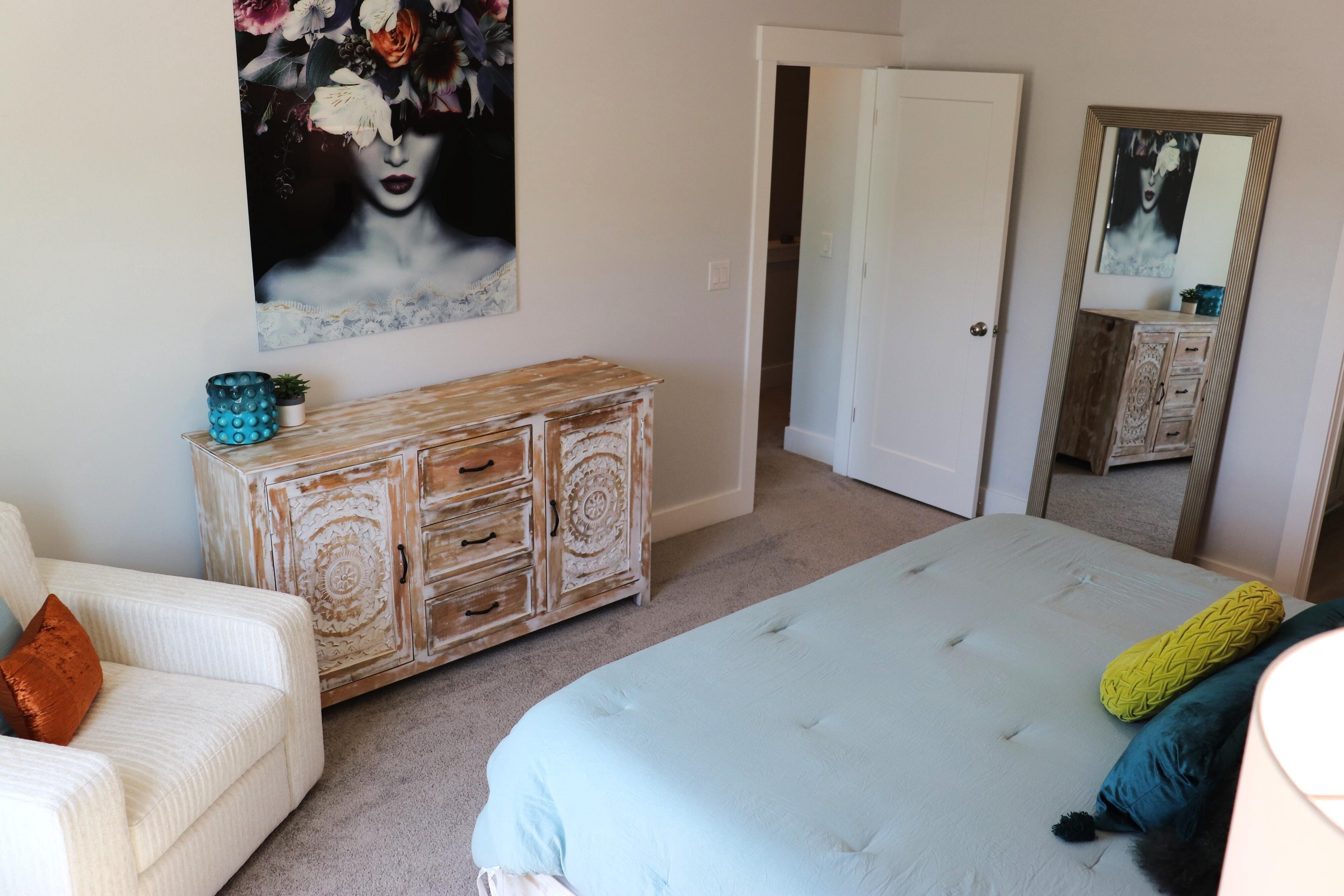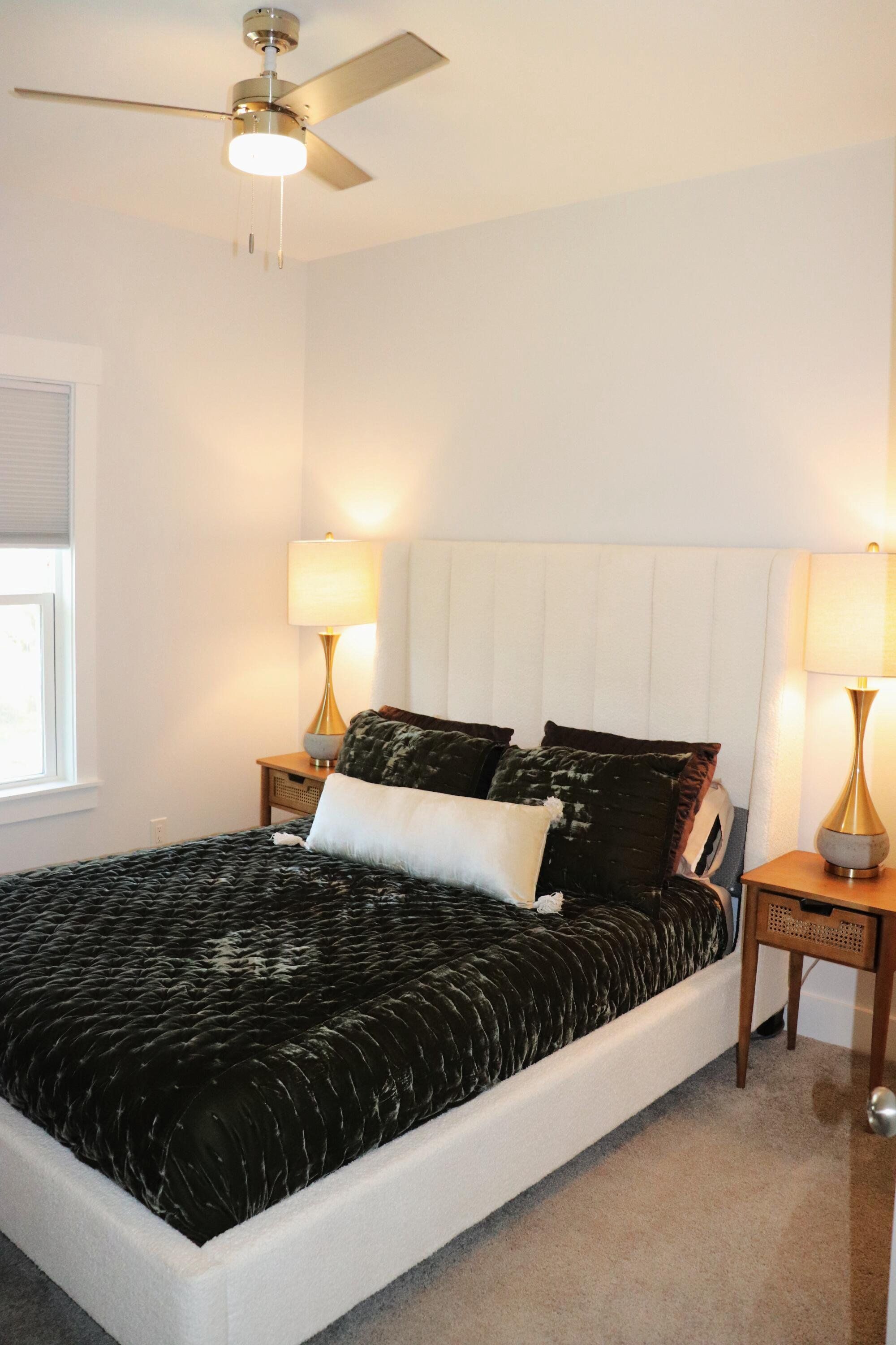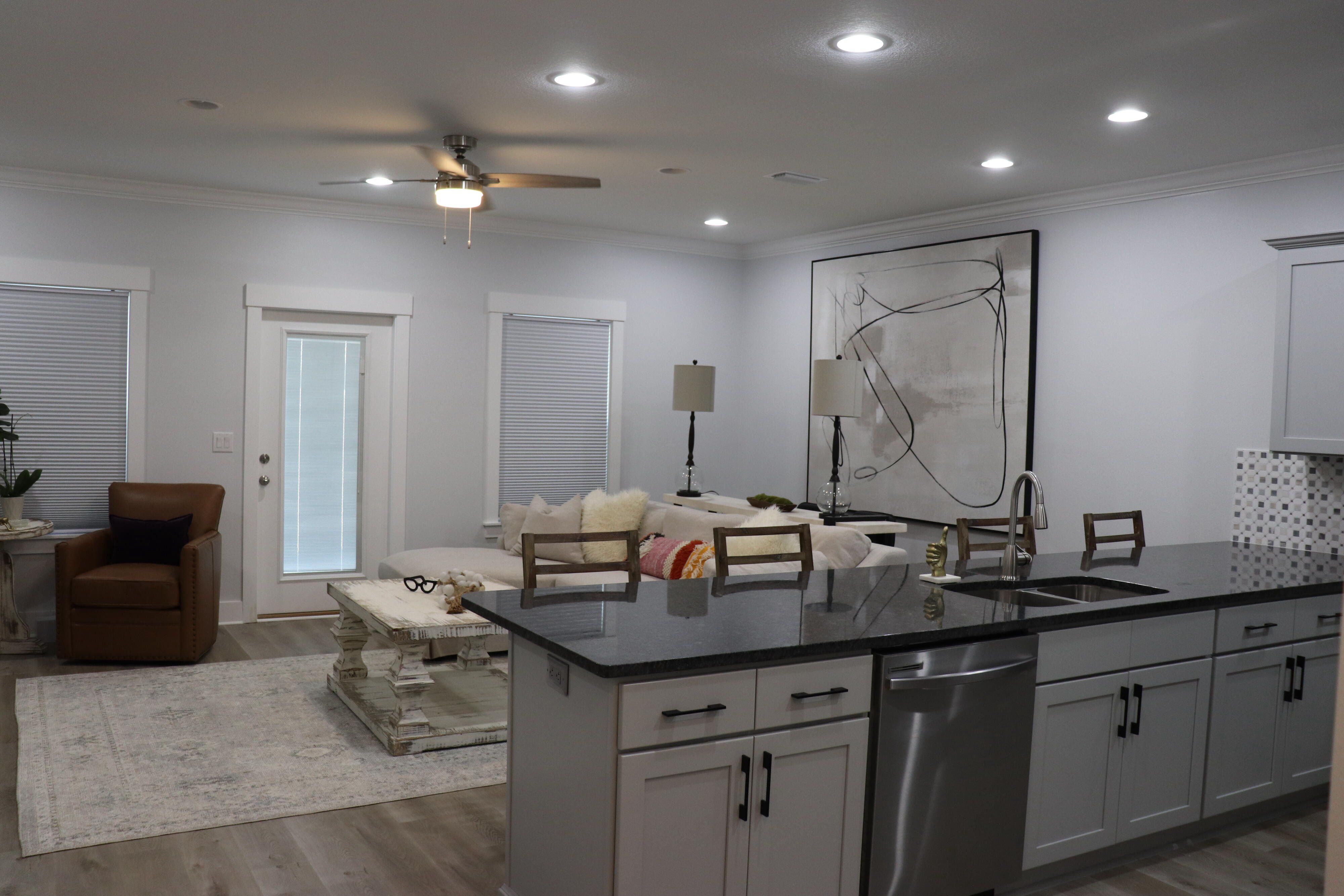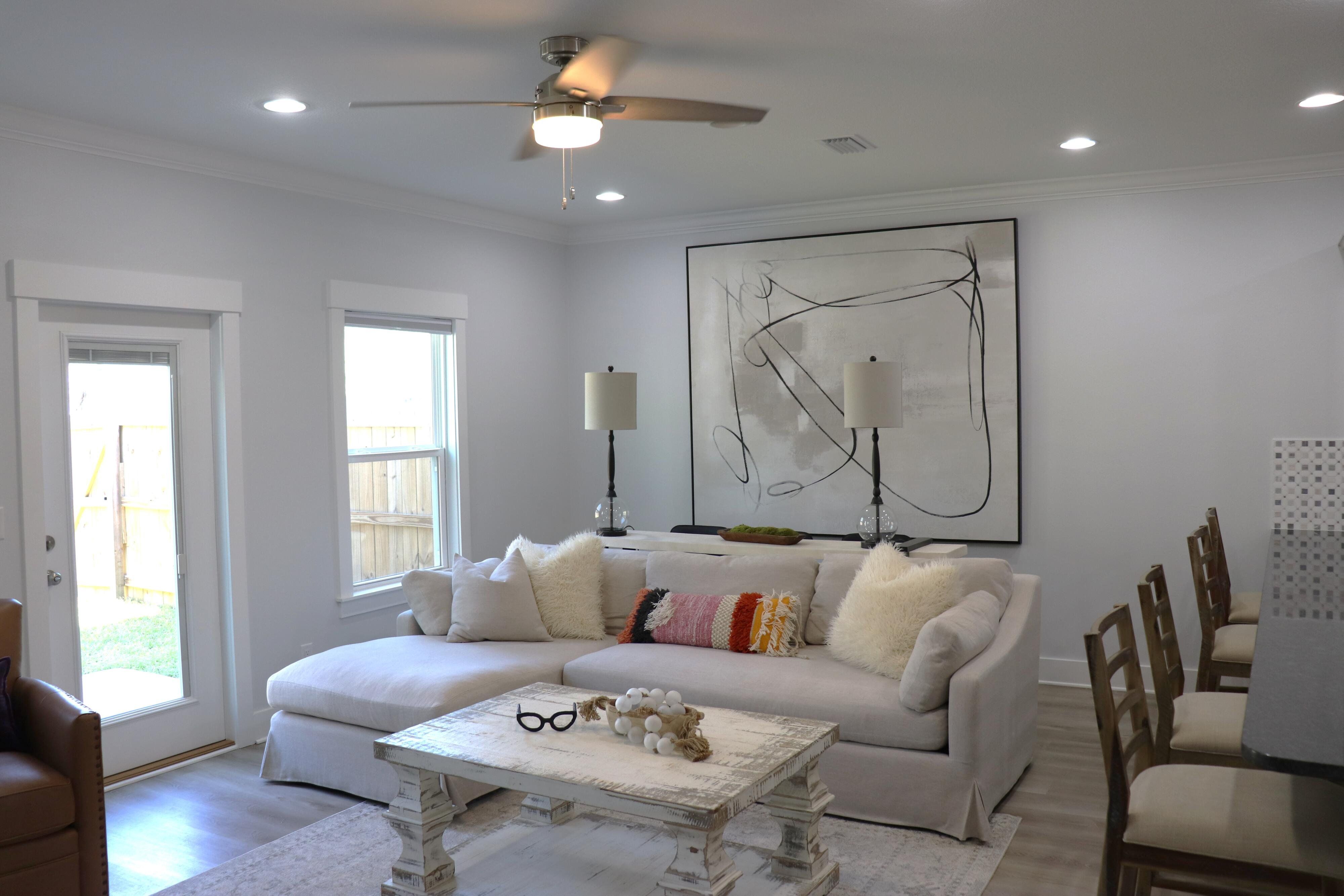 Beautiful end unit in excellent condition. Fully furnished (over 25k in furniture included). Luxury Vinyl Plank in living areas and baths. Carpet on stairs and in bedrooms. Upstairs features all bedrooms, full guest bath, on-suite bath for primary bedroom and laundry room. Downstairs main entryway leads to half bath, kitchen w/breakfast peninsula and upgraded stainless appliances such as side by side refrigerator, self cleaning convection stove with Air Fry, built-in microwave/range hood and dishwasher. Kitchen opens to living and dining area. This unit has the largest backyard in the community with gated privacy fence. Single garage with Epoxy sealed flooring and automatic garage door. Custom blinds for all windows will stay and all appliances including washer and dryer are included.