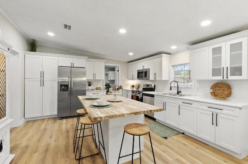 This gorgeous 5 bedroom, 3 full bath home is located an acre! In addition to 5 bedrooms, there is an option to enclose another room to make it a 6th, turn it into an office, playroom, homeschool room, nursery or den. Recently updated kitchen with all new soft close cabinets, new stainless steel appliances and a huge island for entertaining. New hot water heater, roof is 2025 and HVAC is 2024. Updated bathrooms and brand new floors throughout. 20 by 20 garage.