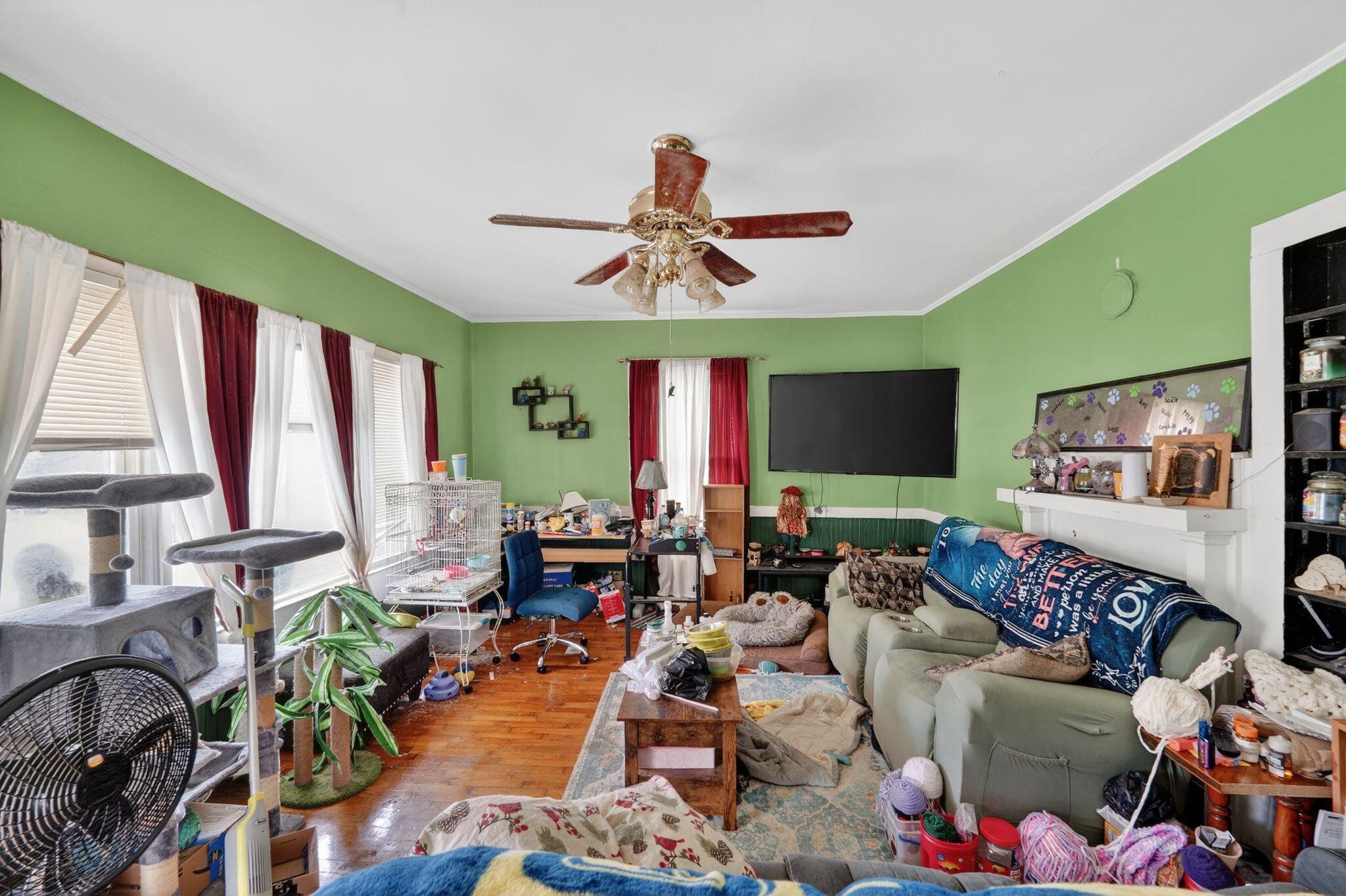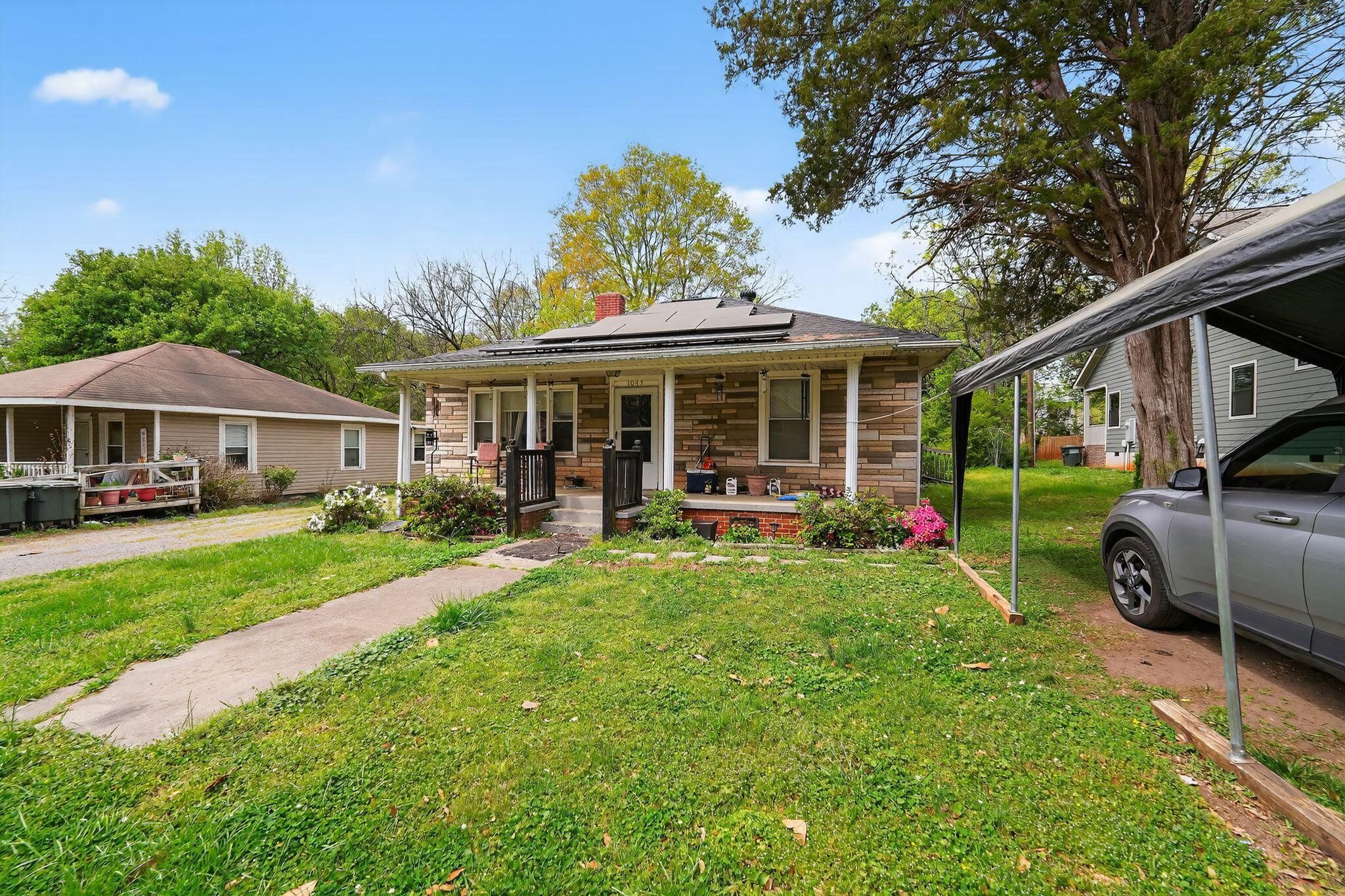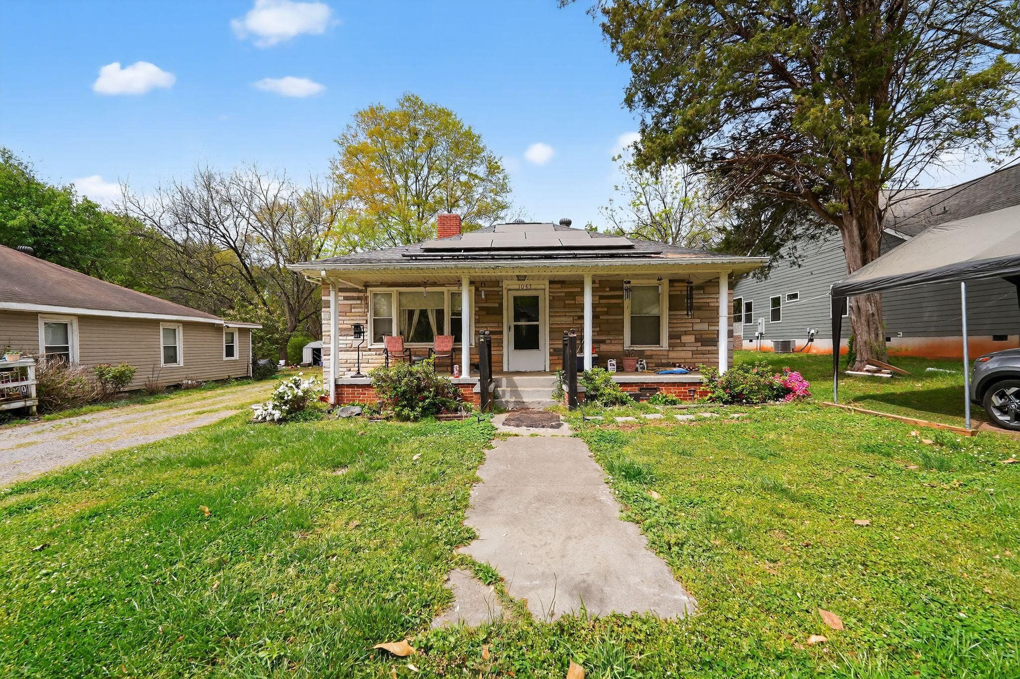Charming 3BR home on an extra-deep double lot in Gastonia. Layout has a generous living room, three bedrooms, bath, laundry area, kitchen, and pantry. Interior is a mix of hardwood, vinyl and carpet. Roof is reported in good condition, HVAC is newer and operates well, and windows have been updated to tilt‑in vinyl. Exterior features a back deck and multiple outbuildings; two sheds are usable. Solar panels are installed. Great option for investors or buyers looking to customize.