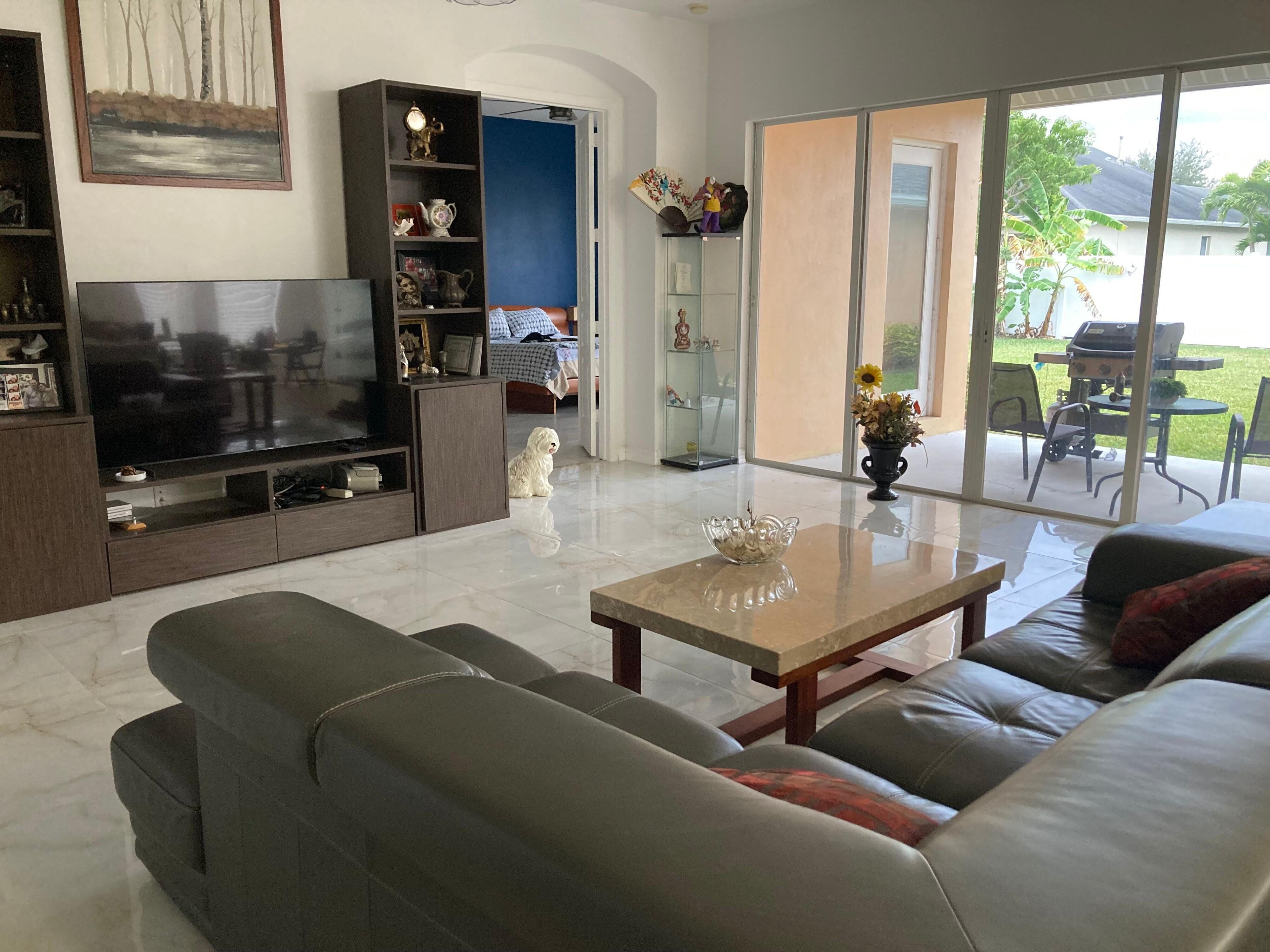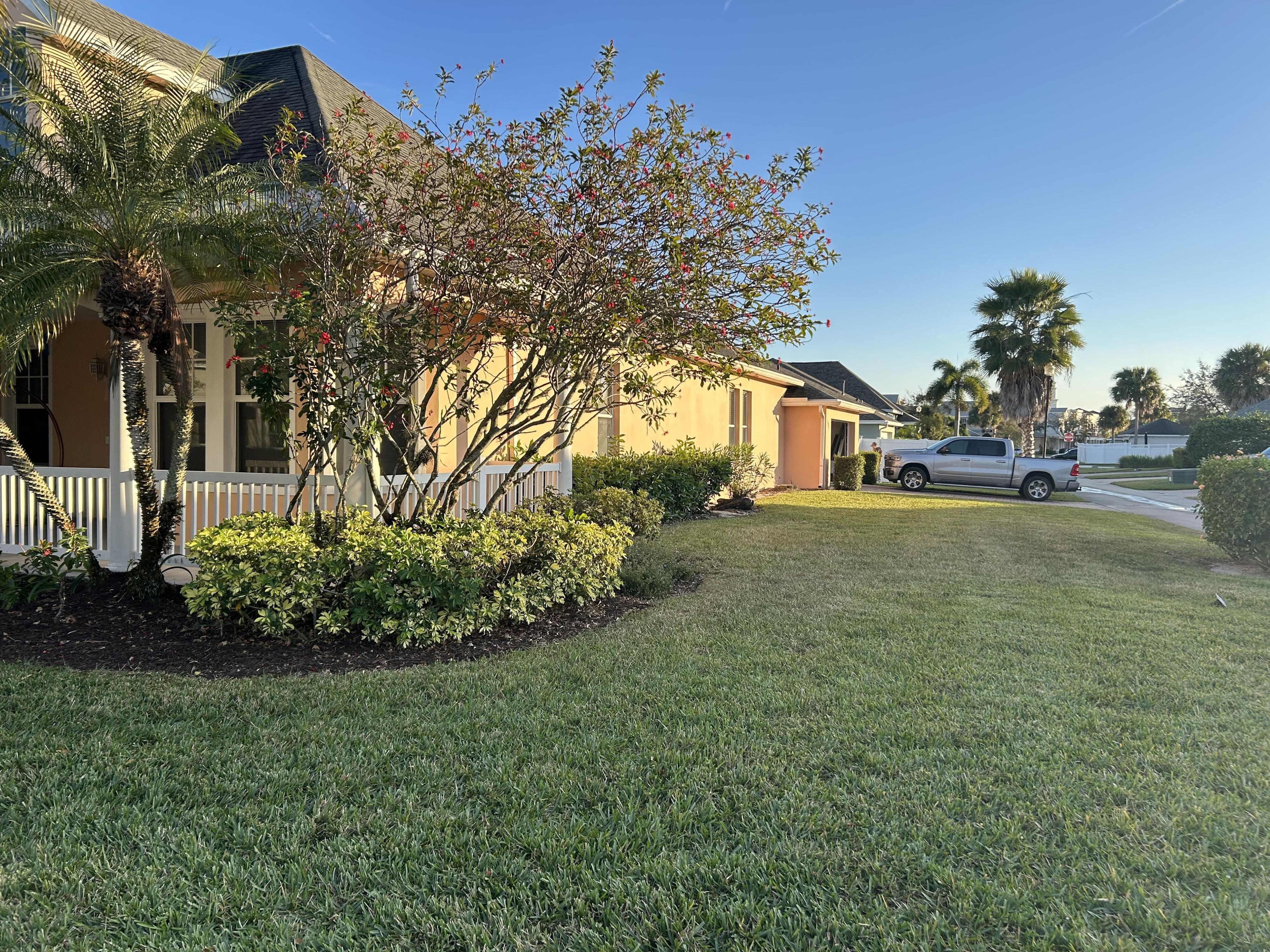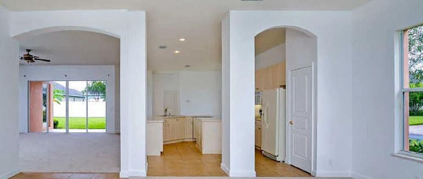 This spacious and well-designed home features a flexible layout with separate living and dining rooms, a large family room, and a private den or office located away from the bedrooms. High ceilings throughout create a bright and open atmosphere. The large kitchen includes a casual breakfast bar and opens to the family room, providing comfortable everyday living space. The primary suite includes his-and-hers walk-in closets. Located on a corner lot, the home provides added privacy, a fenced backyard with room for a pool, and a front porch overlooking community parks. The property is located three blocks from Publix, shopping, banks, Palm Pointe Charter School, and an elementary school, with downtown Tradition, parks, lakes, and community amenities within walking distance.