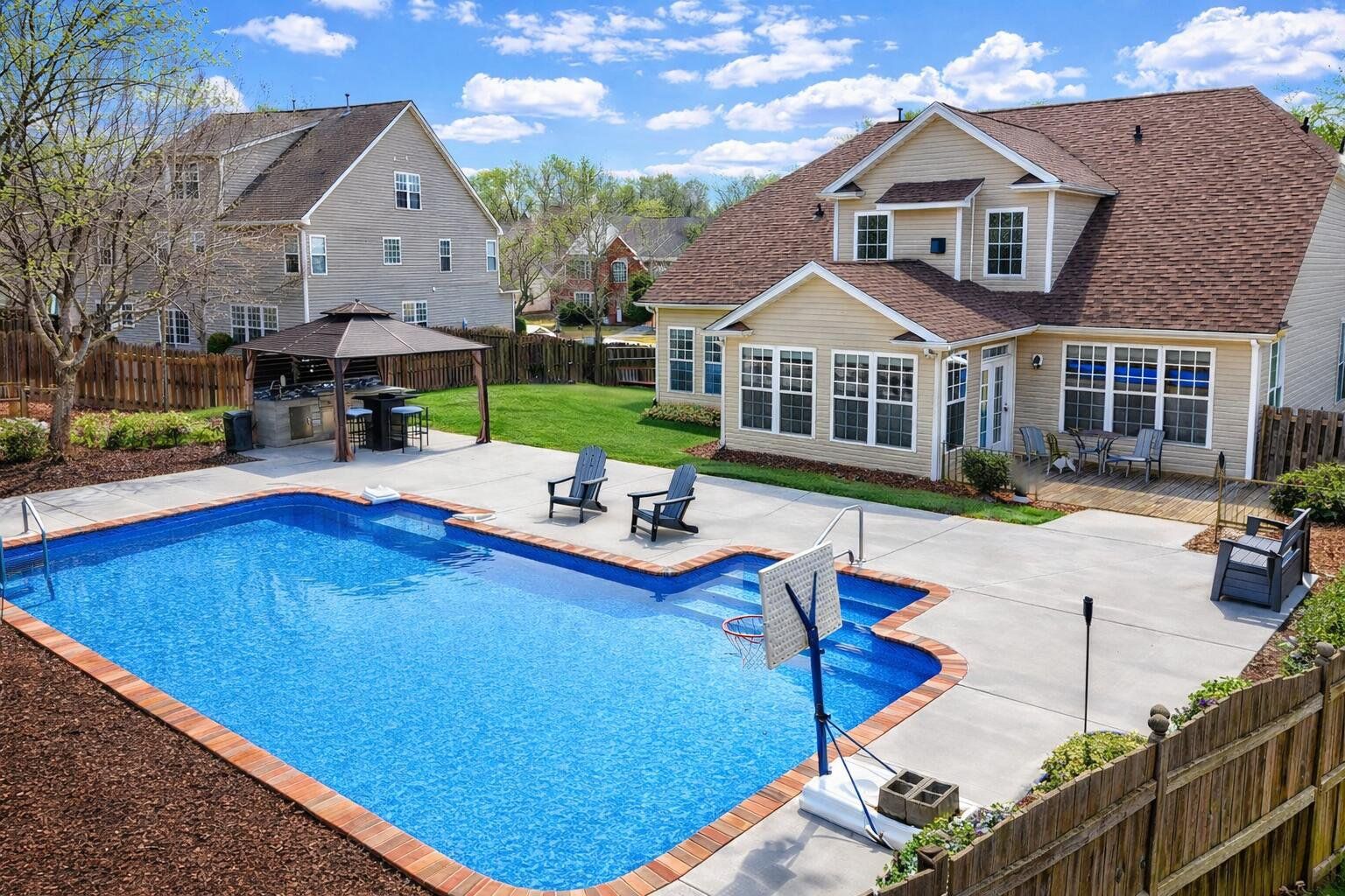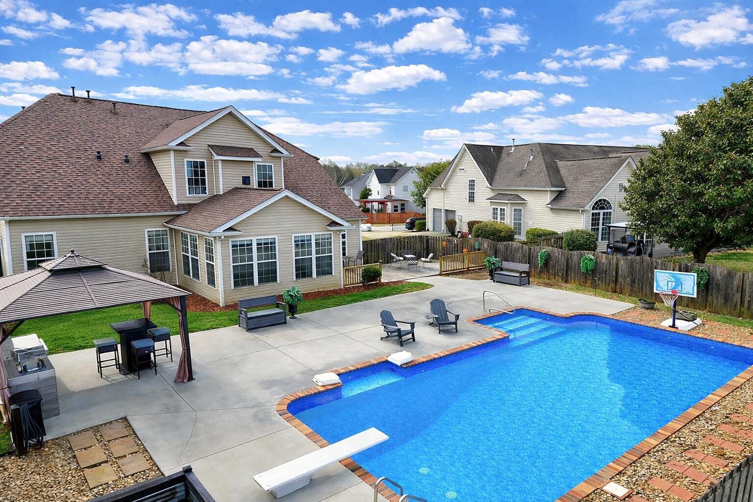 PRIVATE SALTWATER POOL + OUTDOOR KITCHEN + MASSIVE PATIO | THE OAKS AT GILDER CREEK FARMS | NEW ROOF 2025 Welcome to 106 Honey Crisp Way, where indoor-outdoor living, generous space, and a true backyard retreat come together in one of the most desirable settings within THE OAKS AT GILDER CREEK FARMS—known for its mature landscaping, larger lots, and established charm. Ideally located ONE BLOCK FROM THE NEIGHBORHOOD POOL, CLUBHOUSE, AND AMENITIES, this home provides easy access while still maintaining privacy and a peaceful setting. The standout feature is the exceptional outdoor living space—an in-ground PRIVATE SALTWATER POOL professionally installed by Aqua Blue Pools, featuring lighting, jets, and swim-out, paired with a fully equipped OUTDOOR KITCHEN with built-in grill, sink, refrigerator, and TV-ready setup. A MASSIVE PATIO extends the living space, creating the perfect setting for entertaining, family gatherings, or relaxing evenings at home. This is a true indoor-outdoor lifestyle rarely found at this price point. Inside, soaring ceilings and a dramatic staircase create an immediate sense of space and light. The open layout is designed for connection, anchored by a spacious kitchen with double ovens, abundant prep space, and seamless flow into the main living areas and sunroom. A bright sunroom extends the living space, well suited for morning coffee, quiet afternoons, or evening wind-downs. The home features 4 BEDROOMS AND 3.5 BATHS, including a MAIN-LEVEL PRIMARY SUITE and a PRIVATE UPSTAIRS SUITE, well suited for guests or multi-generational living. A dedicated office plus a large flex room provides versatility for remote work, a potential 5TH BEDROOM, gym, or media space. Major updates already completed, including a BRAND-NEW ARCHITECTURAL ROOF (SEPTEMBER 2025), UPDATED HVAC SYSTEMS, AQUA SCRATCH-RESISTANT FLOORING, MARBLE TILE BATHROOM UPGRADES, and UPDATED LIGHTING AND FIXTURES, creating peace of mind with the opportunity to personalize over time. Located in the highly sought-after FIVE FORKS AREA, you’re just minutes from shopping, dining, and daily conveniences along Woodruff Road, with easy access to I-385 and a short drive to downtown Greenville. Buyers Agents Welcomed! HOMES FEATURING THIS LEVEL OF OUTDOOR LIVING, FUNCTIONAL SPACE, AND LONG-TERM VALUE—WITHIN THE OAKS—RARELY BECOME AVAILABLE