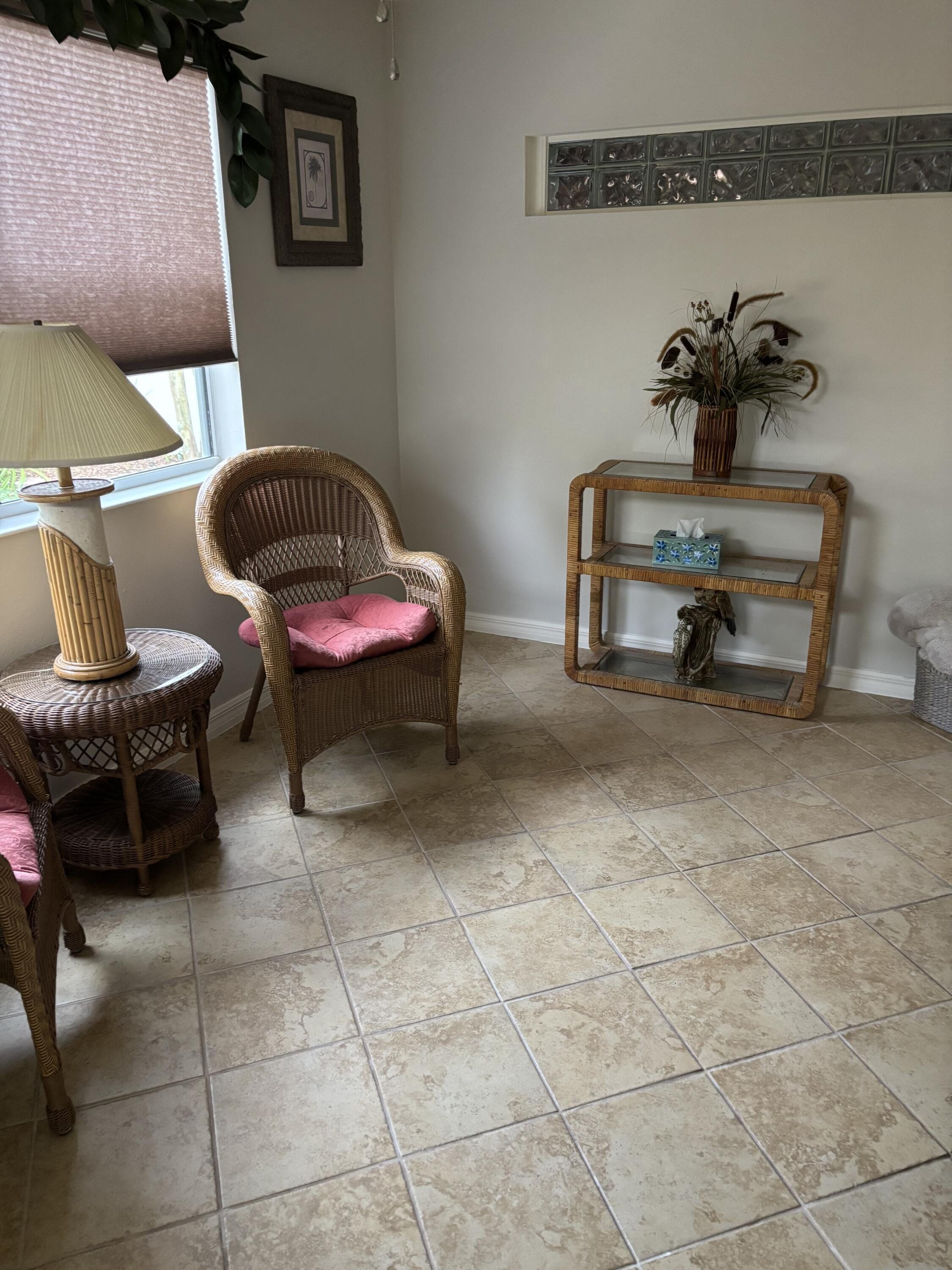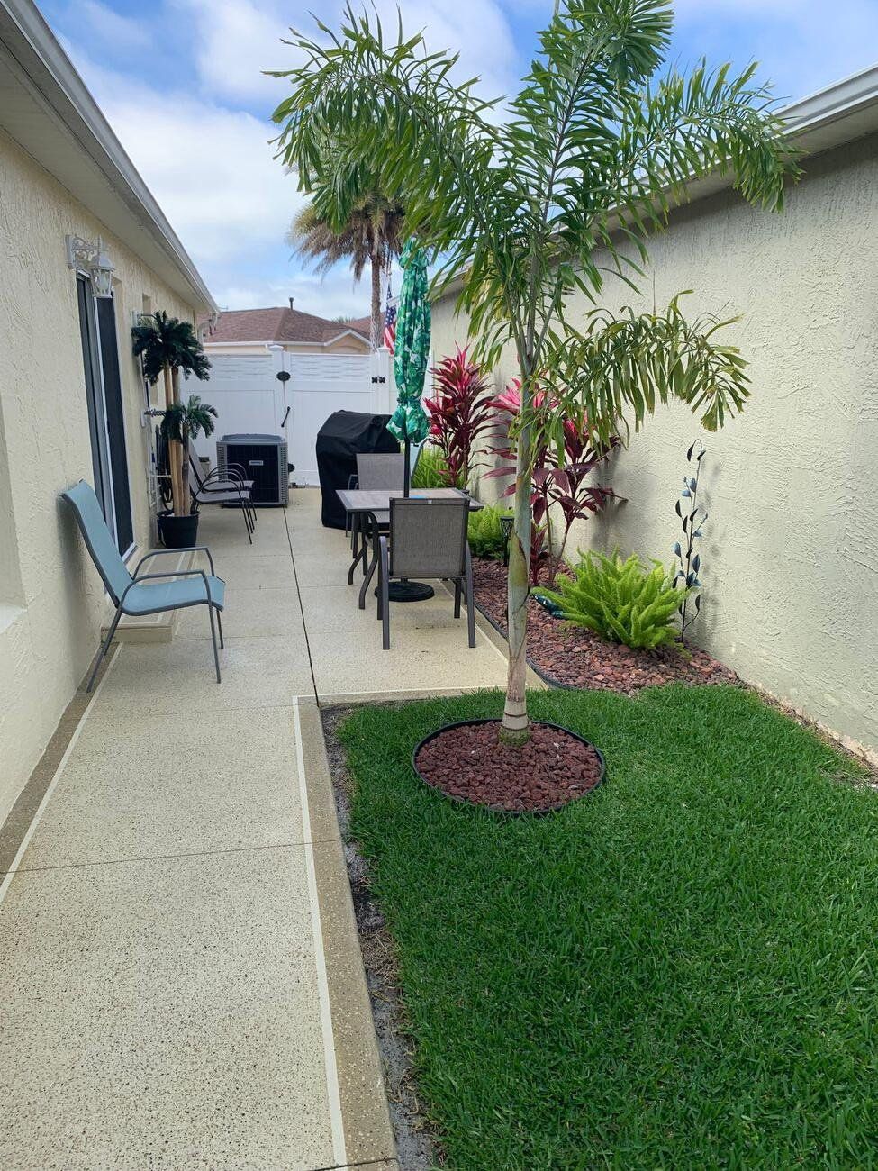 Village of Bonita, Bonita Villas (Beauregard model ). This turnkey home is in a desirable area and features an extra room(enclosed lanai)off the living room serviced by air/heat and separated by pocket doors and boasts a separate door which opens into the back private courtyard-style backyard—great for pets, gardening, or simply enjoying the Florida sunshine. Nicely landscaped yard. The open floor plan includes a spacious living/dining area. The kitchen has alabaster cabinets, granite and stainless appliances. The entire house is tiled except for bedrooms. The master has a walk-in closet, dual sinks in granite counter tops. Split bedrooms with both master and 2nd bedroom having an en-suite bathroom. Turnkey is nicely furnished. Great investment income and consistently rented 8 months out of the year as a STR; Current contracts for 2026 include Jan thru May and September thru Oct. Excellent rental income. Situated between Sumter Landing and Brownwood paddock squares, filled with shopping, dining, nightly live entertainment, and waterfront views. You're also just a short walk to the Bacall Recreation Center, where you can enjoy swimming, pickleball and tennis, fitness classes, and more. Located within a golf course community, this home gives you easy access to championship and executive golf courses, as well as beautiful walking trails and community pools. Don’t miss this opportunity to live in one of the most desirable neighborhoods in The Villages! HVAC May 2023, Roof May 2022, Painted sidewalks in back, New Epoxy garage, Nicely landscaped back yard with painted wall, TDBU shades on windows with matching shade on sliding door, Remote controlled fan in living room, All Contents including 2 new Samsung TV’s, high end master bedroom set, glass topped high end dining table and all linens, living room furniture, patio furniture, grill, dishes, etc., 3 solar tubes (both baths and kitchen). Tankless water heater Water softener