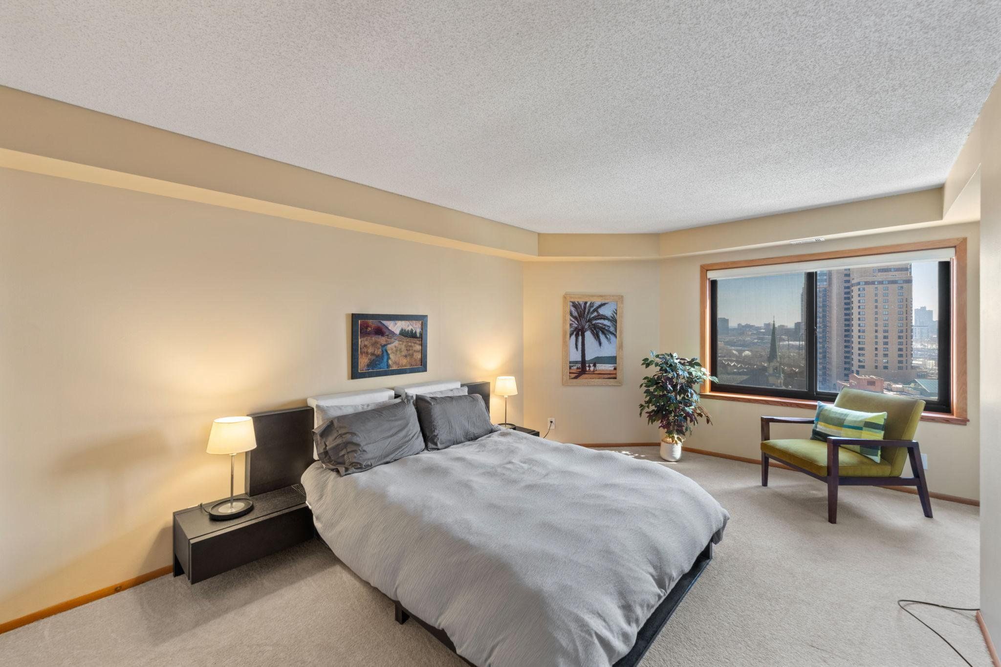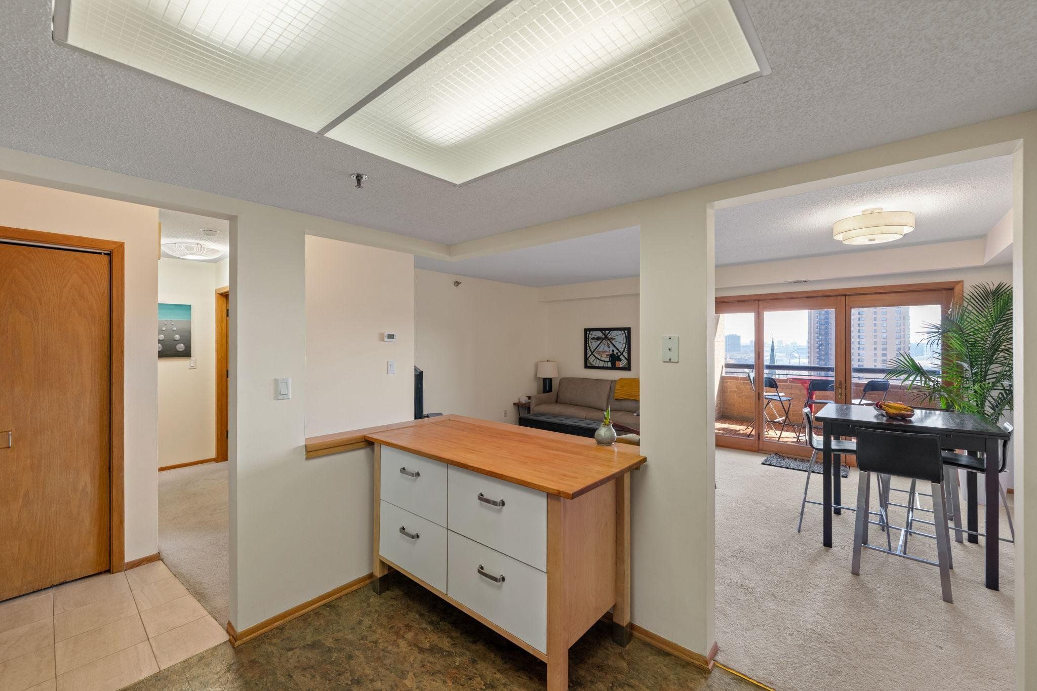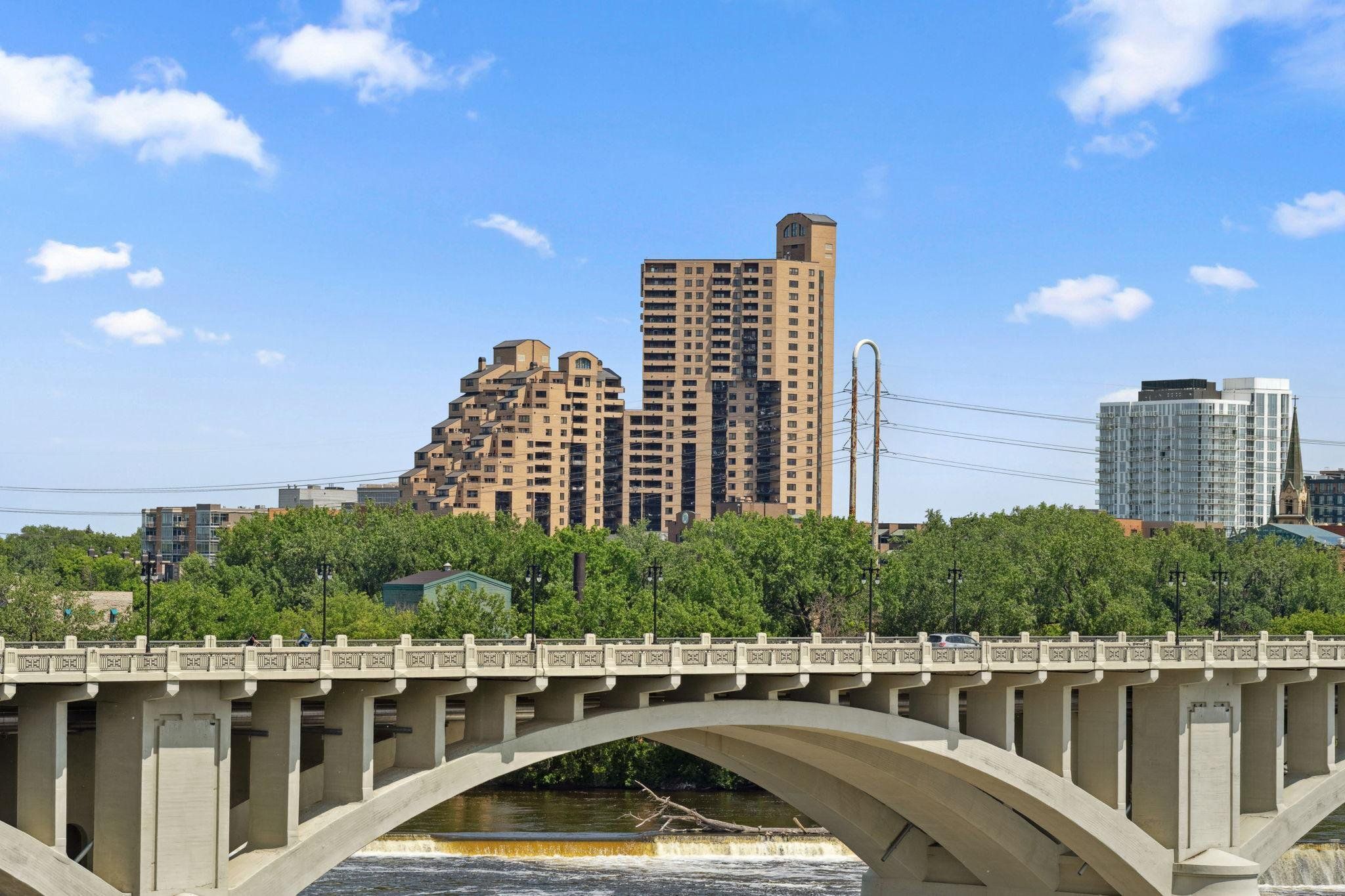 Welcome to your home above the treetops at one of Minneapolis's most coveted addresses. Perched on the 15th floor, wake up to southeastern morning sunlight and unwind each evening with breathtaking views of the Minneapolis skyline and Mississippi River from your private balcony. This spacious one-bedroom offers flexible living with a spacious living area that can accommodate a dining area or home office. The spacious kitchen also offers space for a dining table or adding addition countertop space. A generous walk-in closet with built-in storage doubles offers plenty of storage, and in-unit laundry means no sharing with neighbors, a rare offering in this building! Large windows and a patio door fill the home with natural light and frame stunning views of the emerging Northeast skyline. Falls & Pinnacle is one of the few condos in Minneapolis that truly has it all. The newly remodeled (2025) amenity package includes a 24/7 gym, yoga studio, indoor pool, hot tub, sauna, steam room, movie theater, library, business center, and three enormous garden terraces with grills and fire pits. Your monthly HOA dues cover heat, AC, water, sewer, trash, and high-speed internet you pay only electric. One deeded indoor parking space and a free self-service car wash bay are included, in a secure, pet-friendly building with a front desk attendant. The location is simply unmatched. Step outside onto the cobblestone streets of St. Anthony Main, stroll along the Mississippi River and Nicollet Island, or explore the shops and restaurants nearby. Everything is within a five-minute walk: Lunds, Surdyks, Nyes, Kramarczuks, Brasa, Punch Pizza, Chipotle, Gorkha Palace, Flamin' Thai, Curry Corner, Aster Café, FRGMNT Coffee, Fletcher's Ice Cream, St. Anthony Cinema, Aveda, and so much more. This is Northeast Minneapolis living at its absolute finest!
