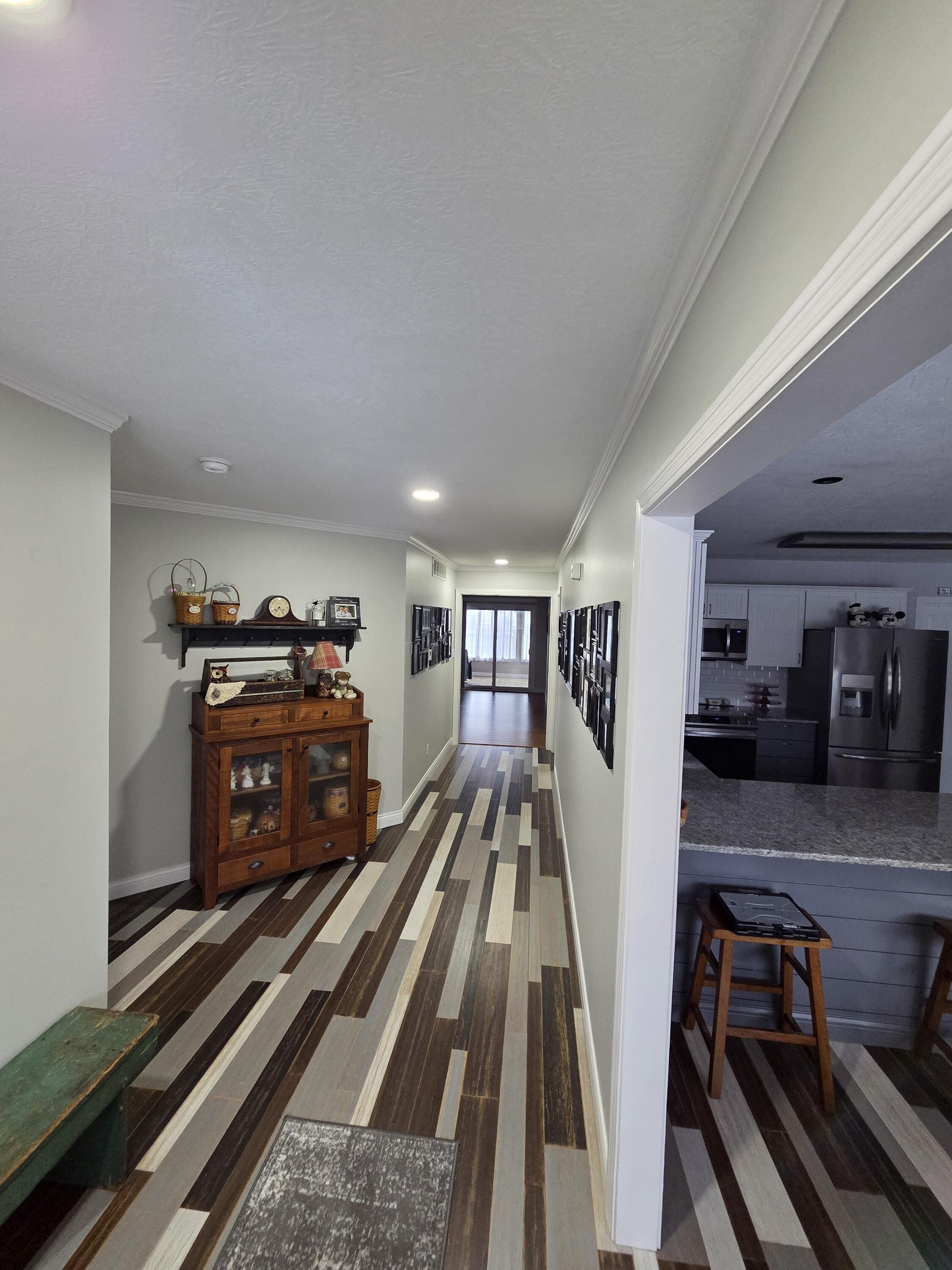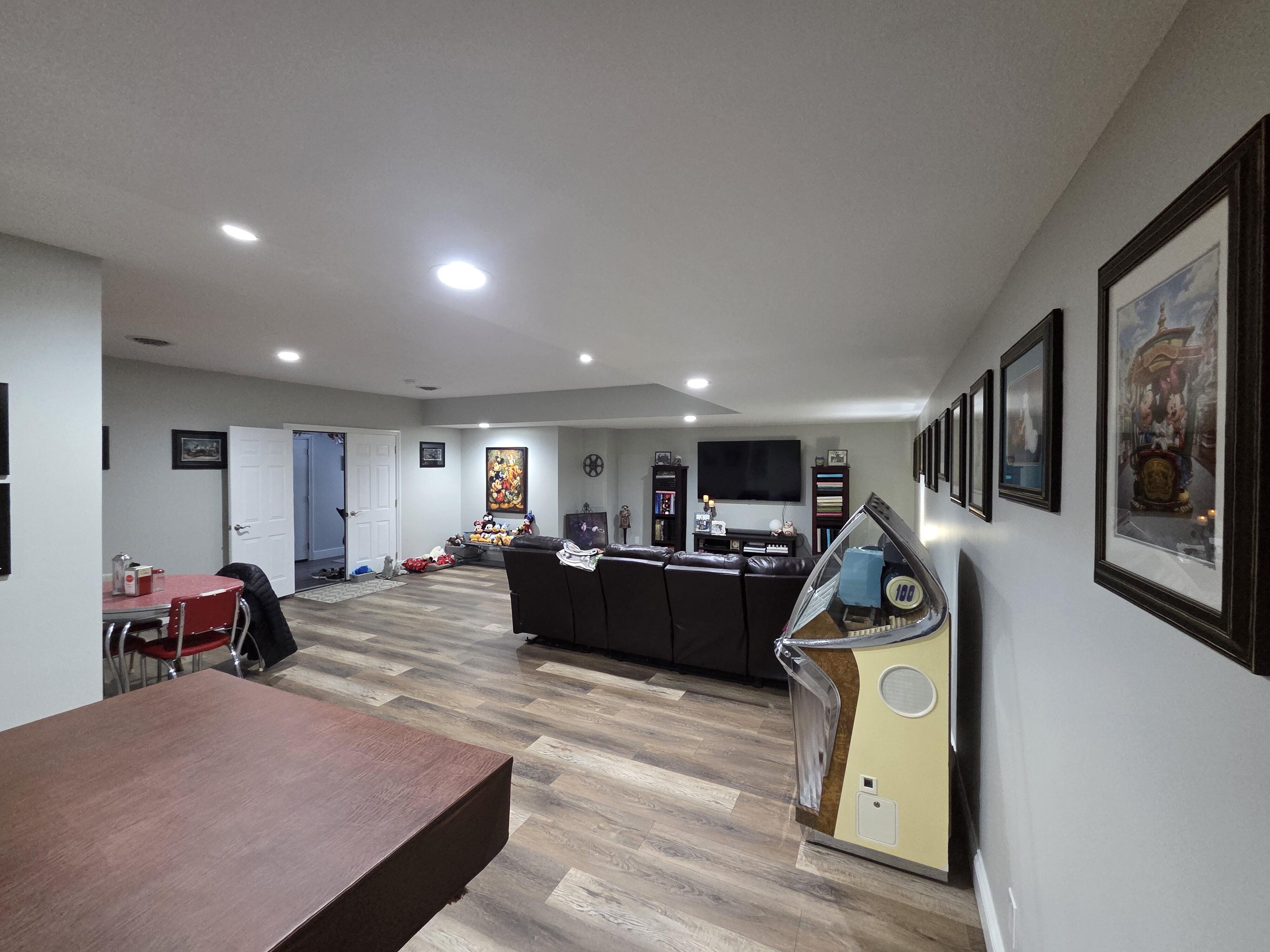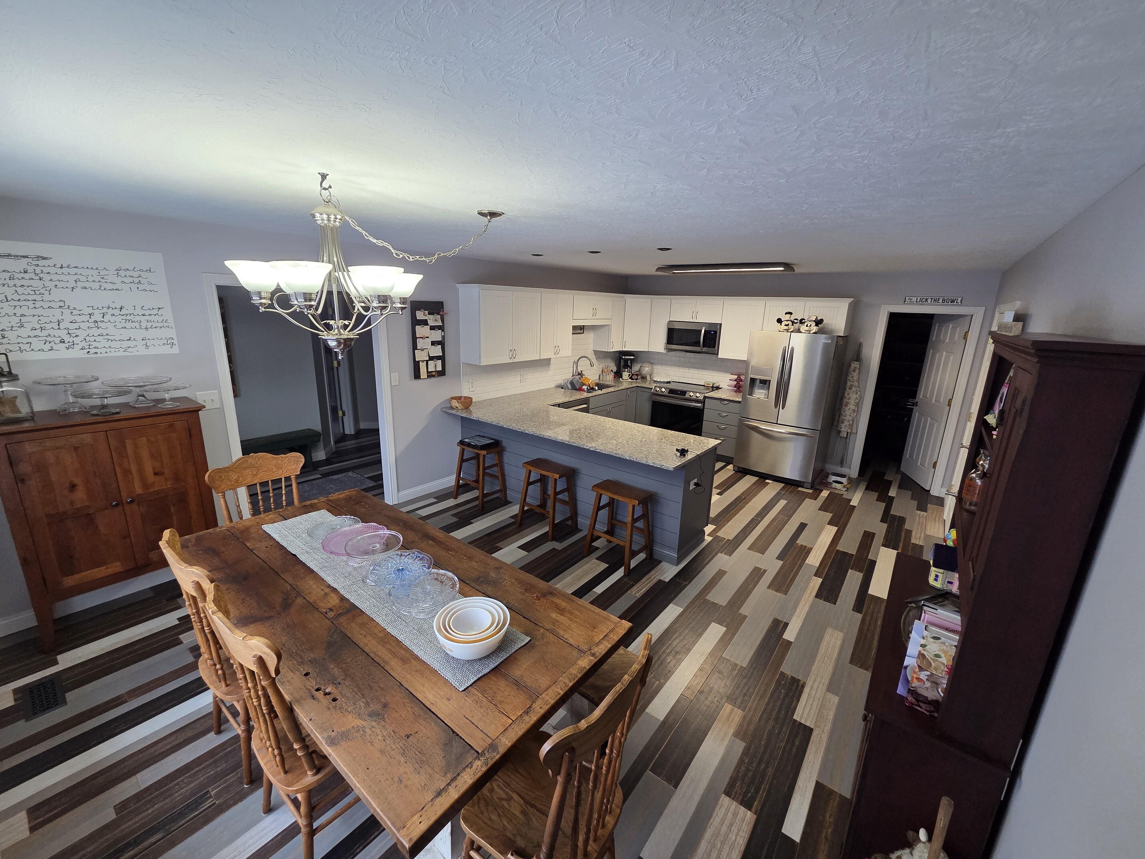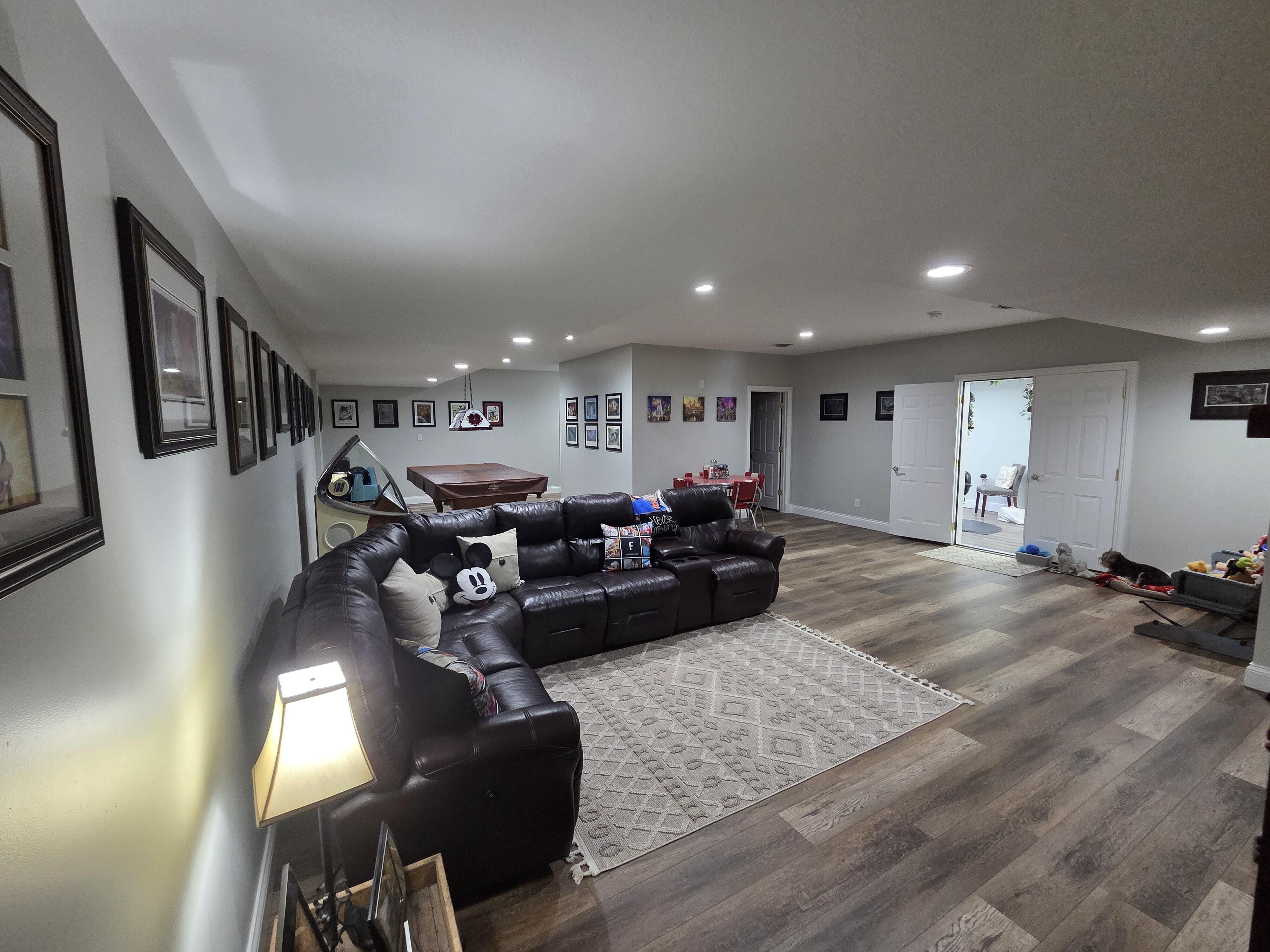 Beautiful, move-in ready brick ranch offering over 3,800 finished square feet in a quiet New Castle neighborhood near Barker Park and schools. The main level features 2,434 sq ft with 5 bedrooms and 3 full baths, complemented by an additional 1,384 sq ft finished basement complete with a full bath and walk-in shower. The home showcases new bamboo flooring throughout the main level (last 4 years) and new LVP flooring and fresh paint in the basement (May 2024). The spacious primary suite includes a remodeled bath (Aug 2021) with a custom walk-in shower featuring dual shower heads and a huge walk-in closet. The kitchen has been updated with granite countertops, under-mount sink, freshly painted cabinets (Oct 2020), and appliances replaced within the last five years. Enjoy a 400 sq ft living room with gas fireplace, eat-in kitchen with breakfast nook, large pantry, and a bright sunroom. Major updates include a new roof and 6” gutters (Sept 2019) and a Navien tankless gas water heater (Jan 2024). Outdoor living shines with a custom paver patio (Aug 2023) and fenced backyard. Additional highlights include a 4-car heated garage (1,046 sq ft), updated lighting and fans, abundant closet space, large attic storage, updated utility room with cabinets, mechanical room, and more. 8-ft slate pool table, washer, and dryer included. A must-see home offering space, updates, and exceptional storage. Seller is offering a one-year home warranty at close.