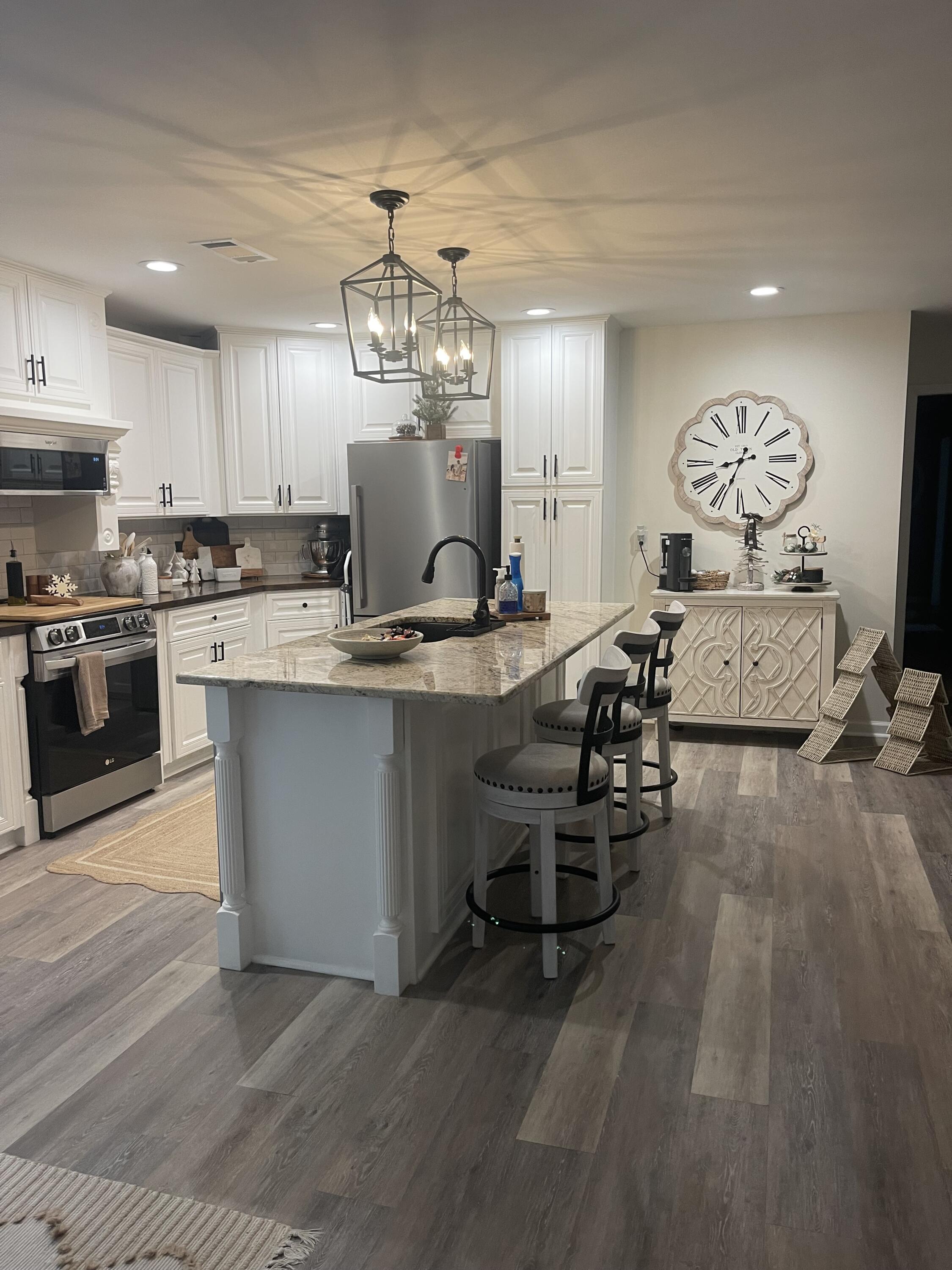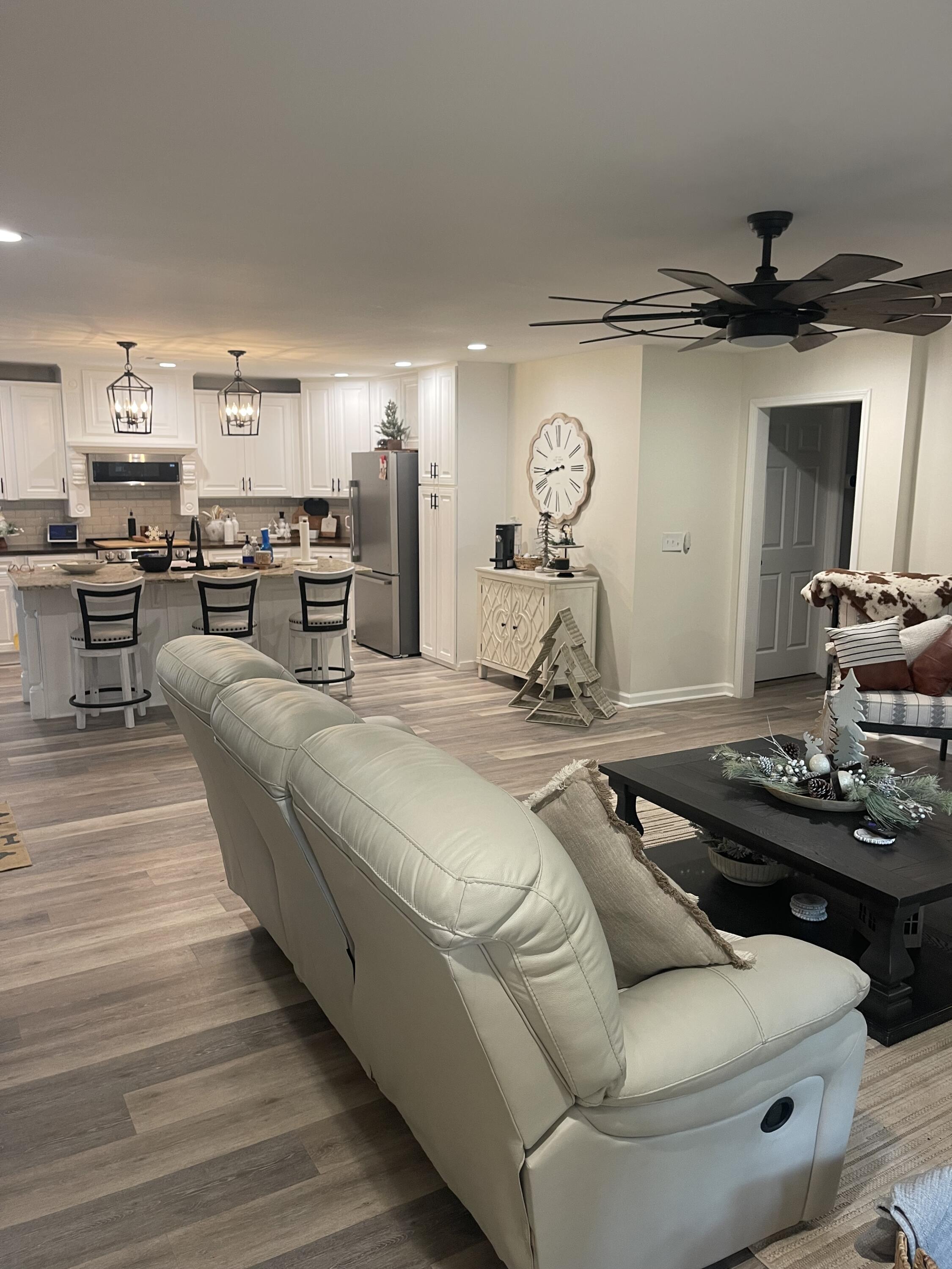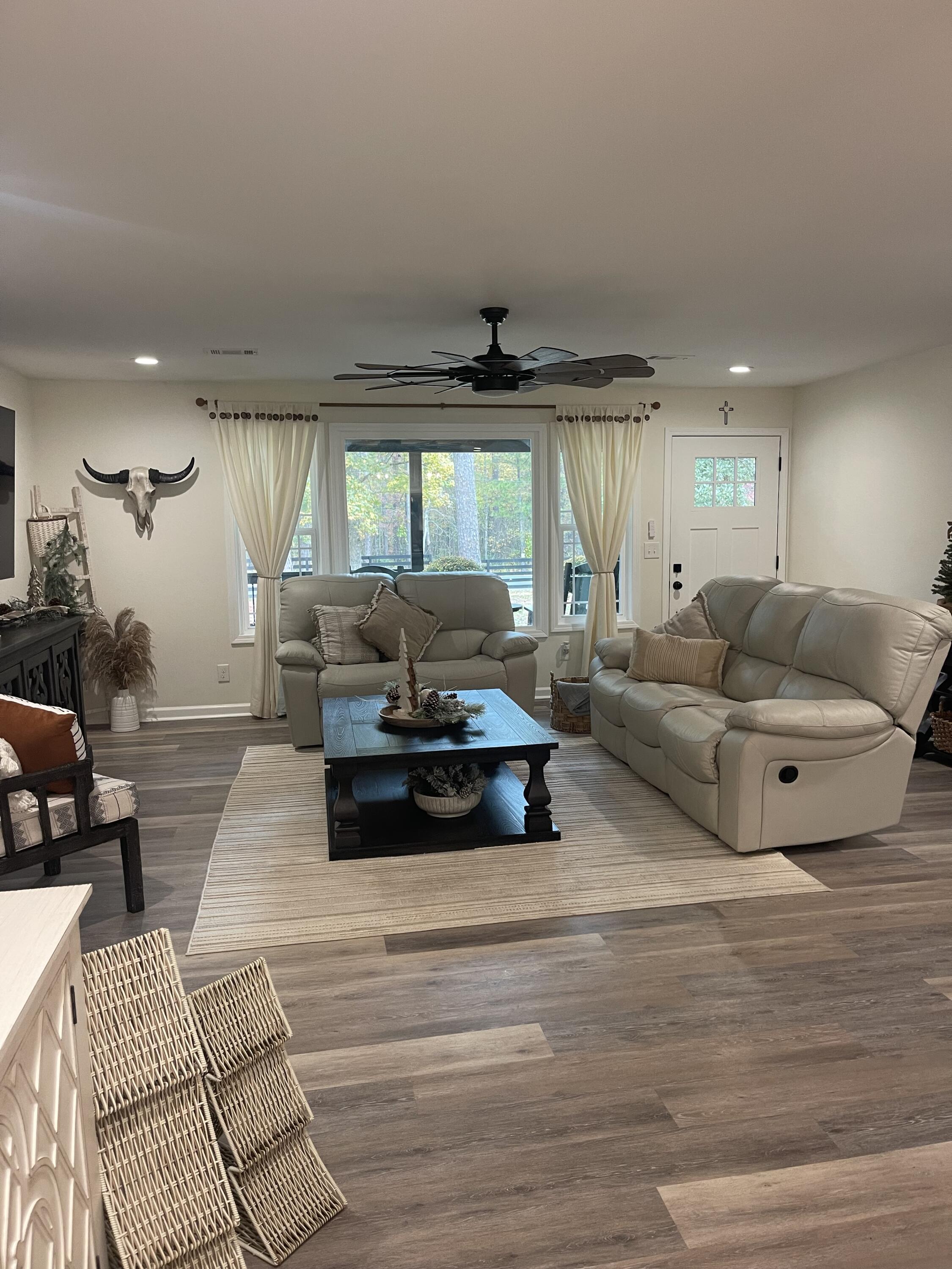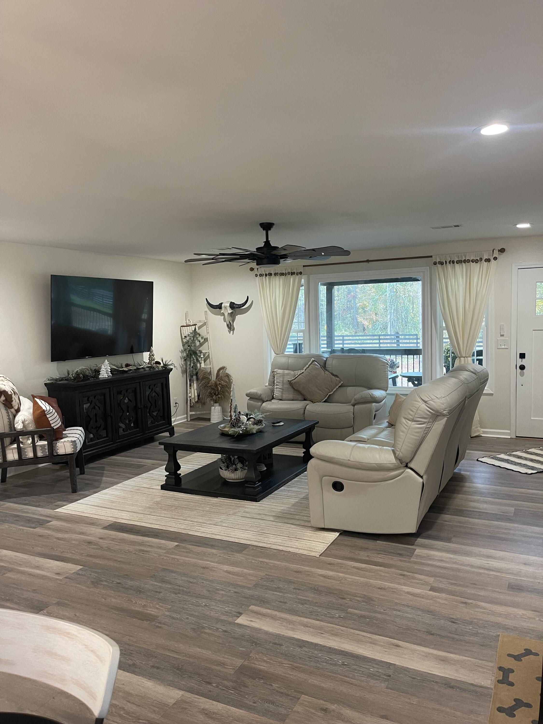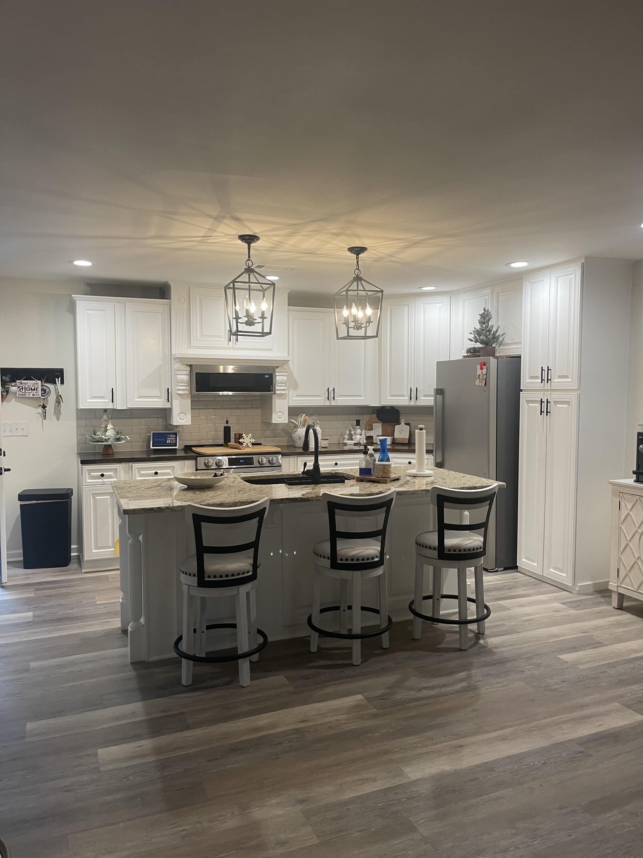 Modern Farmhouse on 1.5 Acres with Saltwater Pool Fully renovated 4-bedroom, 2-bath modern farmhouse on 1.5 private acres. This home features an open floor plan with granite and butcher block countertops, updated lighting, and designer finishes throughout. The kitchen connects to the dining and family areas, creating a welcoming central space. The primary suite includes a free-standing soaking tub and custom-tiled shower with a spa-like feel. Enjoy outdoor living with a brand-new saltwater inground pool and plenty of space for outdoor activities. This move-in-ready home blends farmhouse charm with modern upgrades, providing comfort, style, and functionality in every room.