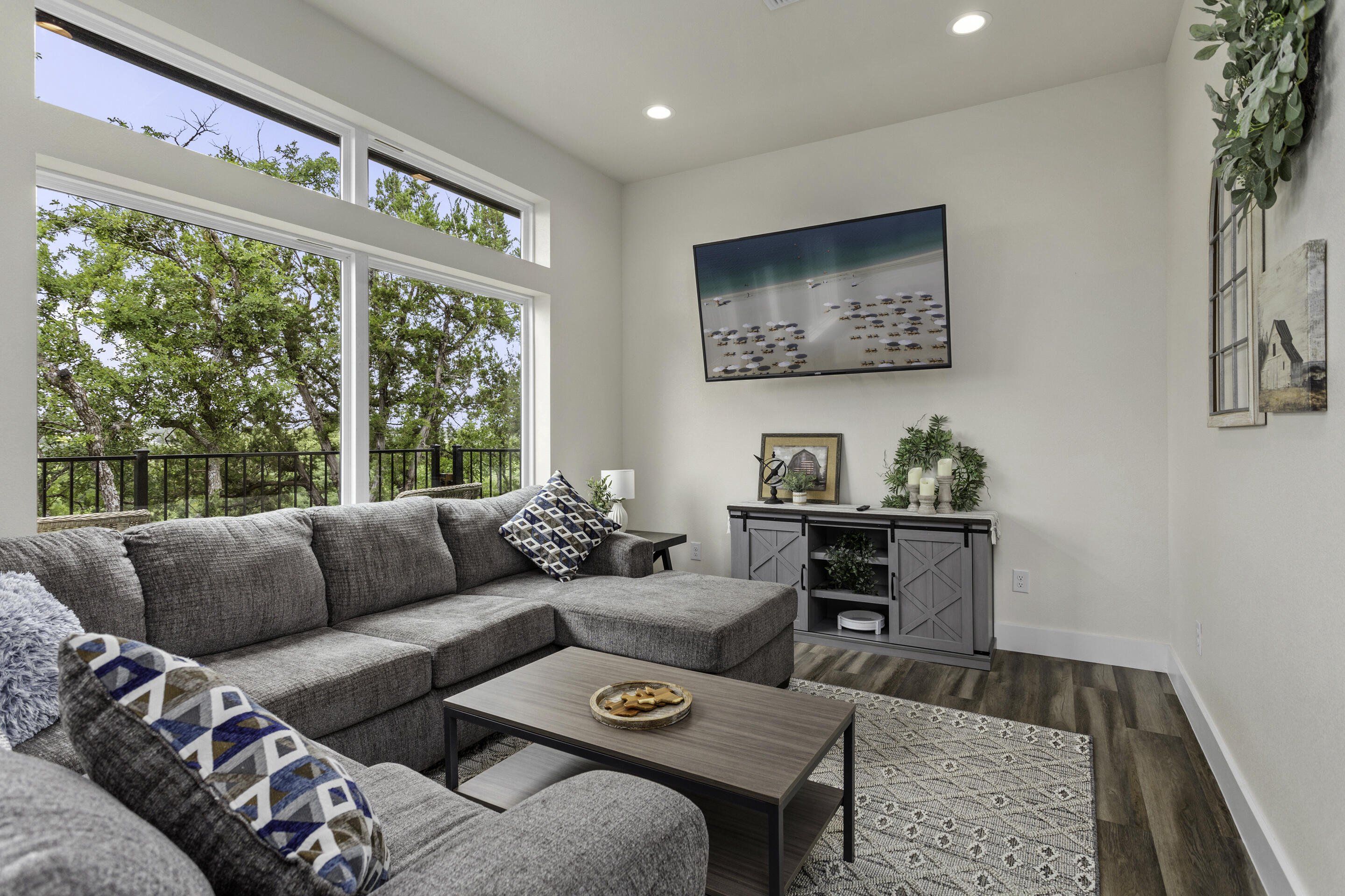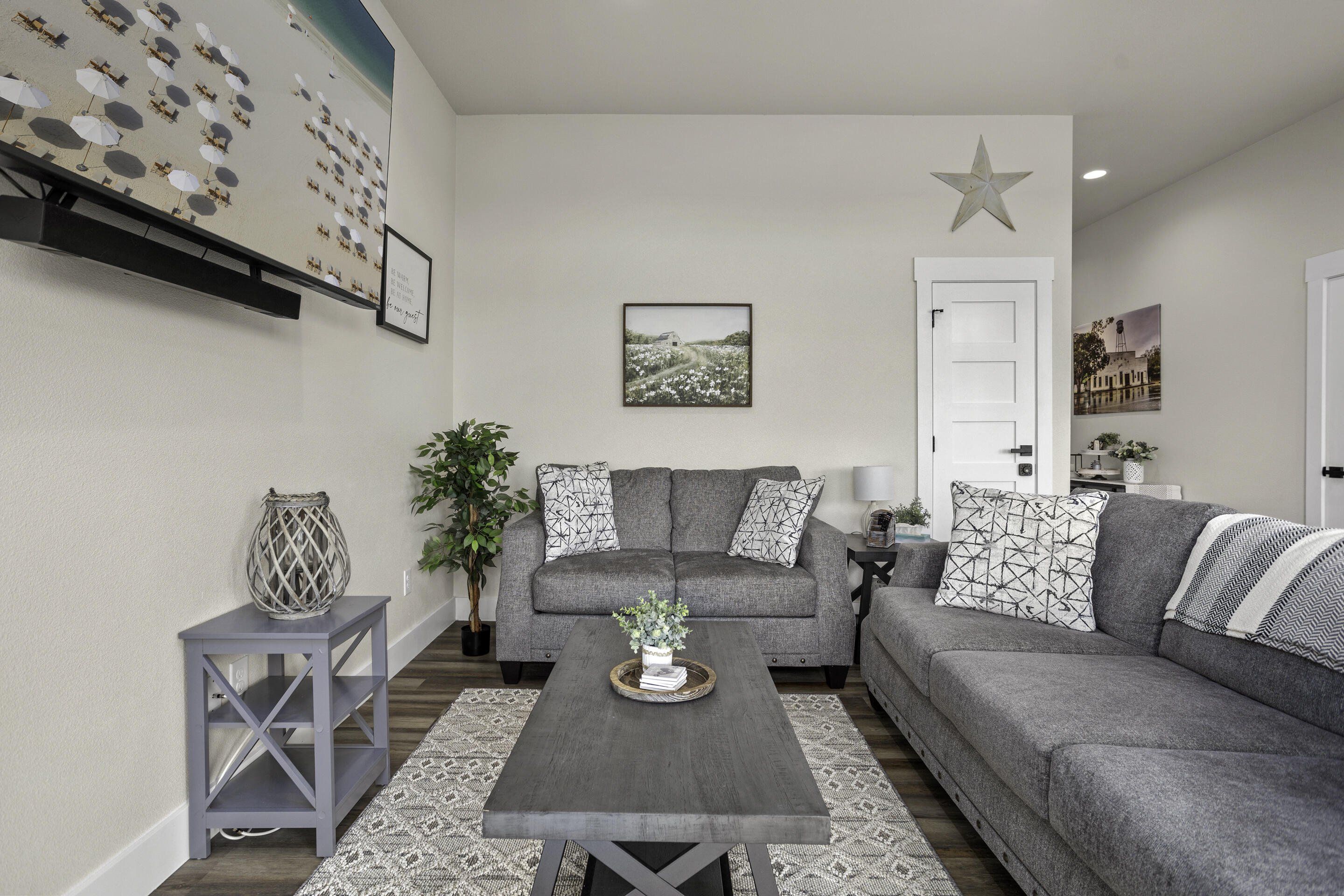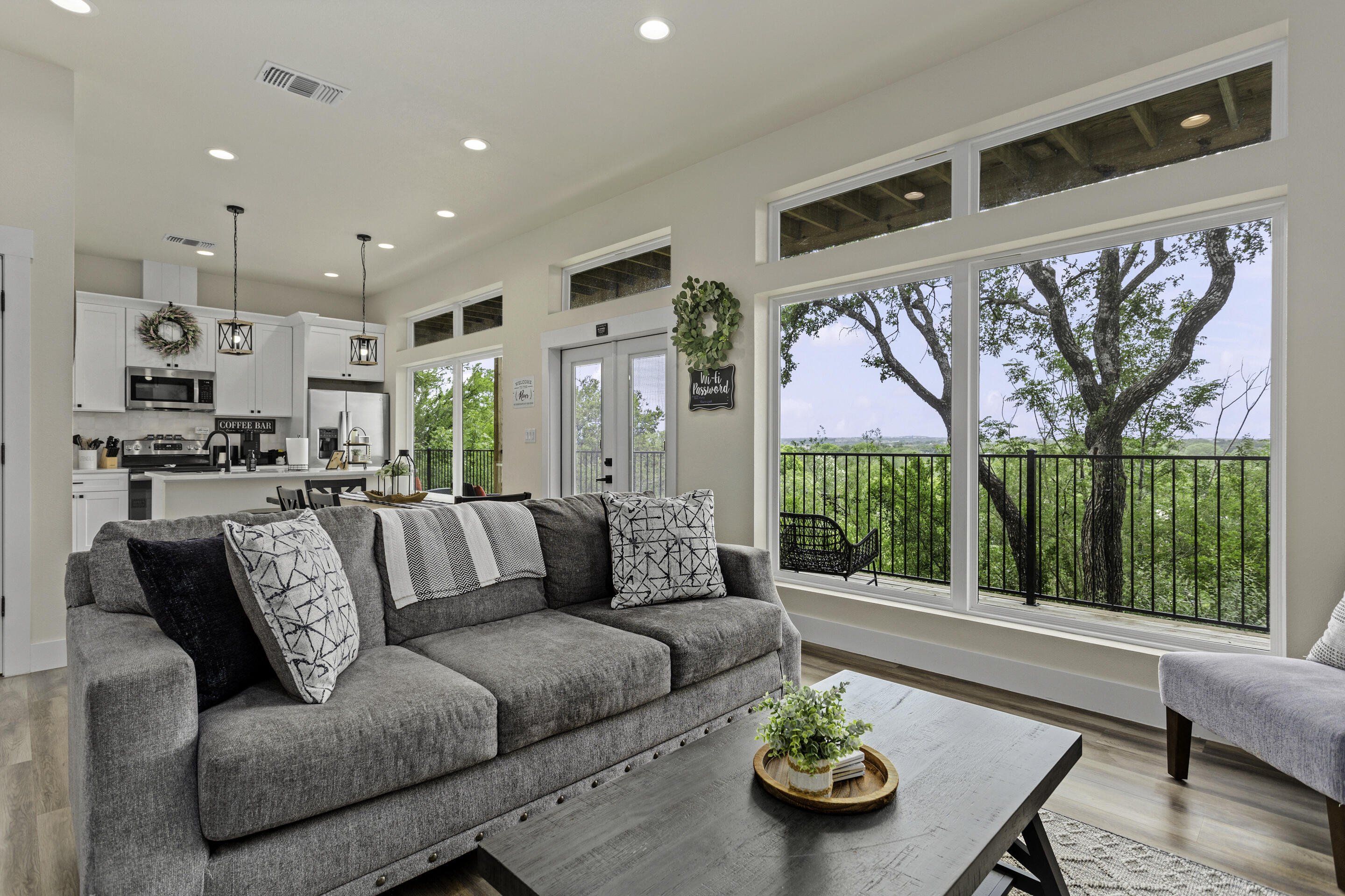 Charming new-build townhome in the heart of historic Gruene! This spacious 3-bed, 3-bath home features an open-concept layout filled with natural light, a modern kitchen with ample storage, and scenic river views. Ideally located just steps from the iconic Gruene Hall—the oldest dancehall in Texas—plus premier dining and local shops. Zoned for ST rentals, both units are active STRs, but also perfect as a full-time residence. Or, purchase both townhomes—live in one and let the other do the work. Comfort, charm, and investment potential in one unbeatable location!