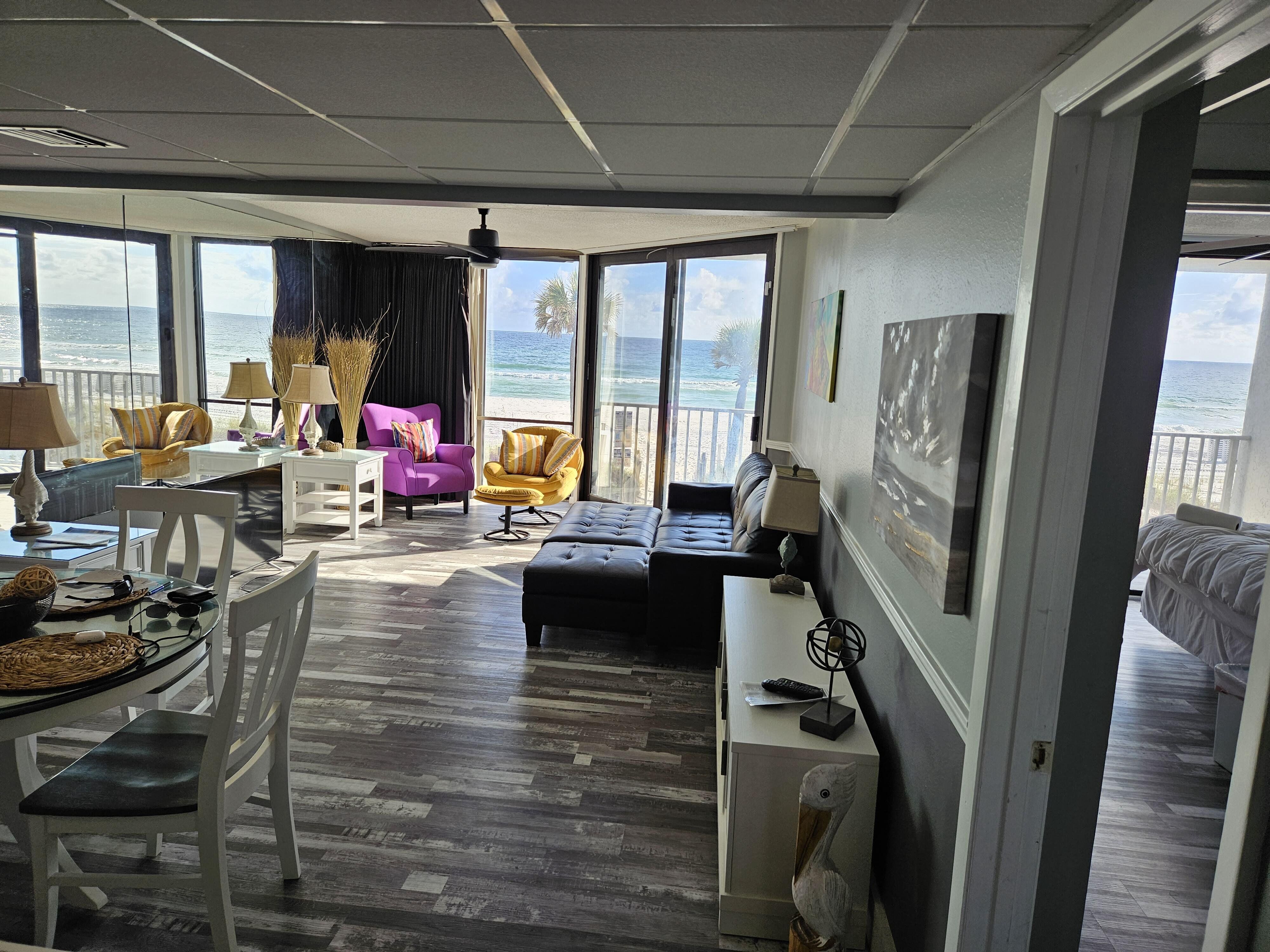 Welcome to a stunning condominium at 11757 Front Beach Rd, Unit L104, in beautiful Panama City Beach. This spacious unit has an open floor plan with modern finishes and ample natural light. Enjoy breathtaking views from the private balcony. The complex features fantastic amenities including a sparkling pool and direct beach access. superbly positioned to enjoy local dining, shopping, and entertainment options. Don't miss the opportunity to experience beachfront living at its finest. You can hear and see the ocean waves from Master Bedroom. On 1st Floor you walk down 1 flight of stairs and your feet are in the sand. No need for elevator. 120 steps to Ocean, yes I counted steps!! Sleeps 5 with the new bunkbed. New AC unit in Fall of 2025.