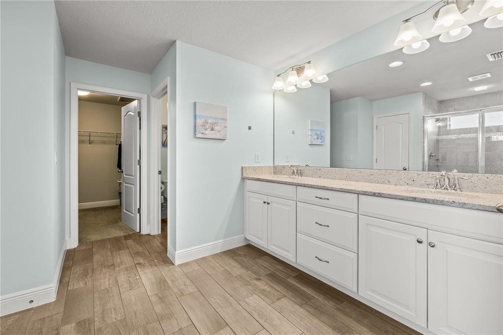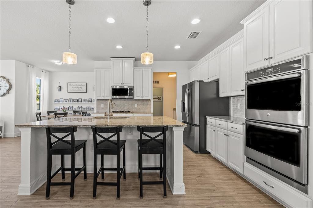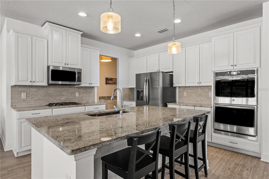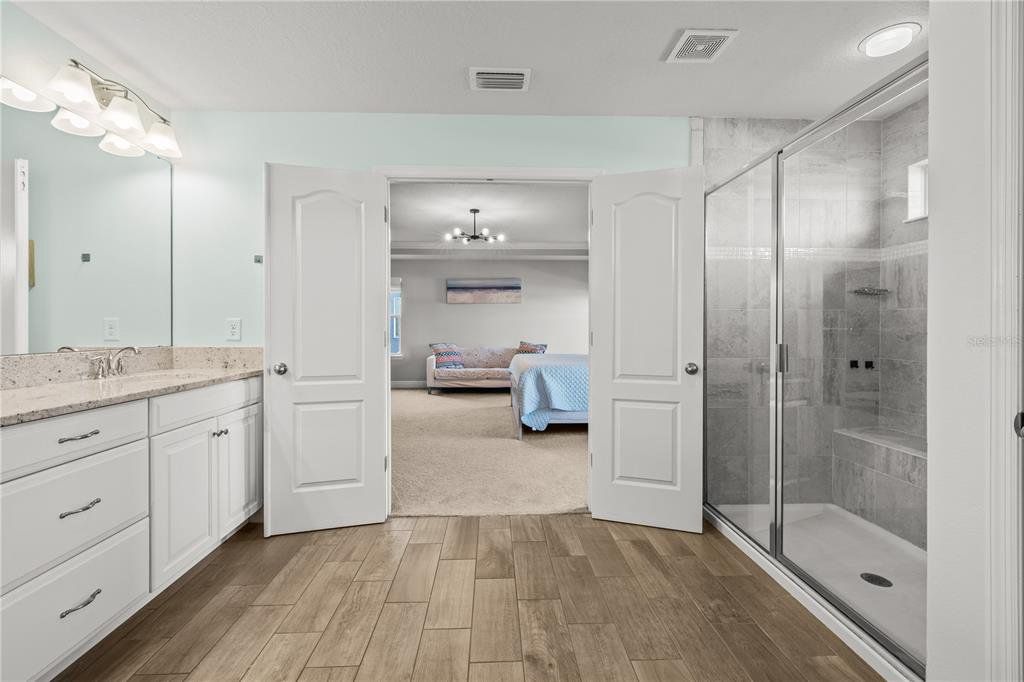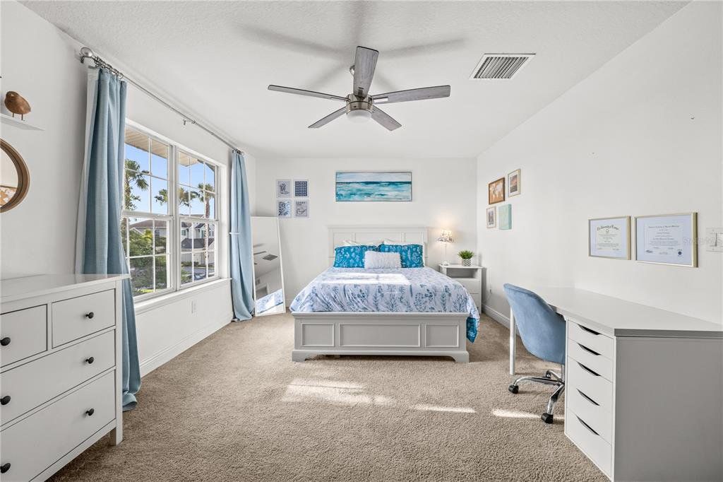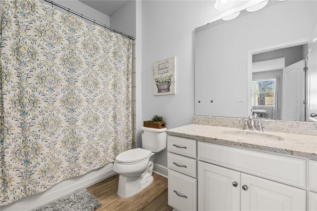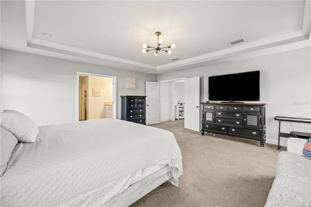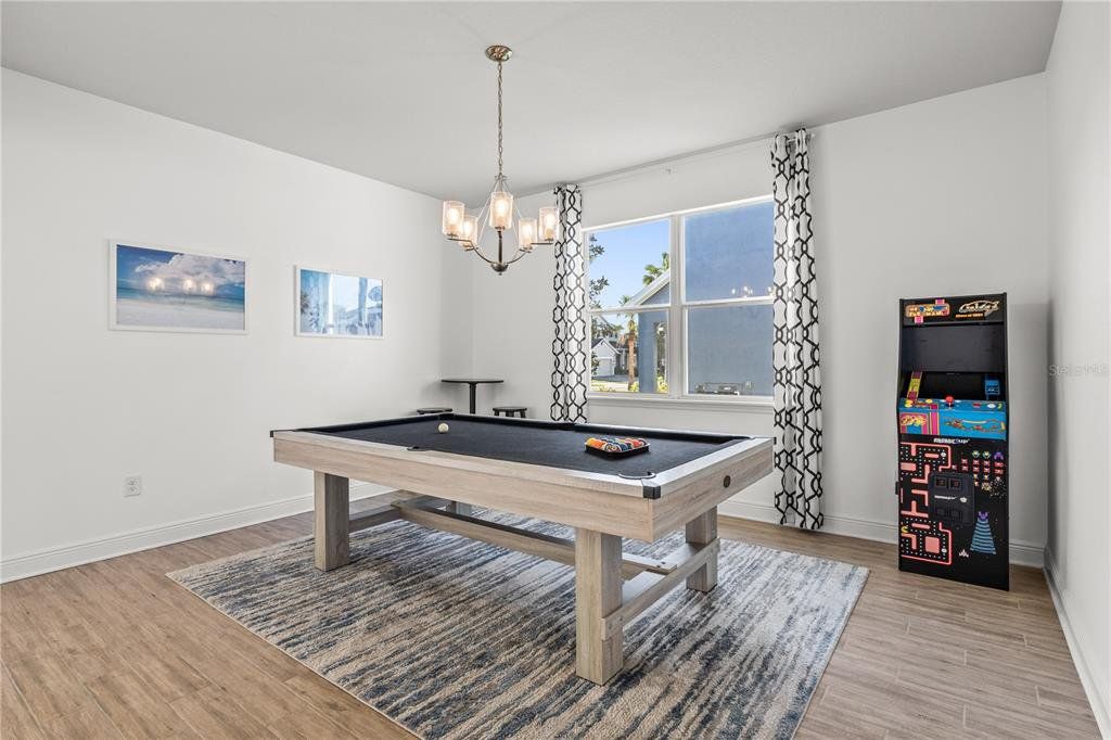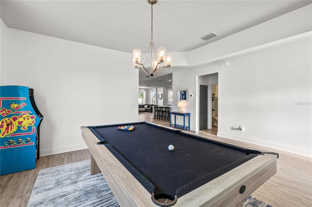 Welcome to this gorgeous 5-bedroom, 3.5-bathroom home in the highly sought-after gated community of Lucaya Lake Club—a place where comfort, functionality, and style come together beautifully. From the moment you step inside, you’ll appreciate the thoughtful upgrades, including wood-look porcelain tile flooring that brings warmth and durability to the main living spaces. The kitchen opens right into the heart of the home and features modern stainless steel appliances, making it perfect for both everyday living and hosting friends or family. The living room is anchored by a custom built-in wall and electric fireplace, creating a cozy and inviting space to unwind. Step outside and you’ll find one of the home’s true highlights—a screened-in outdoor area with a large heated saltwater pool, framed by Areca palms that offer both privacy and a touch of tropical charm. On the main floor, there’s a private guest suite with its own full bath, plus a flex room that can easily function as an office, formal dining room, or playroom depending on your lifestyle. Upstairs, you'll find four more spacious bedrooms, including a generously sized primary suite with double vanities, a walk-in shower, and an oversized walk-in closet you’ll love. The interior has been freshly painted, and the front yard has been refreshed with new sod and crisp landscaping borders, giving the home a polished, welcoming feel. As a resident of Lucaya Lake Club, you’ll also enjoy access to top-notch amenities, including a resort-style pool, fitness center, playground, and a beautiful lake at the heart of the community—perfect for peaceful walks or simply taking in the view. Just a short stroll to Collins Elementary, and close to everything—restaurants, shopping, I-75, downtown Tampa, and even the beach—this home truly offers the best of Florida living.