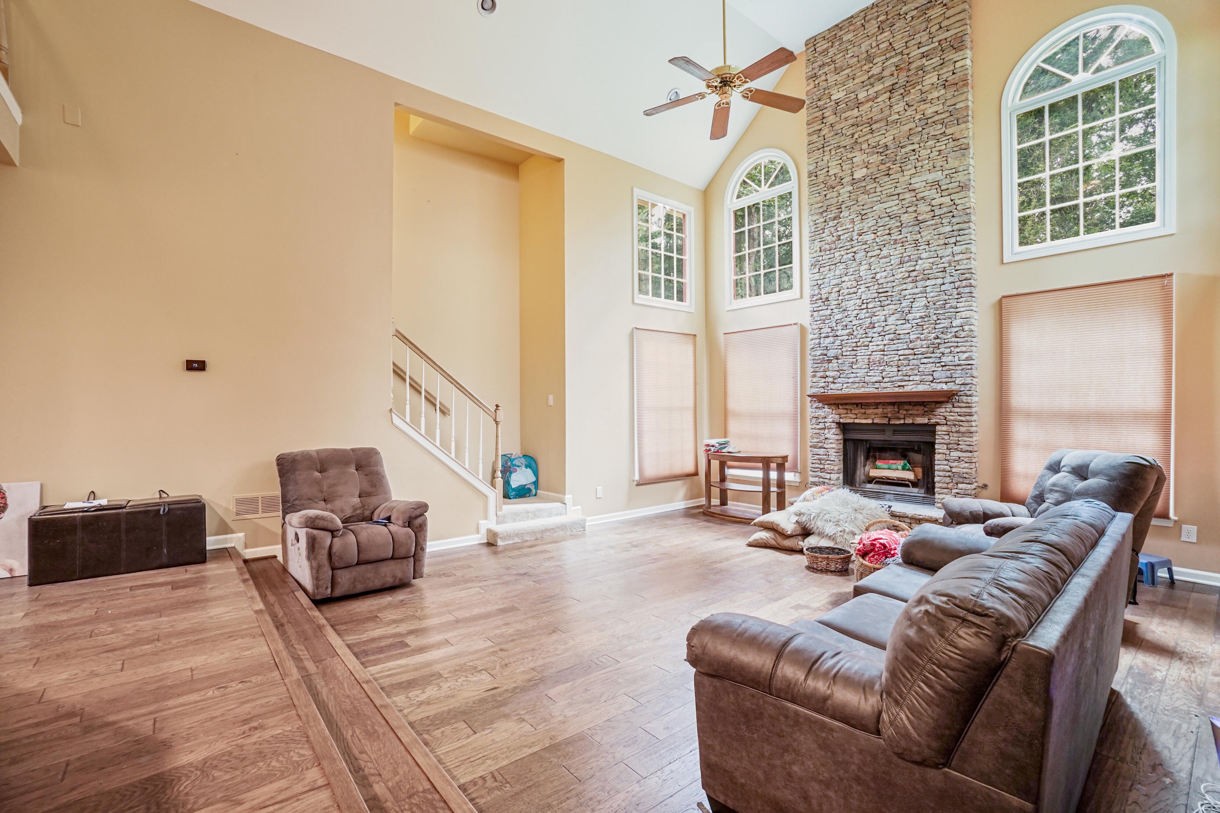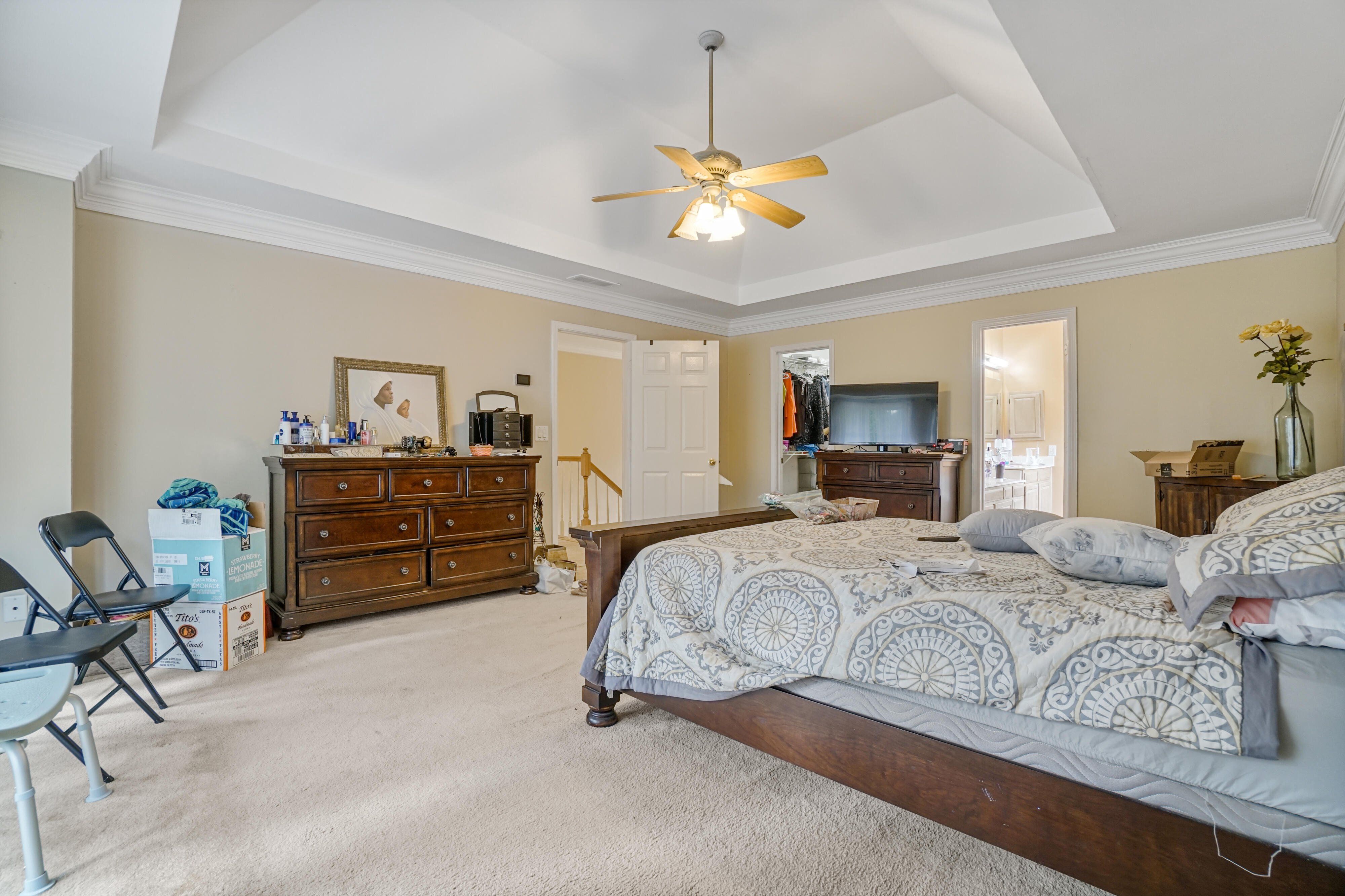 Discover modern elegance with endless potential in this 4-bedroom, 2.5-bath home in the highly sought-after River’s Edge Plantation. Designed for open-concept living and multi-generational households, this property blends luxury, community charm, and the opportunity to make it distinctly your own. Sold as-is, it needs light cosmetic updates—an ideal canvas for personal customization. A grand 2-story foyer leads to a warm, inviting family room with a fireplace, vaulted ceilings, and expansive windows that fill the space with natural light. The main level flows into a formal dining room and a gourmet kitchen with stainless steel appliances and a double oven—well-suited for gatherings and entertaining. Upstairs, the primary suite features a spa-inspired ensuite with a double vanity, separate shower, and soaking tub. Three additional bedrooms provide versatility, easily converting into home offices, guest rooms, or flexible spaces for various needs. A spacious laundry room and finished attic add convenience and adaptability, whether for storage or a custom flex room. Step outside to an expansive backyard deck overlooking a private, tree-lined view—a tranquil setting for outdoor entertaining or peaceful relaxation on this low-maintenance lot. With a few cosmetic enhancements, this home is ready to shine as your dream residence. Community Amenities: River’s Edge Plantation features resort-style living with golf, tennis courts, a scenic lakeside trail — all designed to suit every lifestyle.