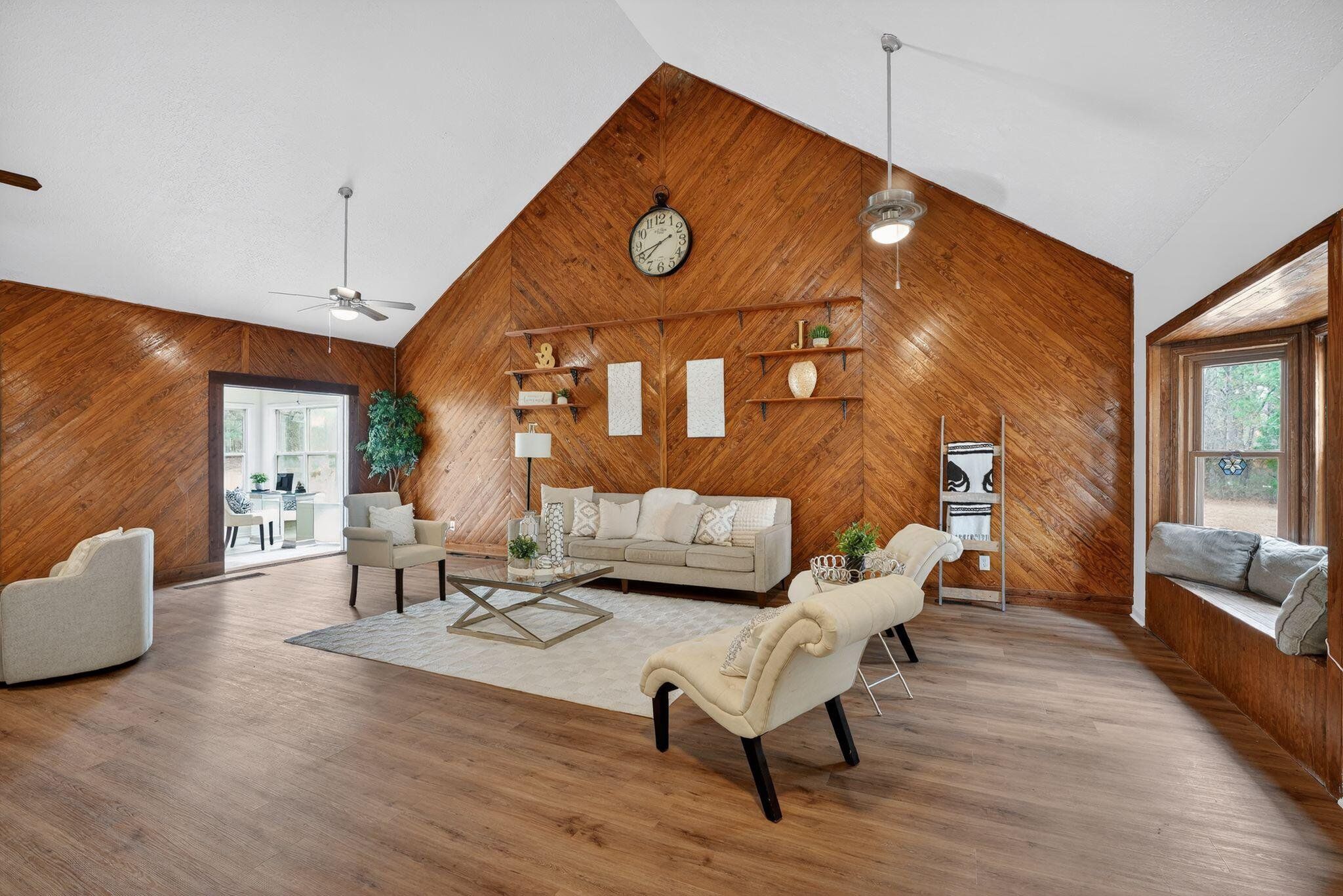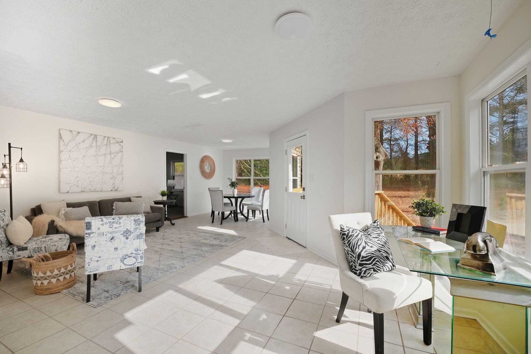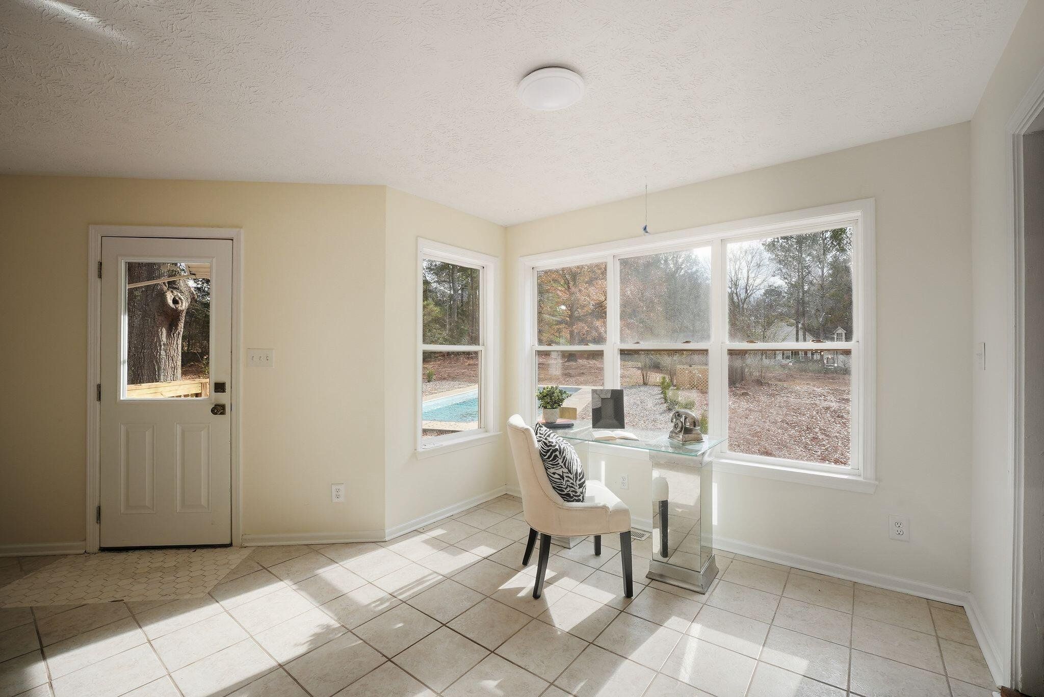 Enjoy a newly renovated in-ground pool as the centerpiece of this beautifully updated country-style home set on 1.82 private acres in Sharpsburg. Fresh interior and exterior paint, new luxury vinyl plank flooring, new carpet, and updated interior lighting create a bright, move-in ready feel throughout. The spacious interior features soaring ceilings, warm wood-accent details, a sunroom filled with natural light, and an inviting great room with flexible living space. The kitchen has stainless steel appliances, light-colored cabinetry, and butcher block countertops. Outdoor living is enhanced by the renovated pool with new equipment, a remodeled shed, and a peaceful, tree-lined setting offering space and privacy. This property blends modern updates with rustic character in a serene Coweta County location. "Some photos have been digitally modified"