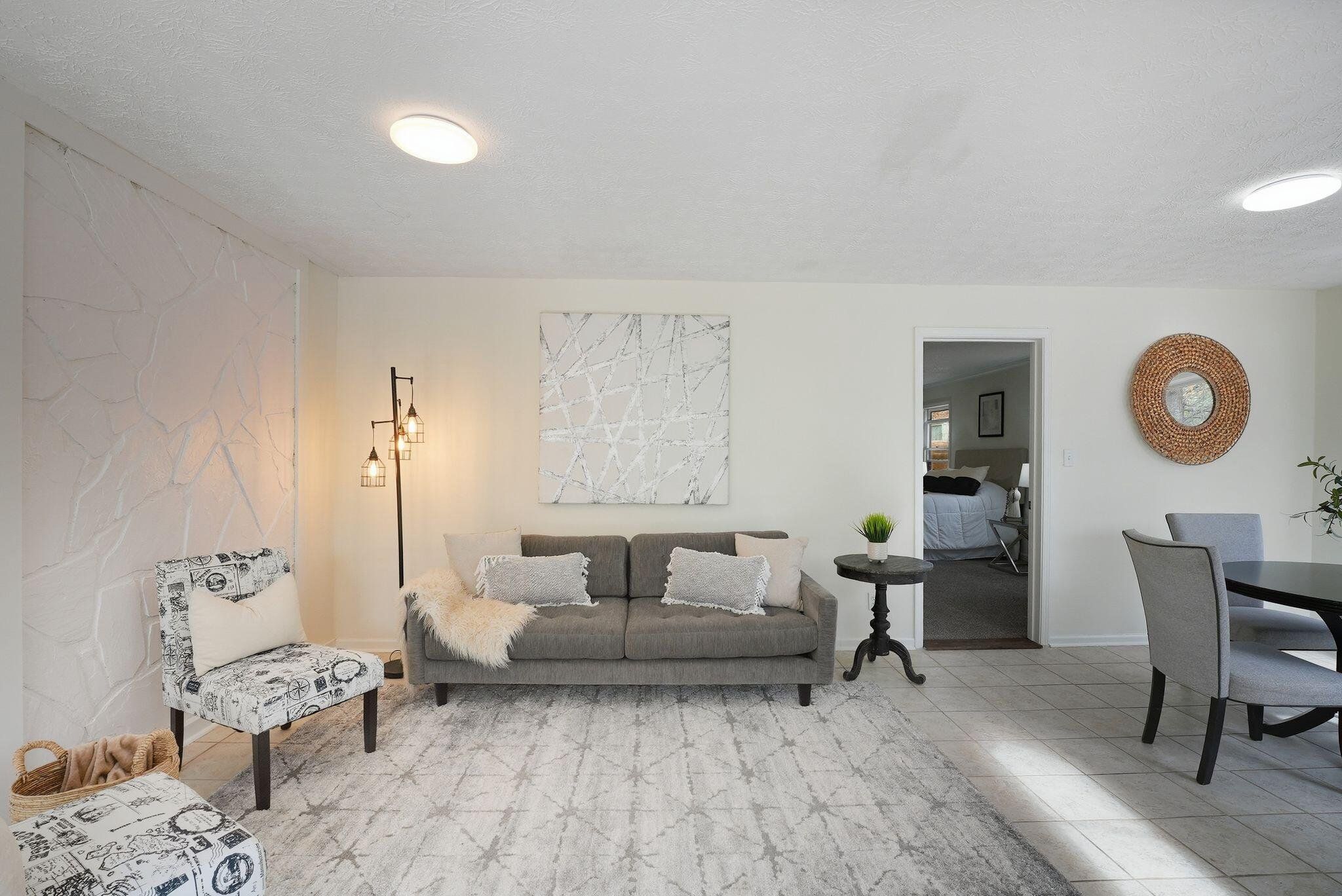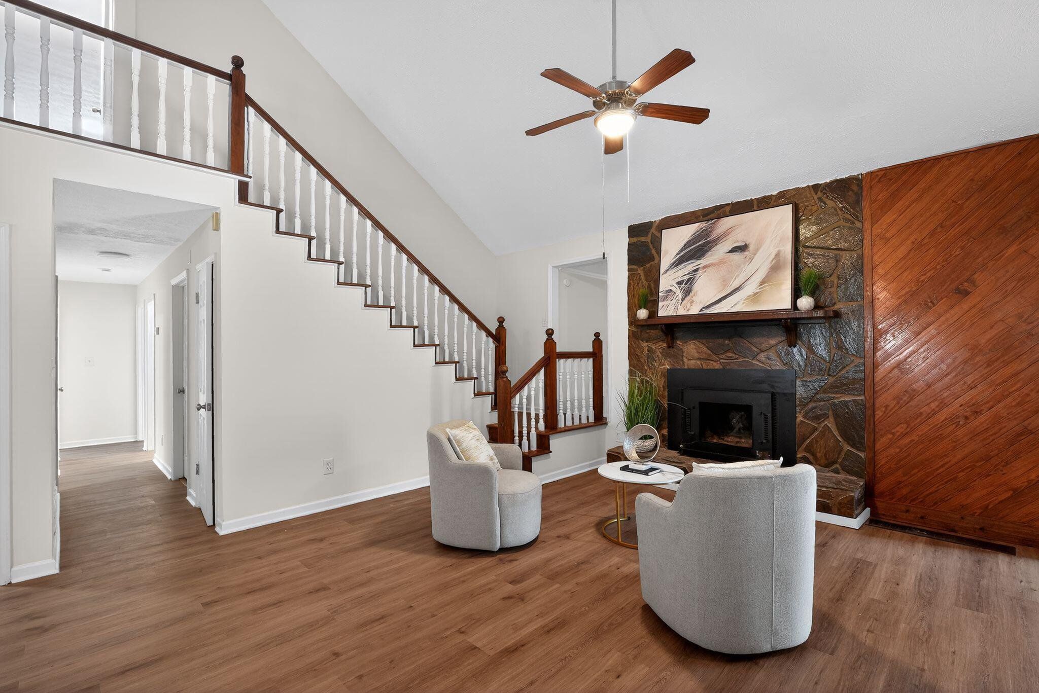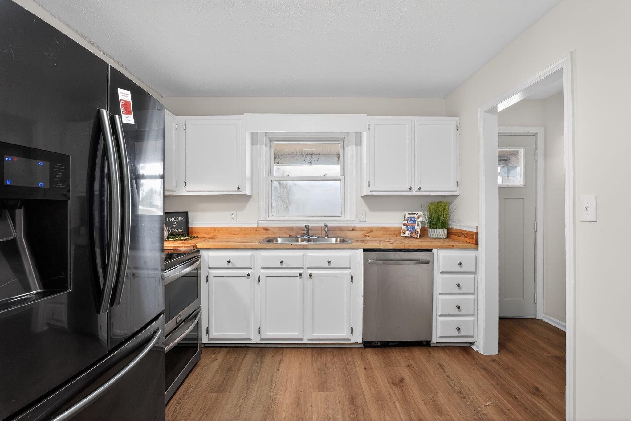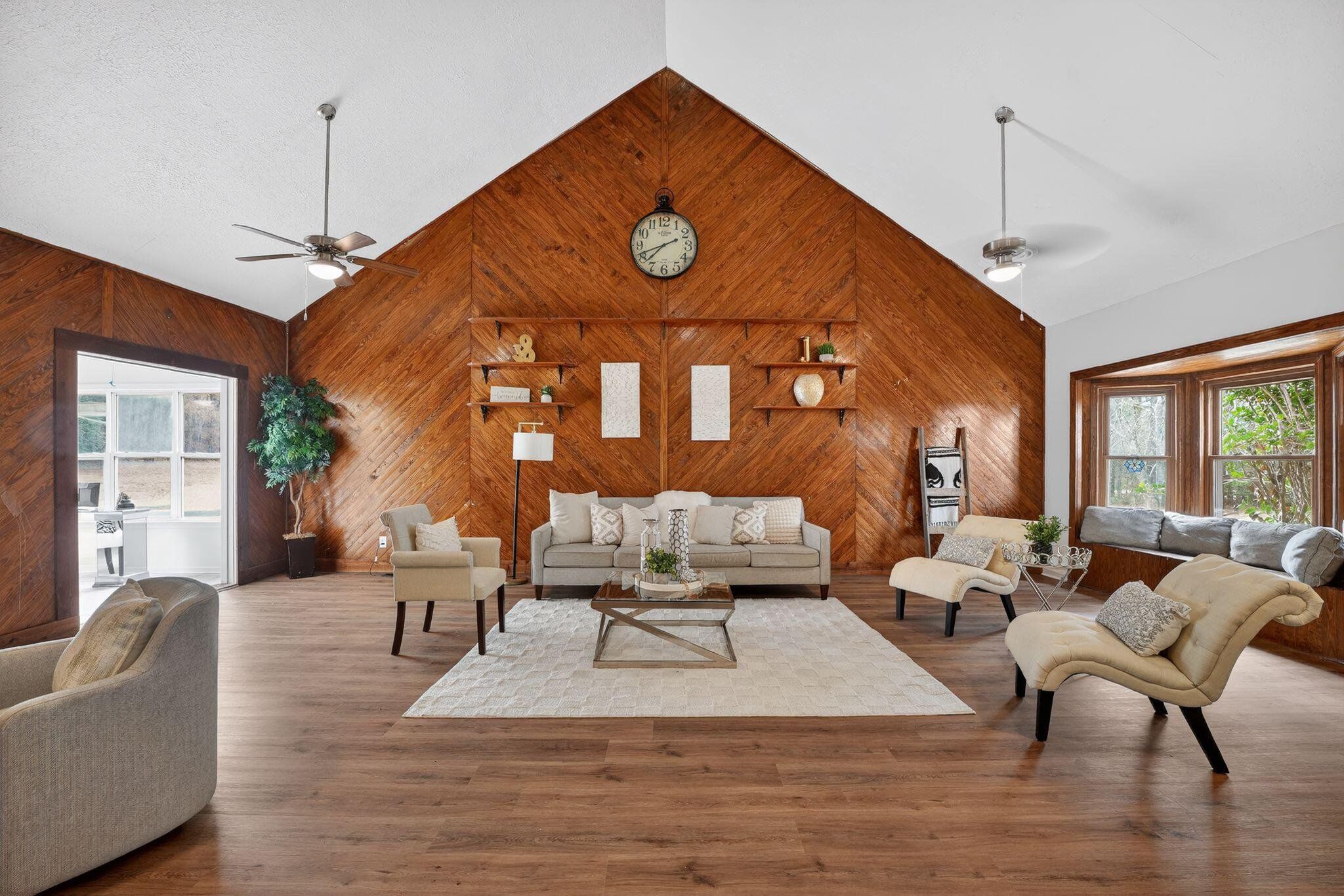 Enjoy a newly renovated in-ground pool as the centerpiece of this beautifully updated country-style home set on 1.82 private acres in Sharpsburg. Fresh interior and exterior paint, new luxury vinyl plank flooring, new carpet, and updated interior lighting create a bright, move-in ready feel throughout. The spacious interior features soaring ceilings, warm wood-accent details, a sunroom filled with natural light, and an inviting great room with flexible living space. The kitchen has stainless steel appliances, light-colored cabinetry, and butcher block countertops. Outdoor living is enhanced by the renovated pool with new equipment, a remodeled shed, and a peaceful, tree-lined setting offering space and privacy. This property blends modern updates with rustic character in a serene Coweta County location. "Some photos have been digitally modified"