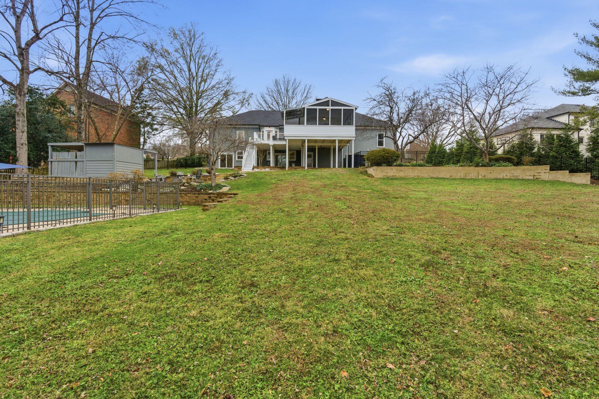 1210 Choctaw Trail, Brentwood, TN 5,167 sq ft • Indian Point • Renovated 2025 • $200K in improvements • Expandable Attic (1,200 sq ft). Discover a beautifully renovated home in Brentwood’s popular Indian Point neighborhood—fresh, bright, and thoughtfully upgraded with over $200,000 in improvements completed in 2025. Sitting on a private, wooded lot with layered outdoor living spaces, this 5,167 sq ft retreat blends refined updates with the kind of comfort and livability buyers hope to find but rarely do. A Home Reimagined The main level now has an open, modern flow thanks to a wall removed between the kitchen and great room. The kitchen features new countertops, updated lighting, fresh paint, and a cleaner, brighter aesthetic. Three bathrooms were fully renovated with new flooring, lighting, vanities, and fixtures. The entire interior has been repainted, giving the home a crisp, move-in-ready feel. The screened porch was completely rebuilt with new flooring, new walls, new screens, and fresh finishes. The expansive deck was refinished and structurally reinforced, creating the perfect setting for outdoor dining, grilling, and entertaining. Exterior enhancements and updated landscaping give the home a clean, polished curb appeal. A Rare Expansion Opportunity This property includes architectural drawings for a new staircase leading to the 1,200 sq ft unfinished attic—a massive extra space that can be transformed into a media room, playroom, office suite, gym, or additional bedrooms and bath. The layout and ceiling height make future expansion both appealing and achievable, giving the next owner room to grow and immediate upside in value. Outdoor Living That Feels Like a Retreat The backyard provides multiple living zones: a renovated screened porch, upper dining deck, lower paver patio, grilling area, fire pit terrace, fenced yard, and a large, winterized swimming pool with pavilion. Drone photos showcase the privacy, elevation, and the natural beauty