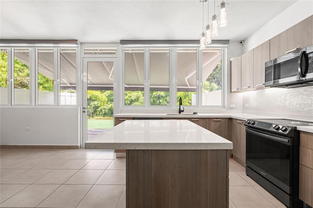 Modern townhouse in Rotonda Downtown, Guaynabo. Enjoy unobstructed river views, open-concept living spaces, and a private outdoor area, all nestled in a peaceful setting. This home features a fully paid-off solar power system with Tesla Powerwall battery backup, providing exceptional energy efficiency.