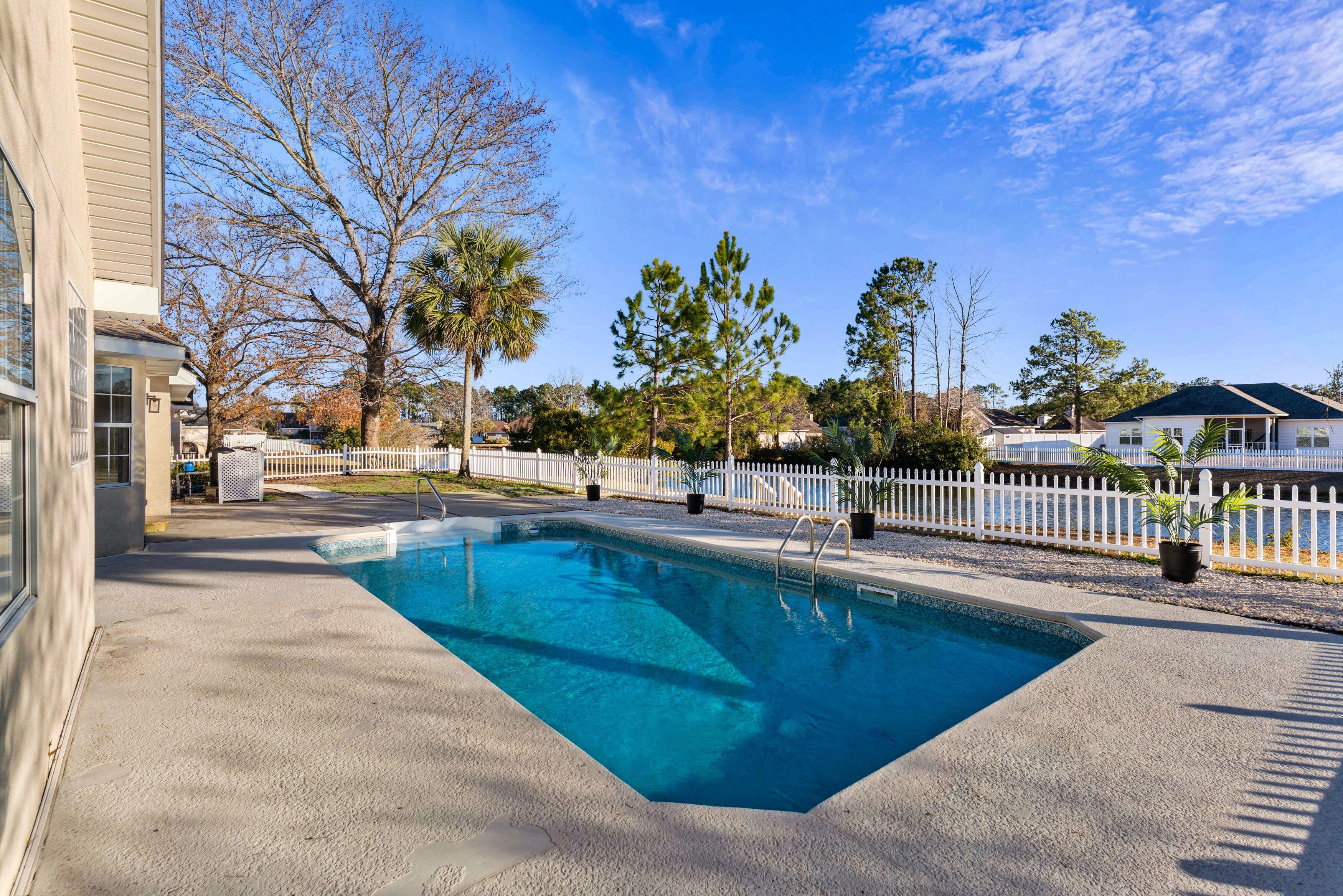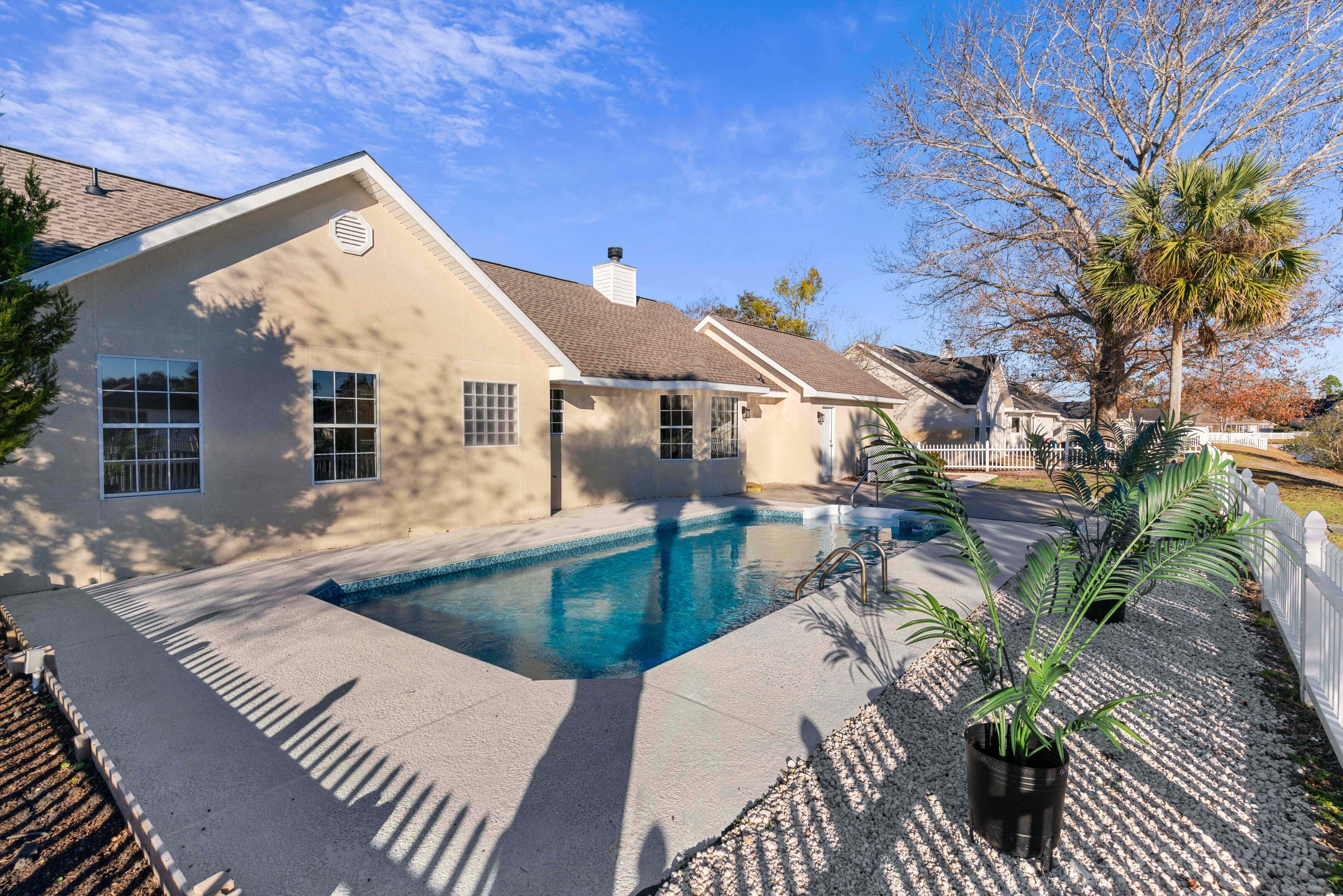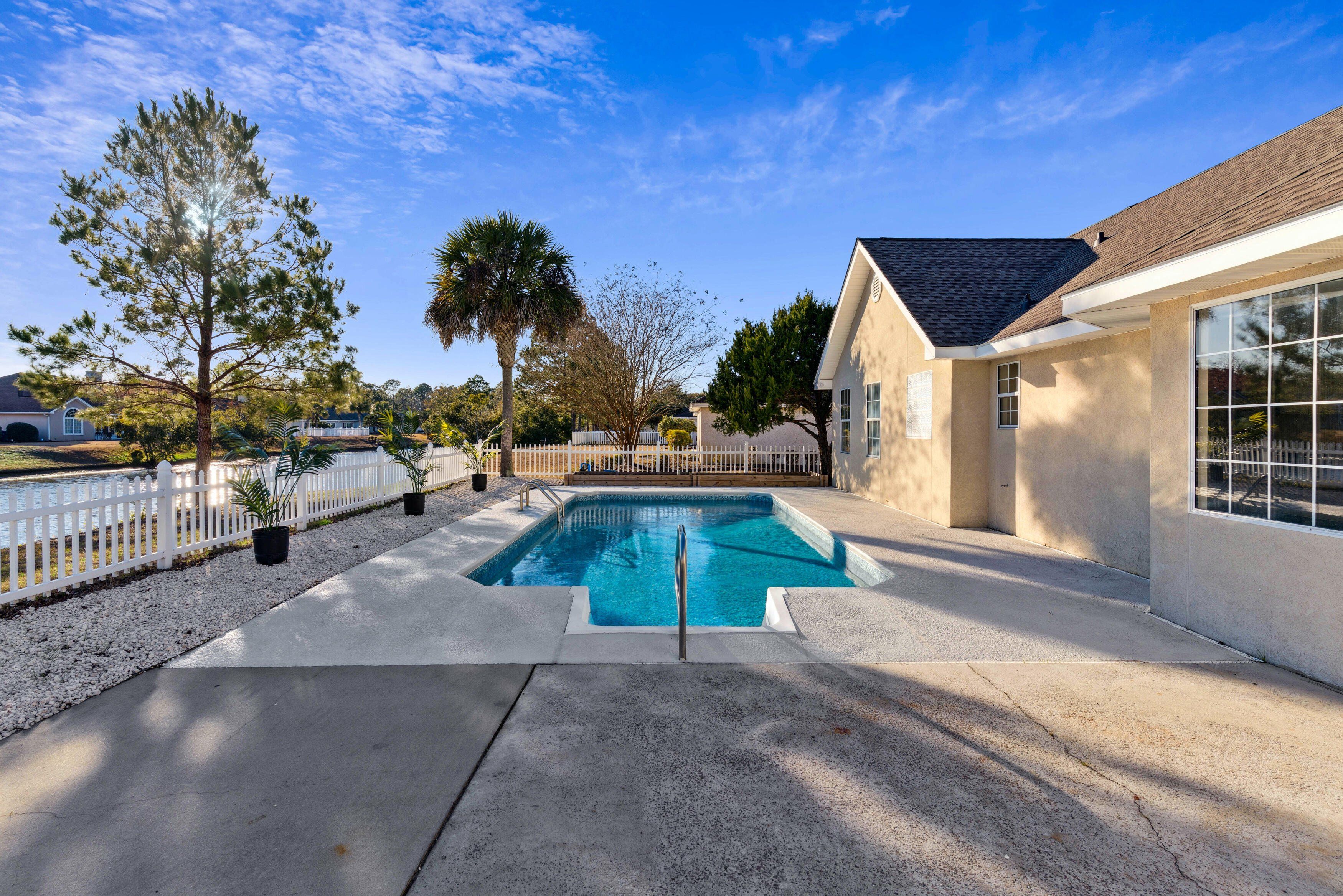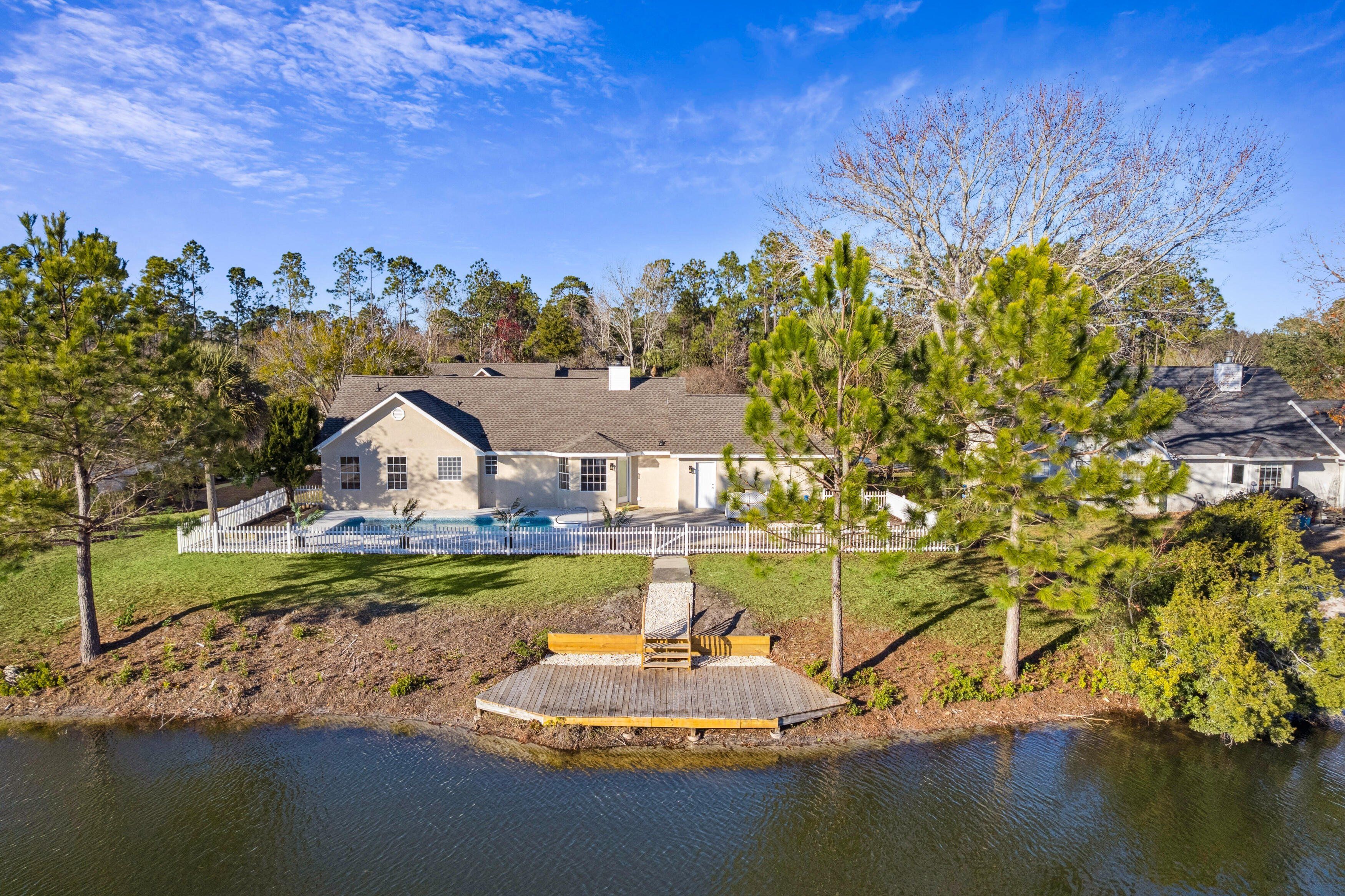 This 3 bedroom, 2 bathroom lakefront home features a rare combination of a private in-ground pool and a private dock for fishing and relaxation. Recent upgrades include: • New roof • New HVAC system • New pool liner • New pool pump • Professionally serviced pool • New well pump • Irrigation system • Fresh interior paint • Updated flooring • Updated bathrooms with new vanities • Fenced backyard with raised garden bed The home features cathedral ceilings and a wood-burning fireplace and is move-in ready in a quiet, established neighborhood. Some photos have been virtually staged to illustrate potential furniture placement and scale.