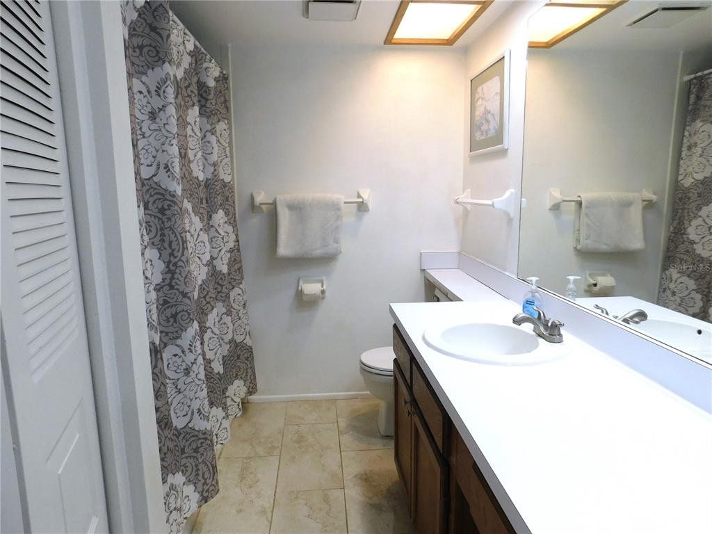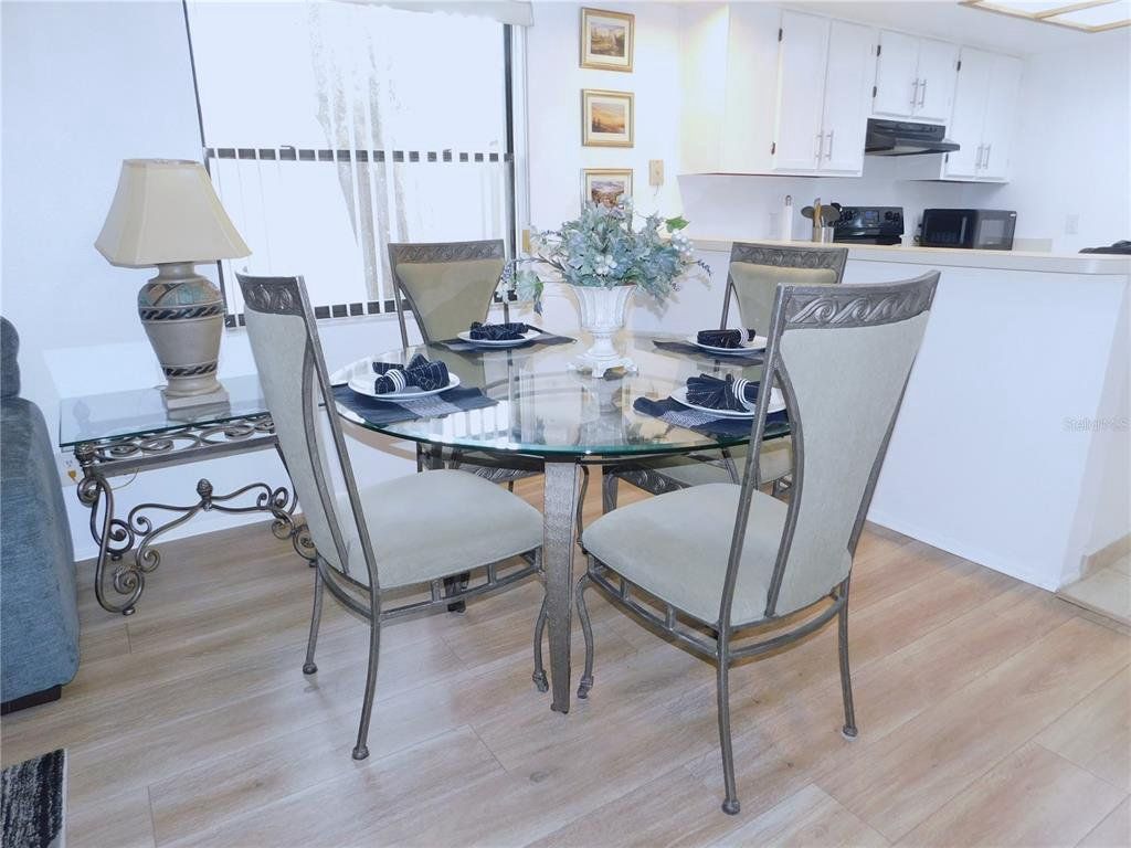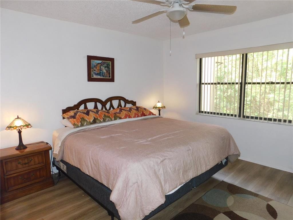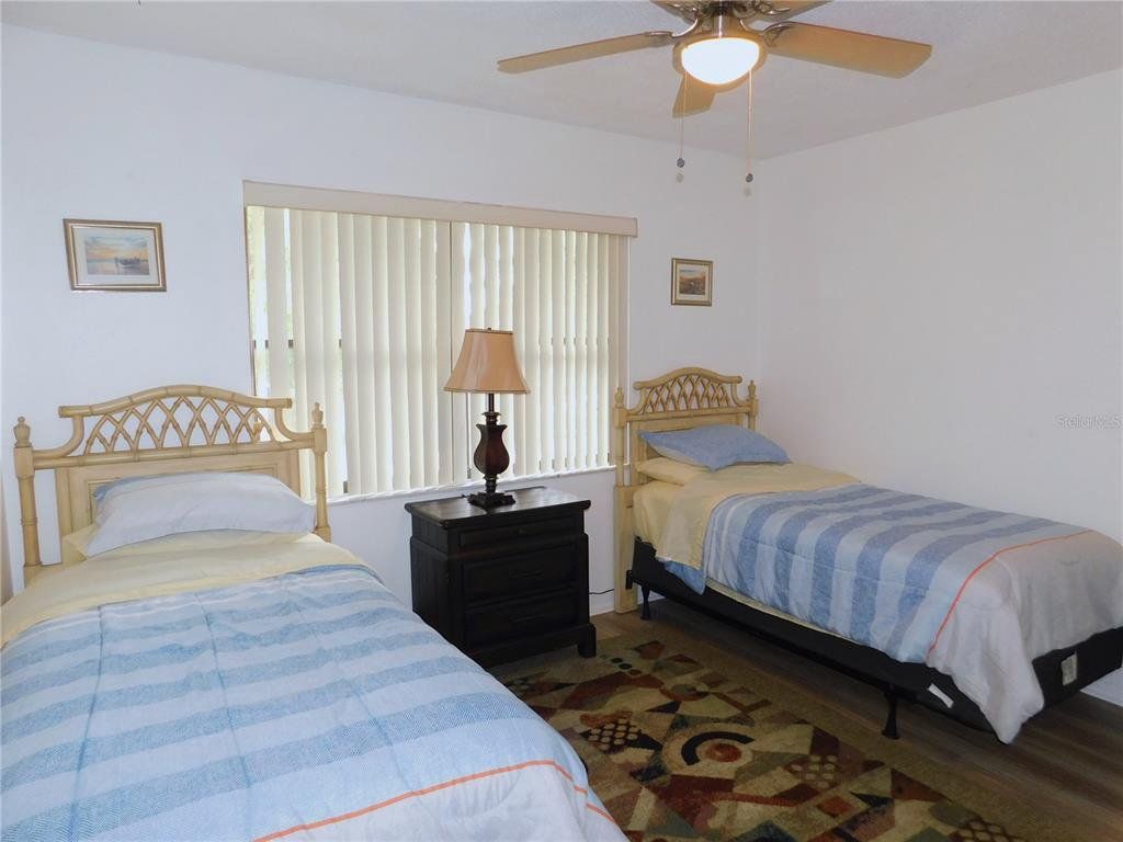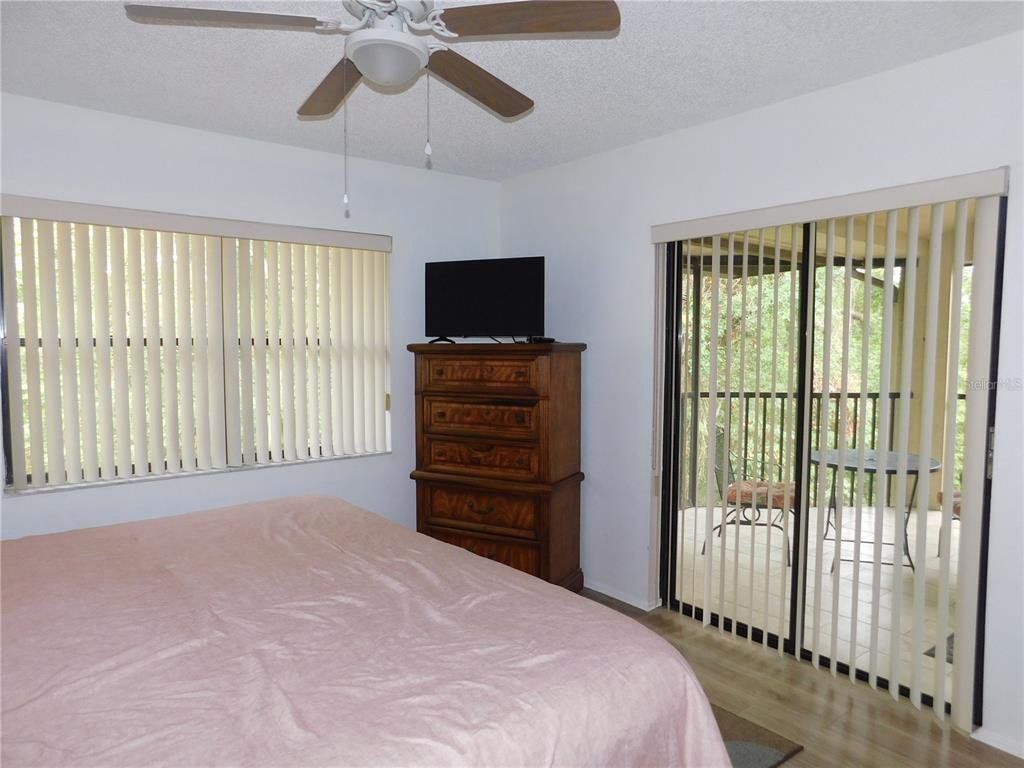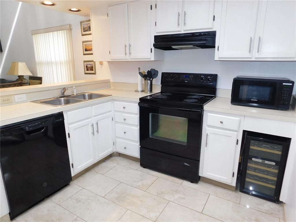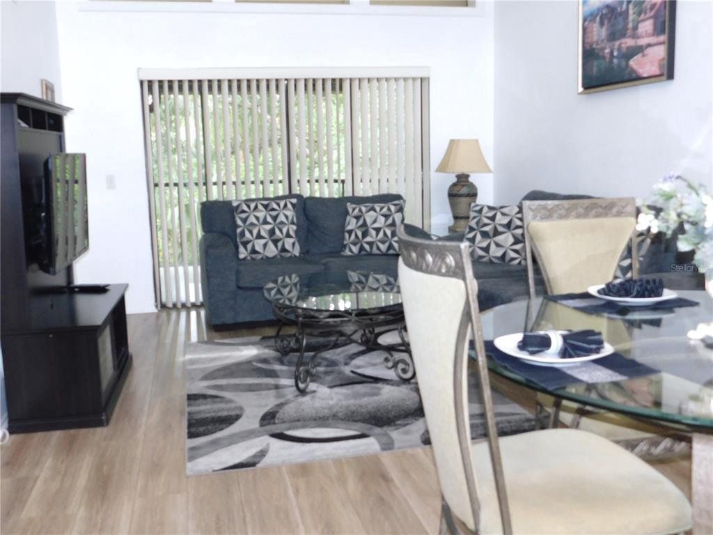 Come home every evening, relax on your screen enclosed oversized lanai overlooking your wooded lot backdrop and let the day's cares slip away! This second floor end unit condo with vaulted ceilings is waiting for you, well maintained condition and complete with all furnishings! Foyer entrance with hall closet takes you into the living/dining combination showcased with beautiful natural light from the clearview windows along the vaulted ceilings to the sliding glass doors on either end of the living space. The open floor design of the living area is met with a breakfast bar into the kitchen with sliders out to the screen enclosed lanai in the front of the condo where the washer & dryer are located in the utility closet. This condo offers a split bedroom plan. The primary suite gives you two closets, king size bed, sliders out to your private lanai and primary bathroom with tub/shower combination, oversized vanity and large linen closet. The guest bedroom also has sliders out to the front screen enclosed lanai, along with wall closet and twin (single) beds. The guest bath with another linen closet has a walk in shower. If you are ready to explore, the location of the condo is fantastic - starting with the nearby community heated pools (two of them) or visit/join Ardea Country Club that offers two 18 hole golf courses, their own pools, tennis, pickleball, fitness center, Clubhouse, restaurants and activities. Your condo is an easy commute to Westfield Countryside Mall, area shopping, various restaurants and entertainment plus the sandy beaches of Honeymoon Island along with local parks and walking trails for your low stress lifestyle. More dining and shopping in the surrounding downtown areas of Tarpon Springs, Dunedin and Safety Harbor. As a convenience to the sellers, the condo is being offered fully furnished and the condo is located in Woodlake Run area of the gated community of East Lake Woodlands Country Club. New a/c in 2023, new hw heater and dishwasher in 2024.