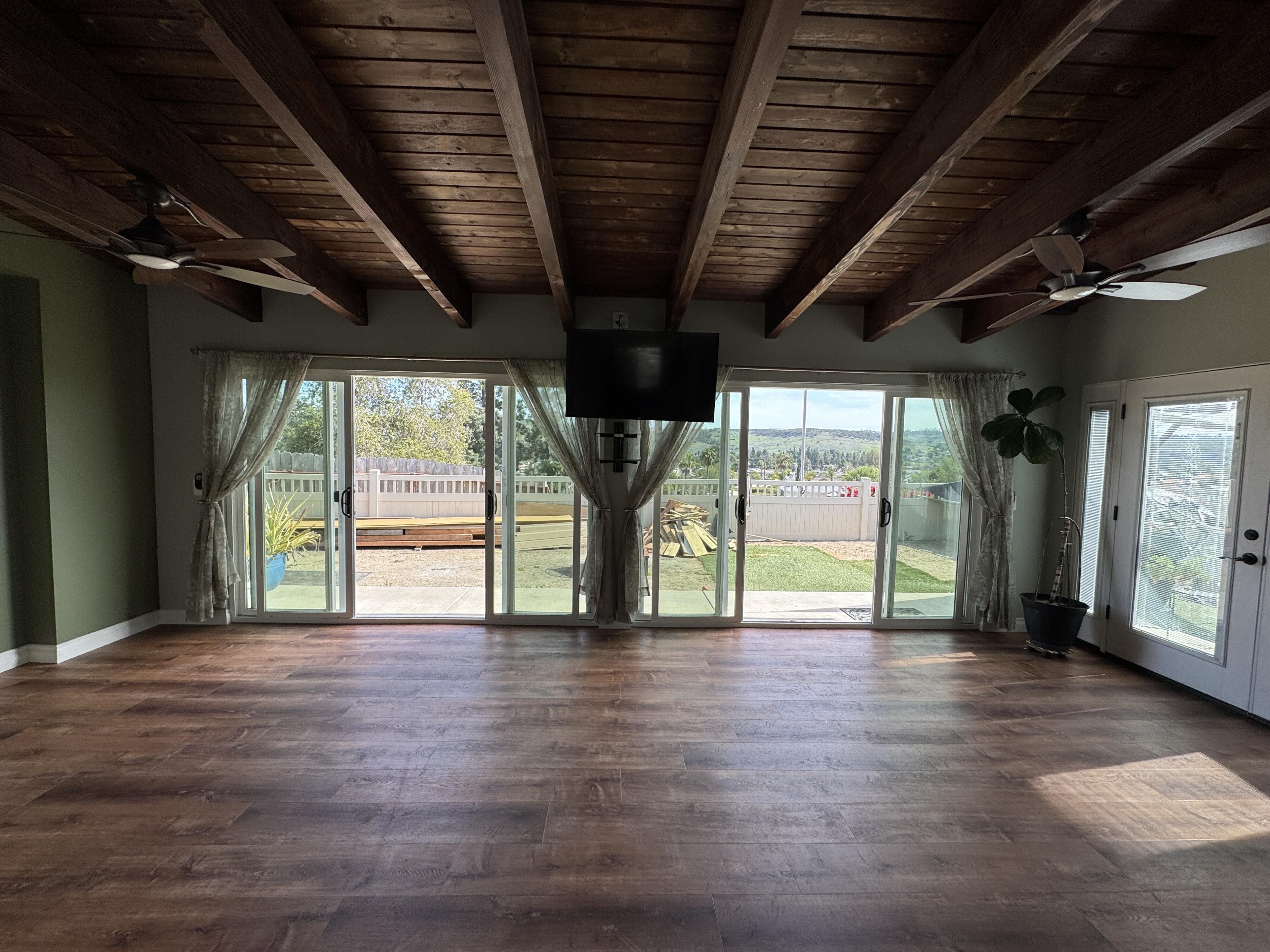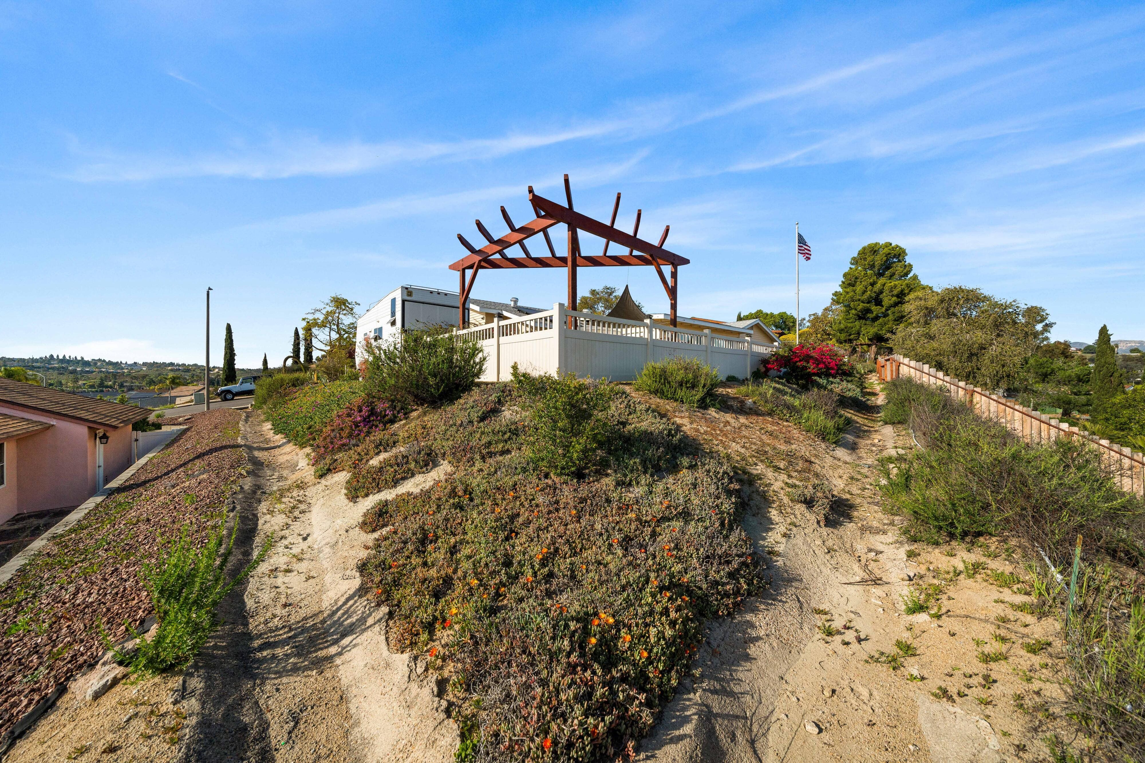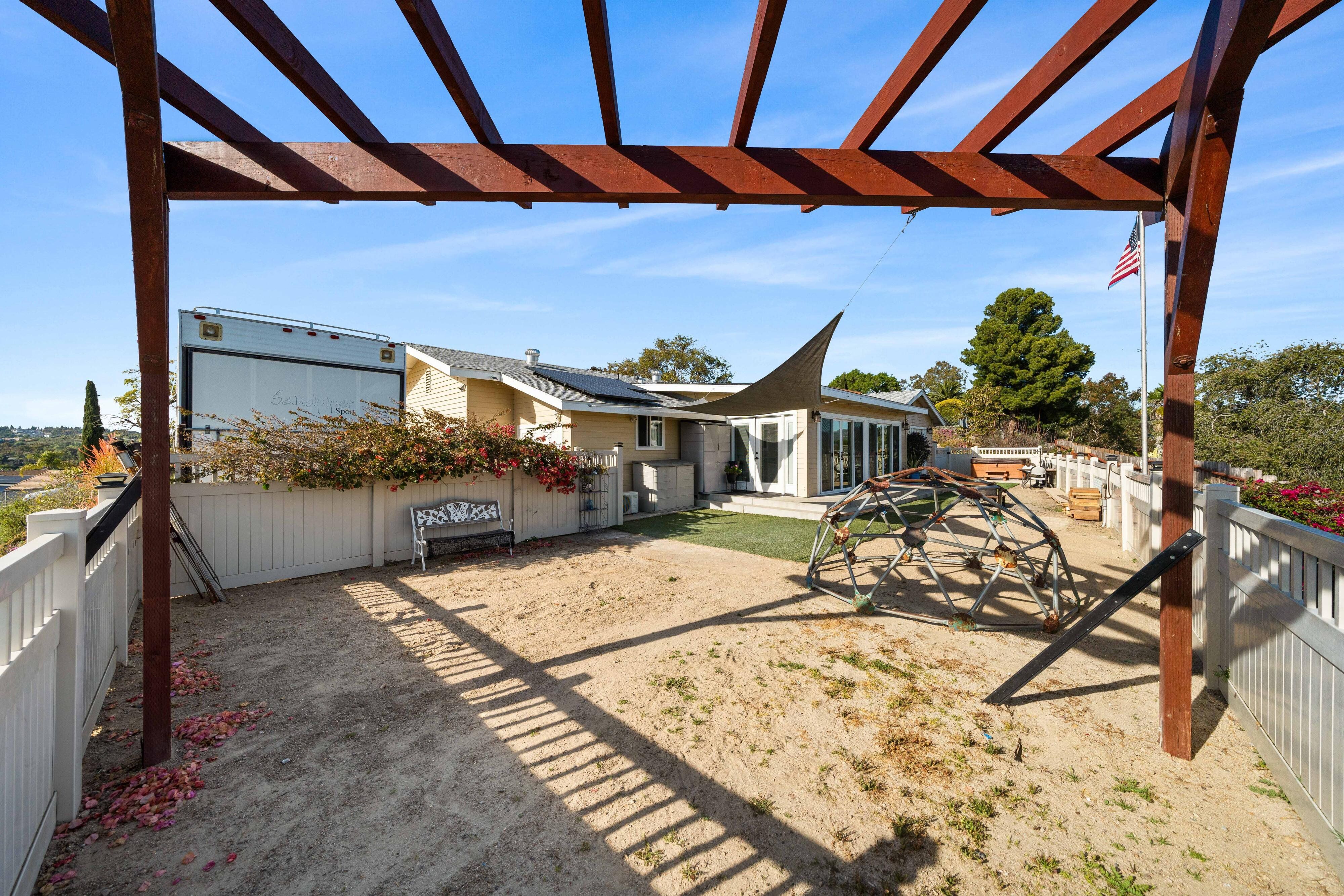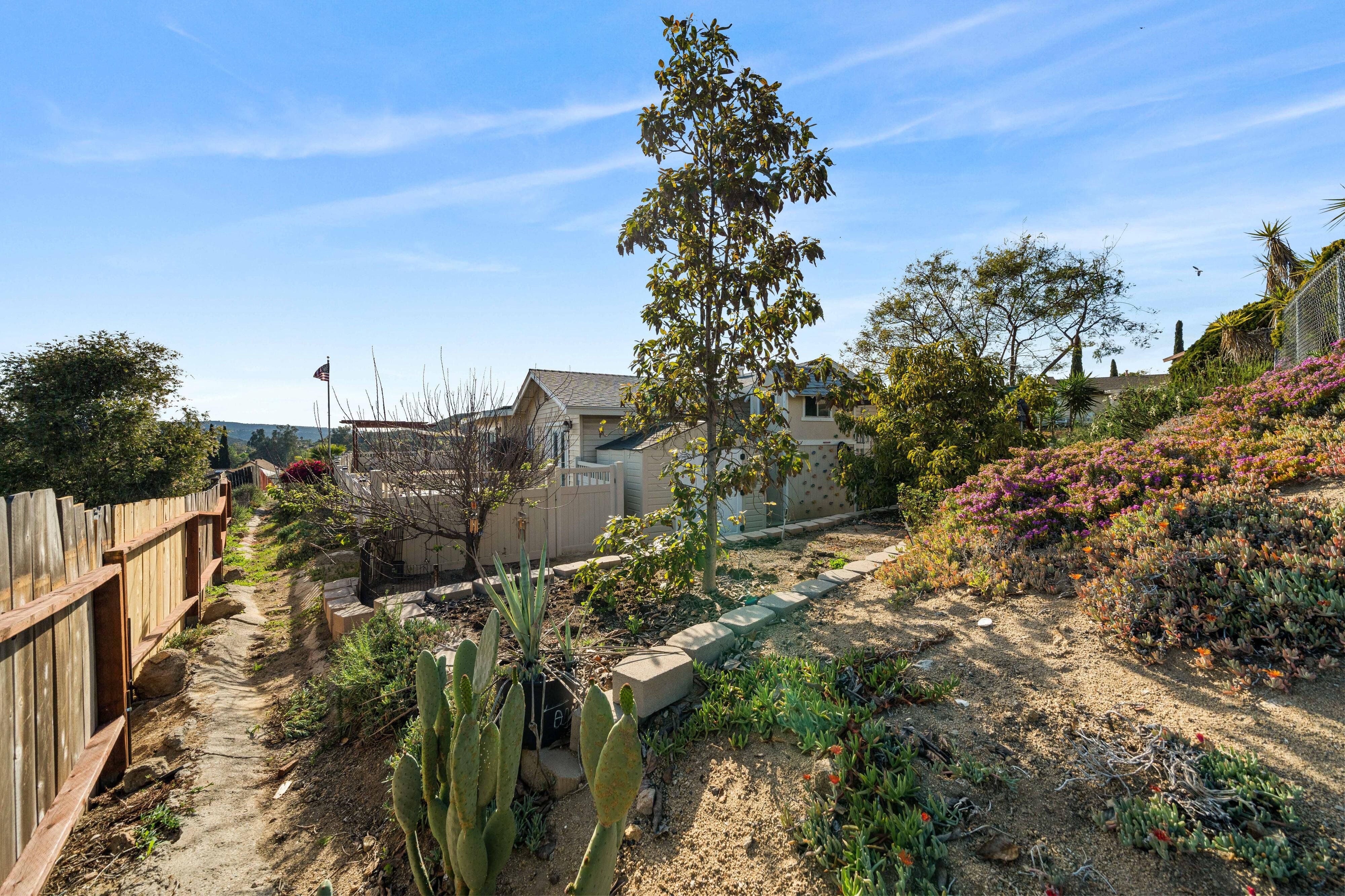 Welcome to our unique, spacious 2,200 square foot home with the most beautiful views and privacy in the neighborhood. We are part of Poway school district which is rated top 10 in the nation, within walking distance to the elementary and middle schools. We own our solar panels with a credit on our electric bill each month. We have a super spacious living area with a beamed, vaulted ceiling that opens into the kitchen and sunroom where you can see the view of the city and mountains. We have 3 standard bedrooms and 2 bonus rooms (potential bedrooms/studio) all of which are spacious with bright lighted windows. New paint inside & outside, blinds, roof and floors. The property has many fruit trees and exotic plants. We also have RV parking with full hook-ups.