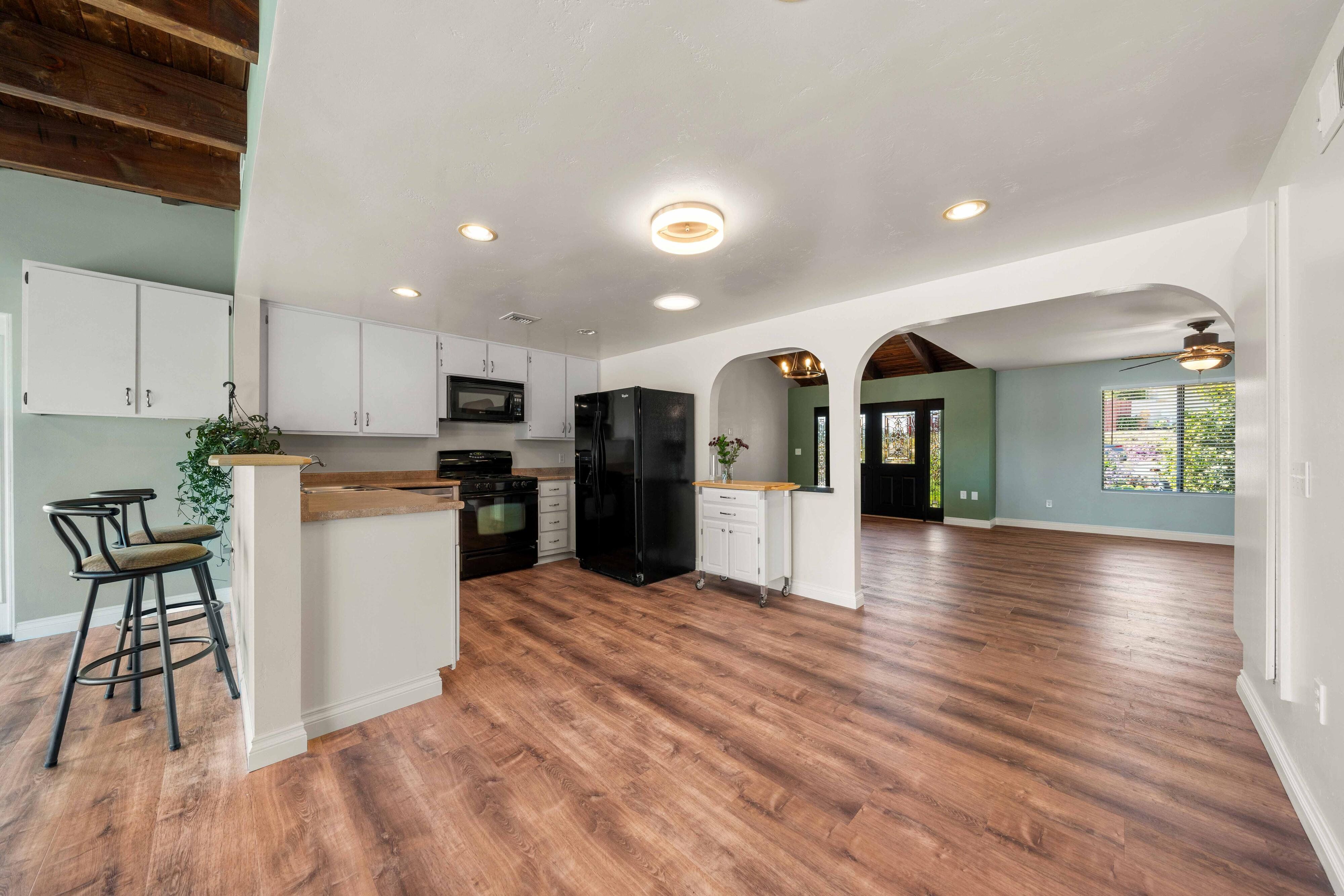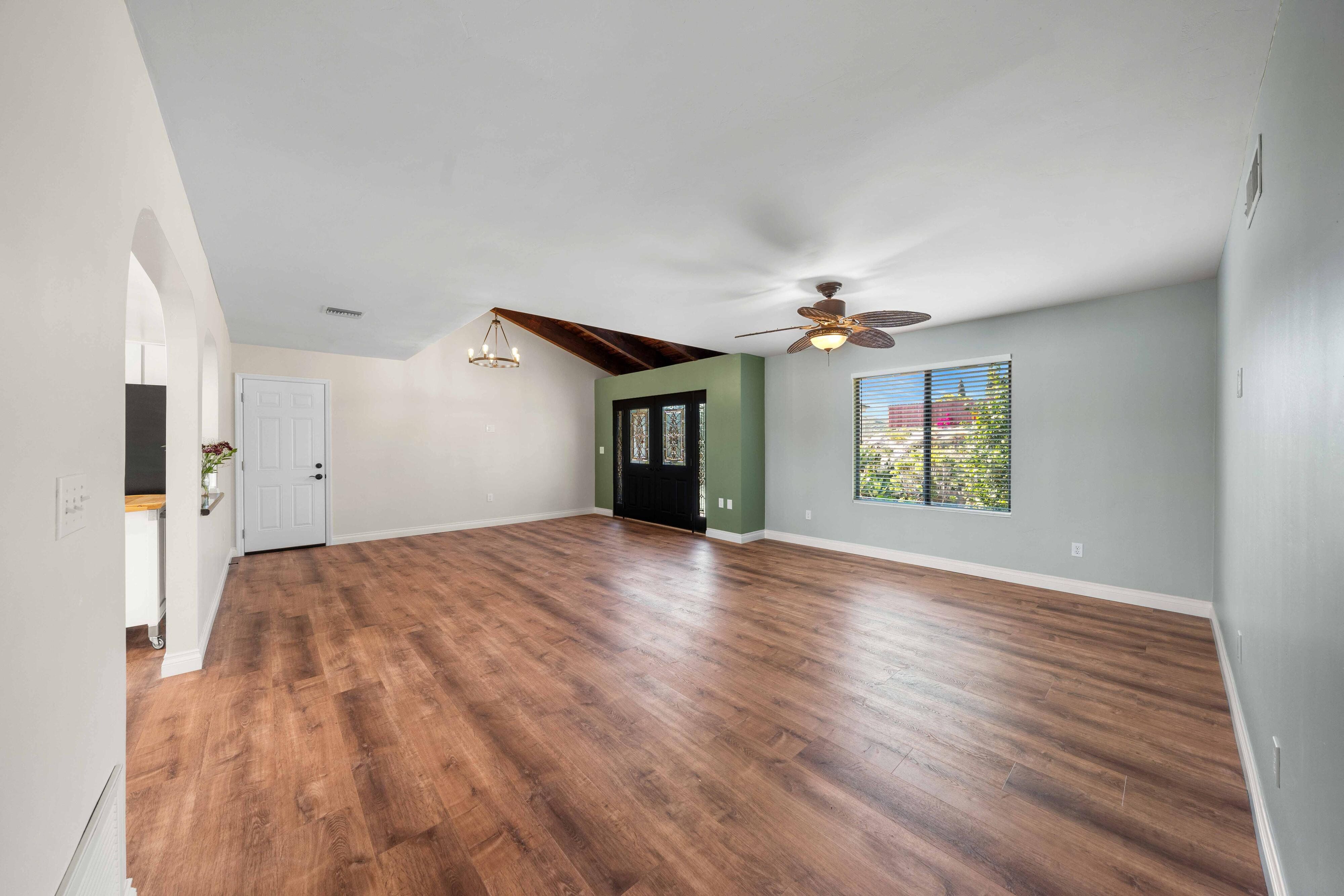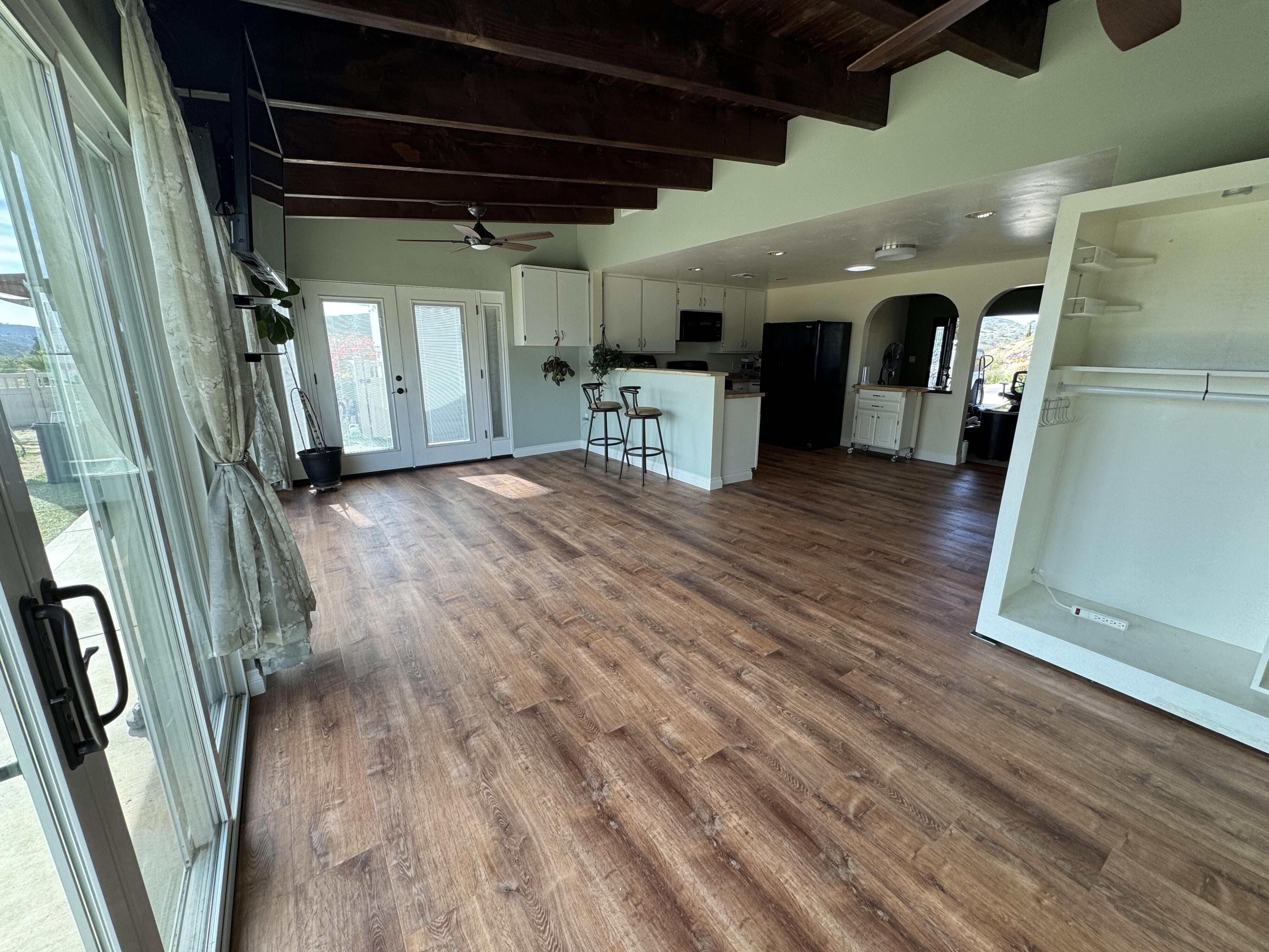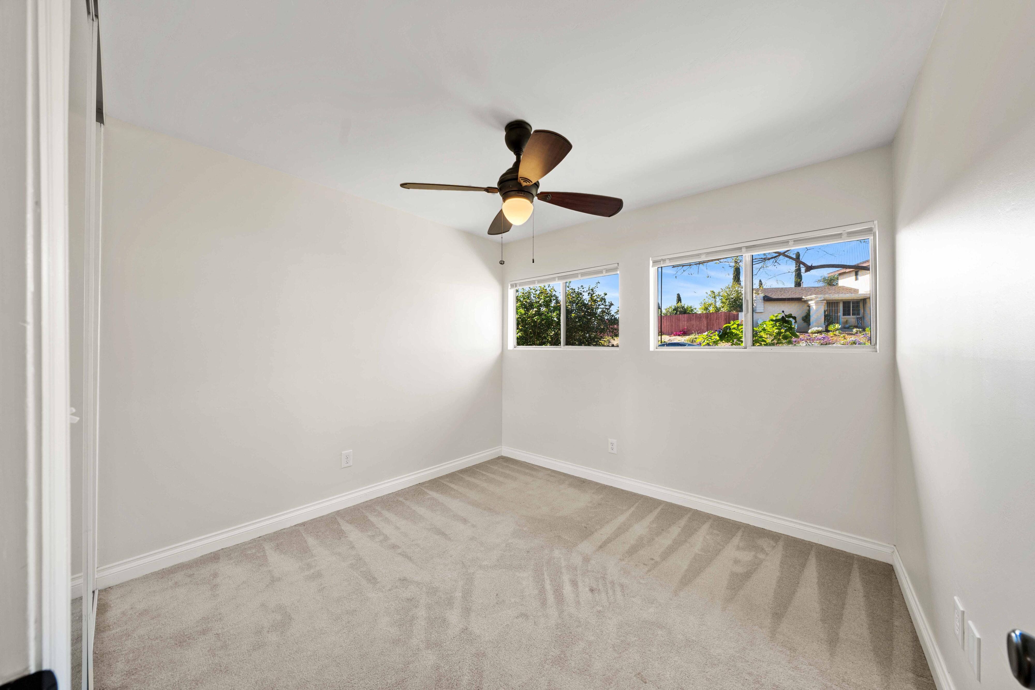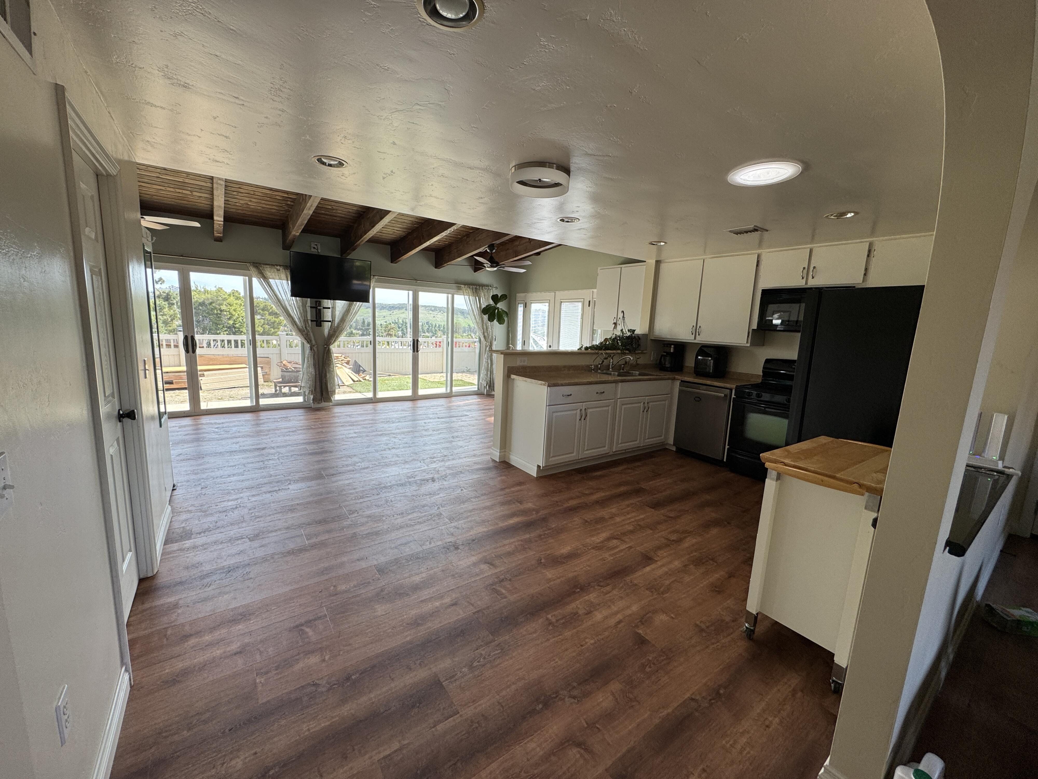 Welcome to our unique, spacious 2,200 square foot home with the most beautiful views and privacy in the neighborhood. We are part of Poway school district which is rated top 10 in the nation, within walking distance to the elementary and middle schools. We own our solar panels with a credit on our electric bill each month. We have a super spacious living area with a beamed, vaulted ceiling that opens into the kitchen and sunroom where you can see the view of the city and mountains. We have 3 standard bedrooms and 2 bonus rooms (potential bedrooms/studio) all of which are spacious with bright lighted windows. New paint inside & outside, blinds, roof and floors. The property has many fruit trees and exotic plants. We also have RV parking with full hook-ups.