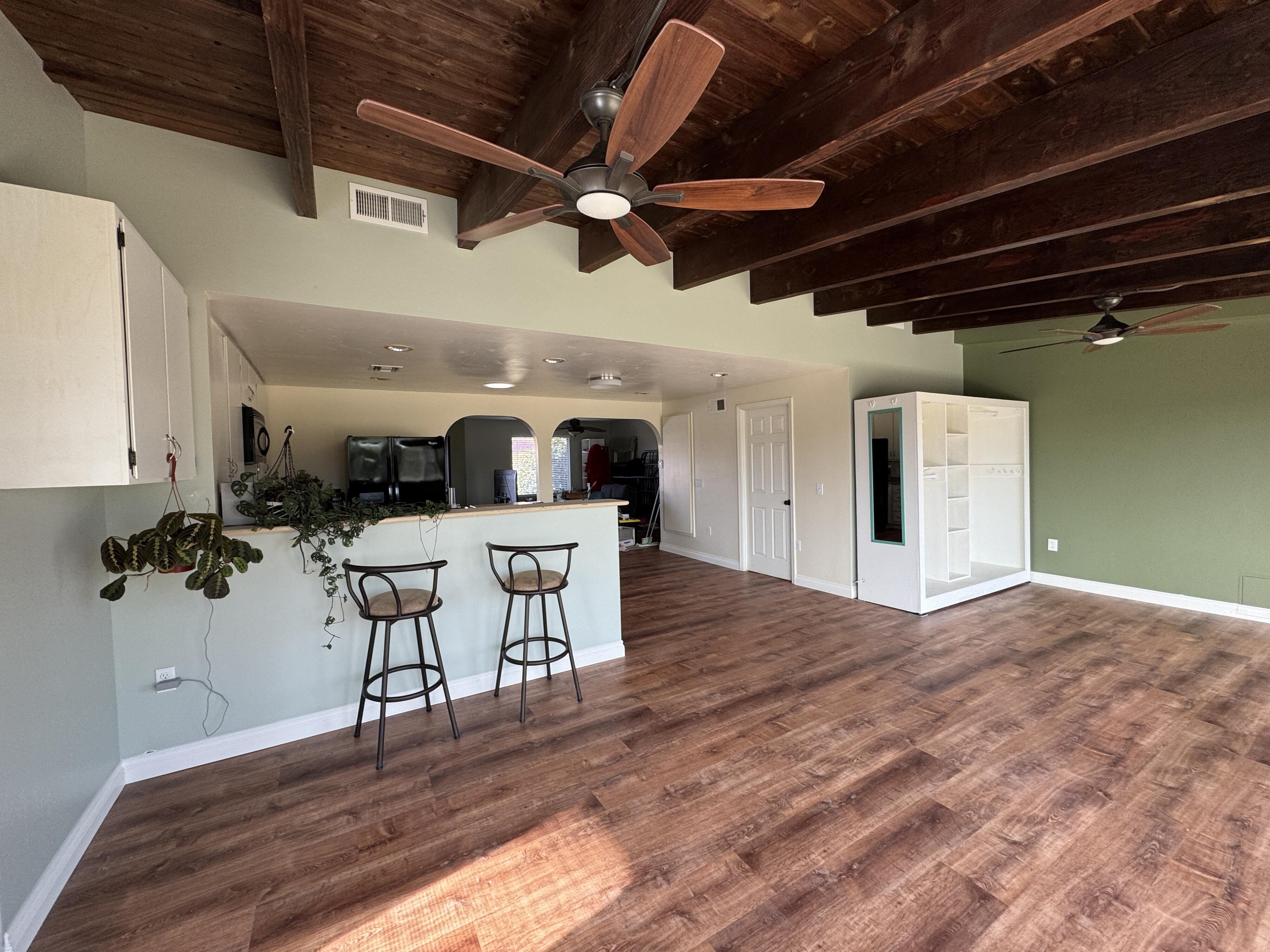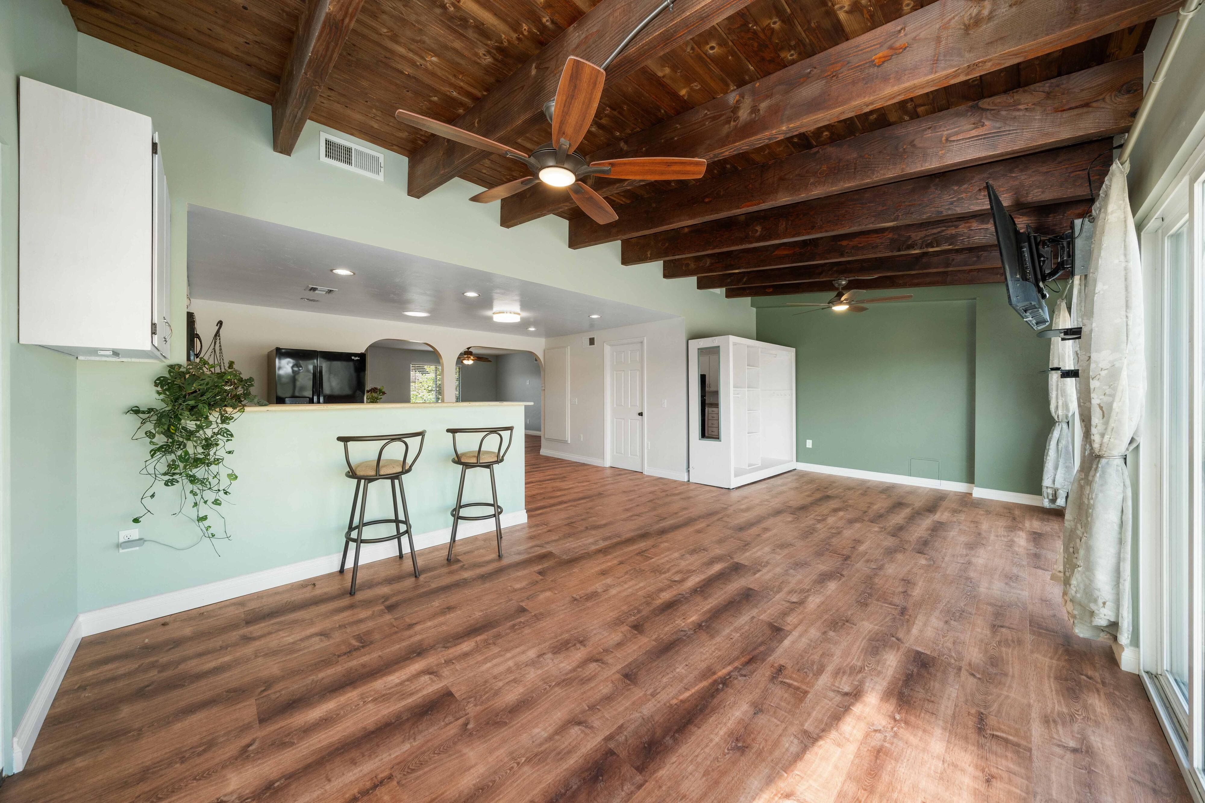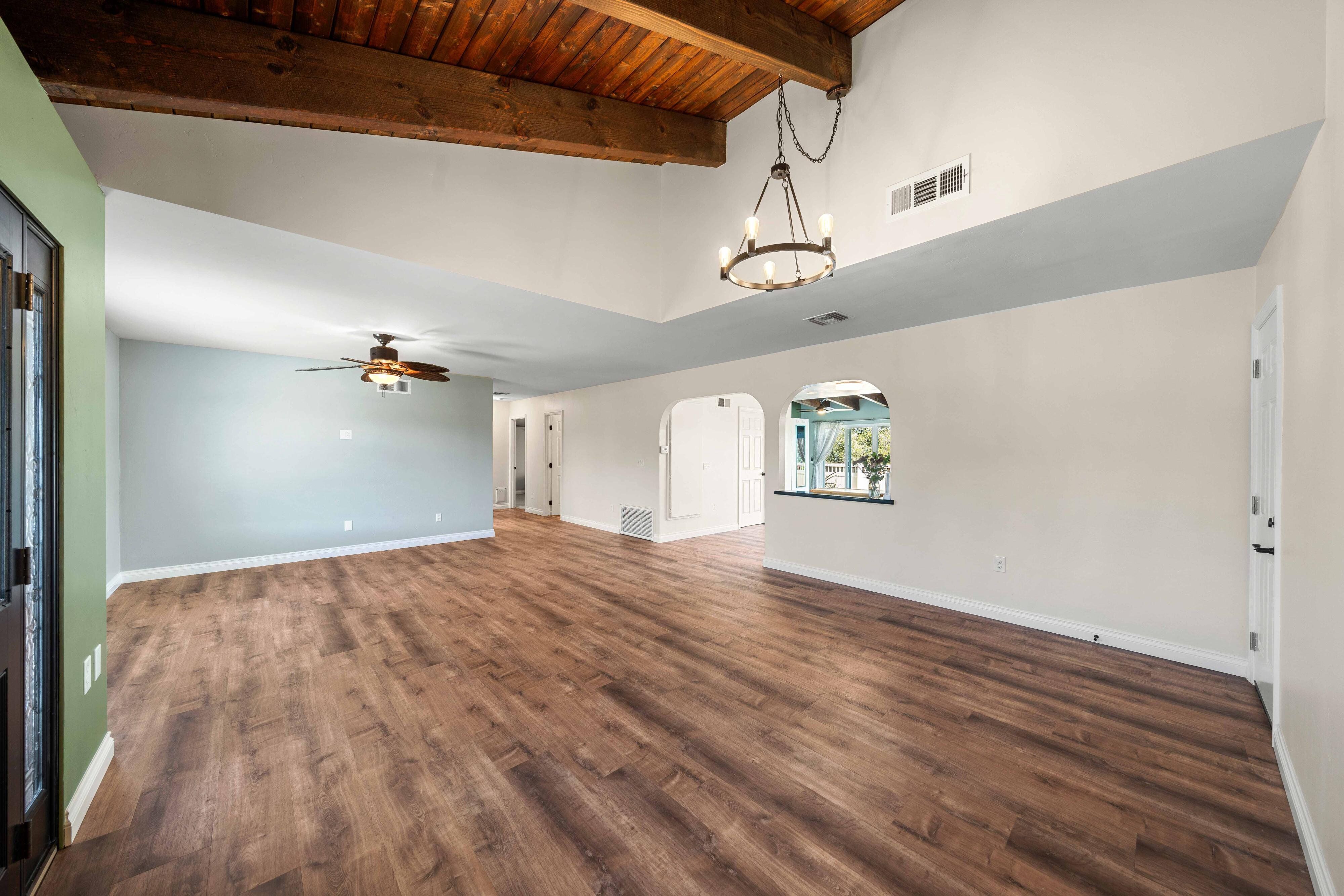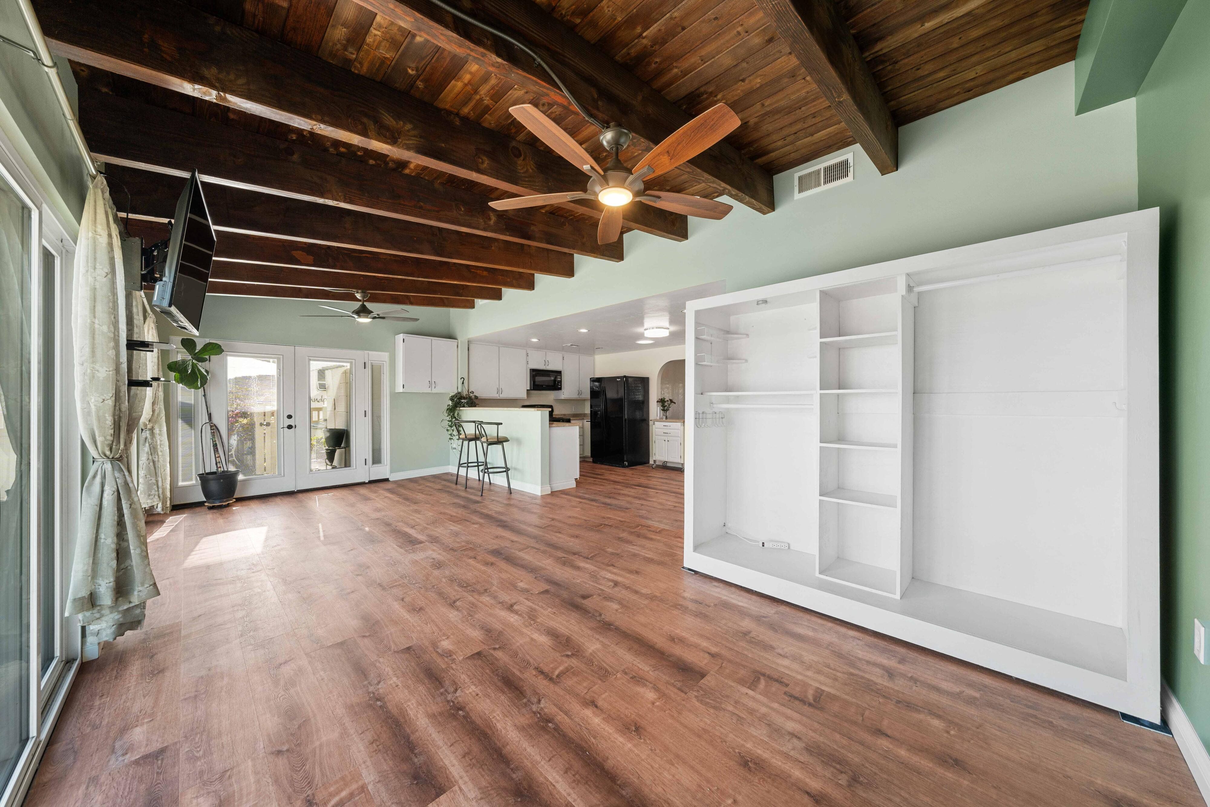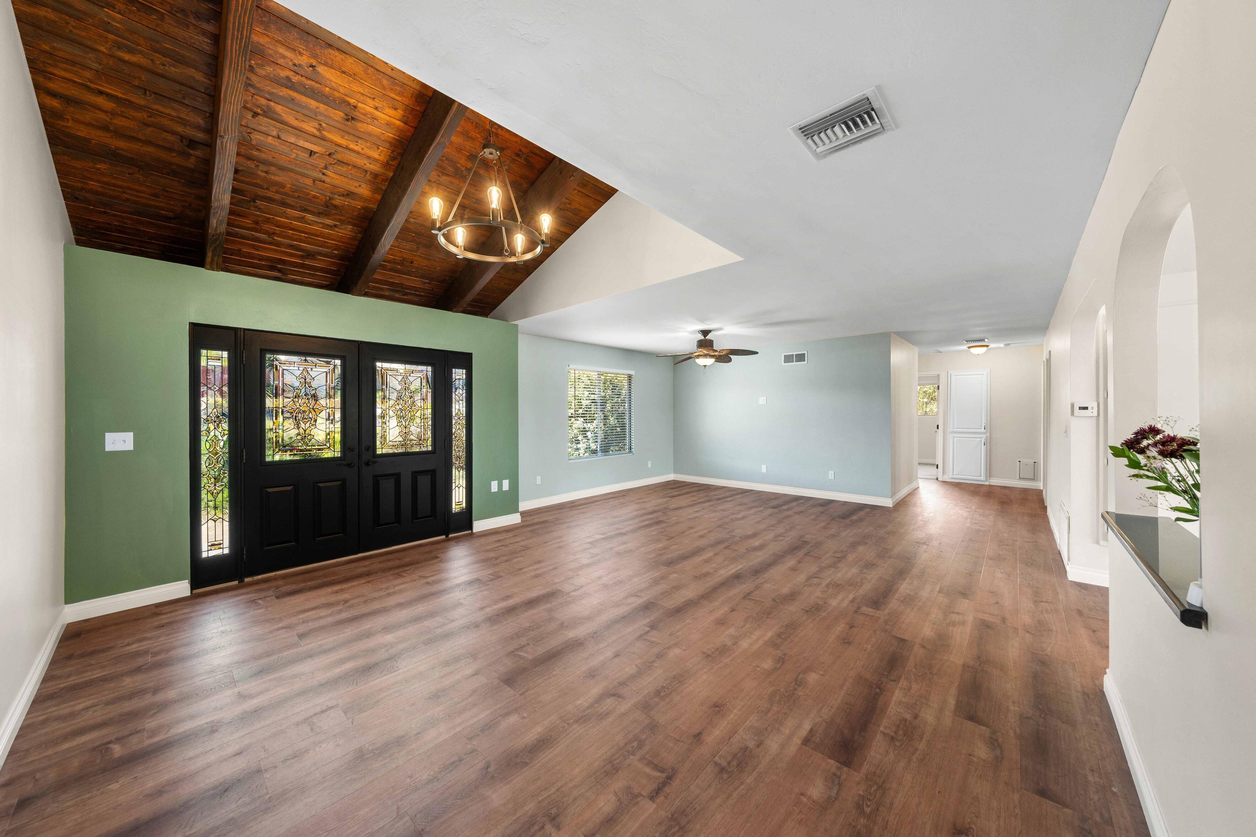 Welcome to our unique, spacious 2,200 square foot home with the most beautiful views and privacy in the neighborhood. We are part of Poway school district which is rated top 10 in the nation, within walking distance to the elementary and middle schools. We own our solar panels with a credit on our electric bill each month. We have a super spacious living area with a beamed, vaulted ceiling that opens into the kitchen and sunroom where you can see the view of the city and mountains. We have 3 standard bedrooms and 2 bonus rooms (potential bedrooms/studio) all of which are spacious with bright lighted windows. New paint inside & outside, blinds, roof and floors. The property has many fruit trees and exotic plants. We also have RV parking with full hook-ups.