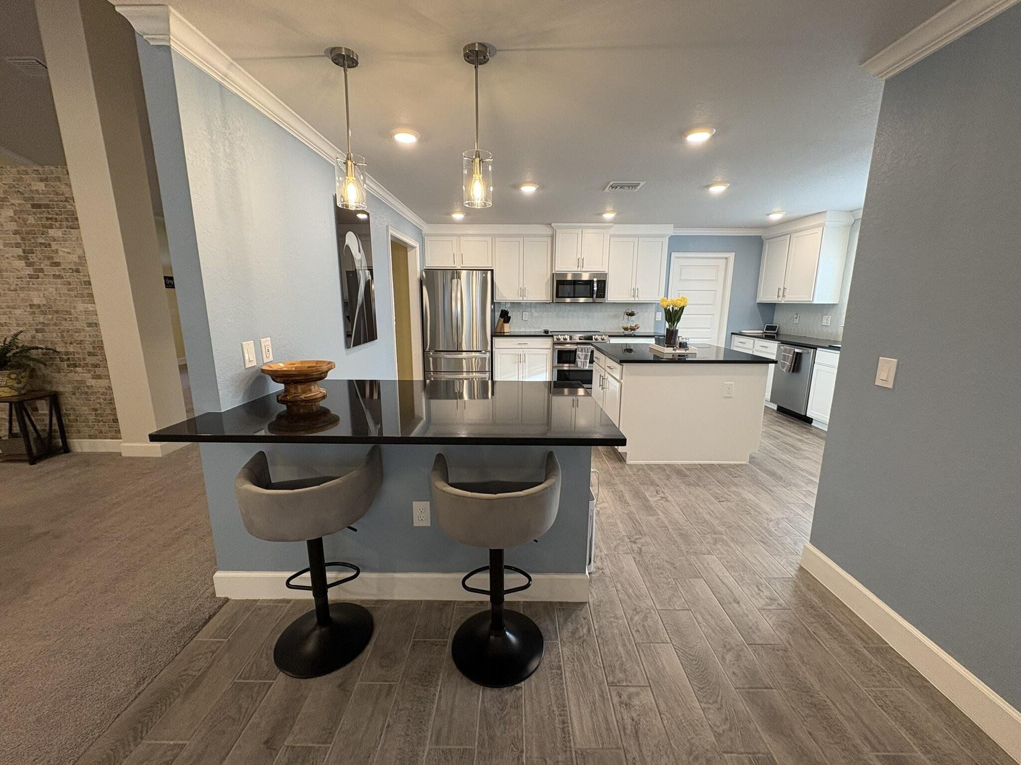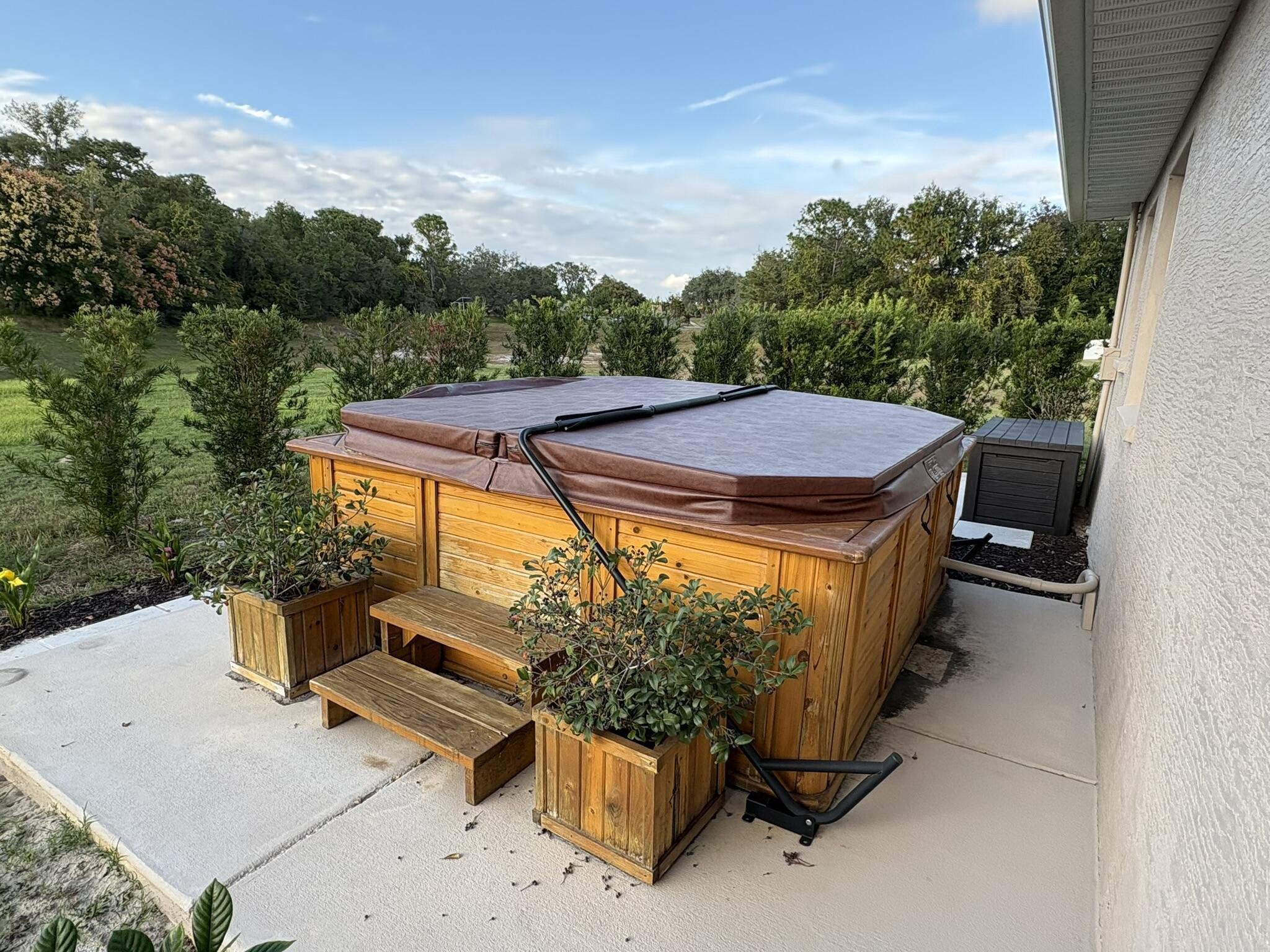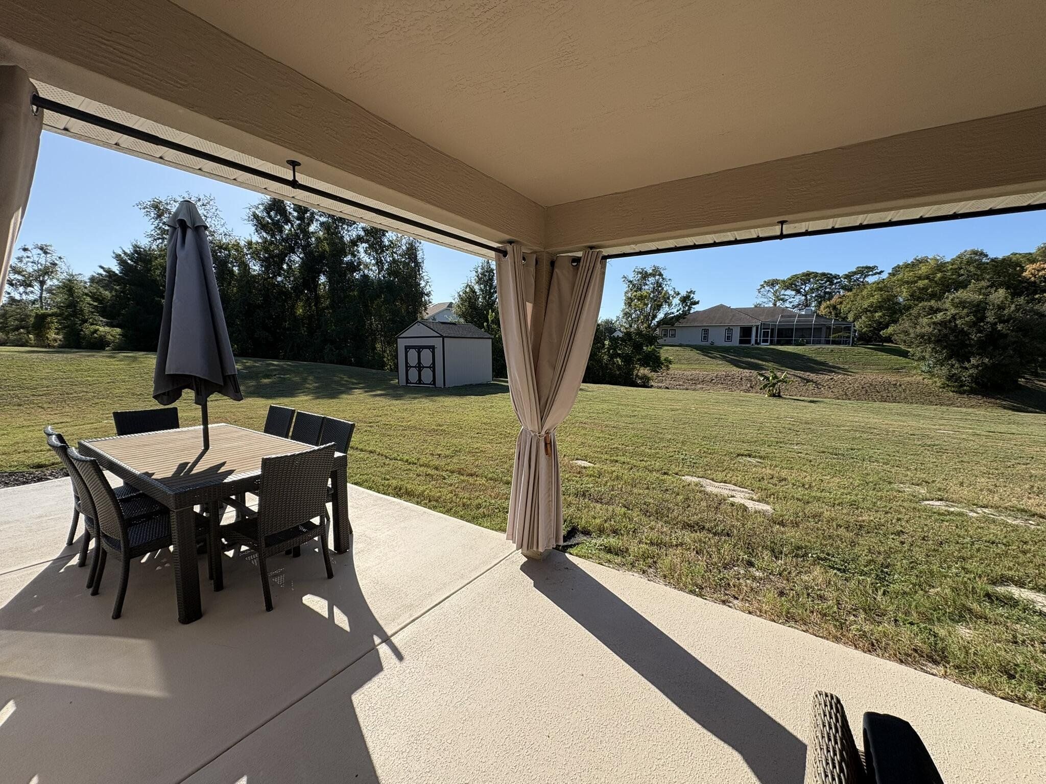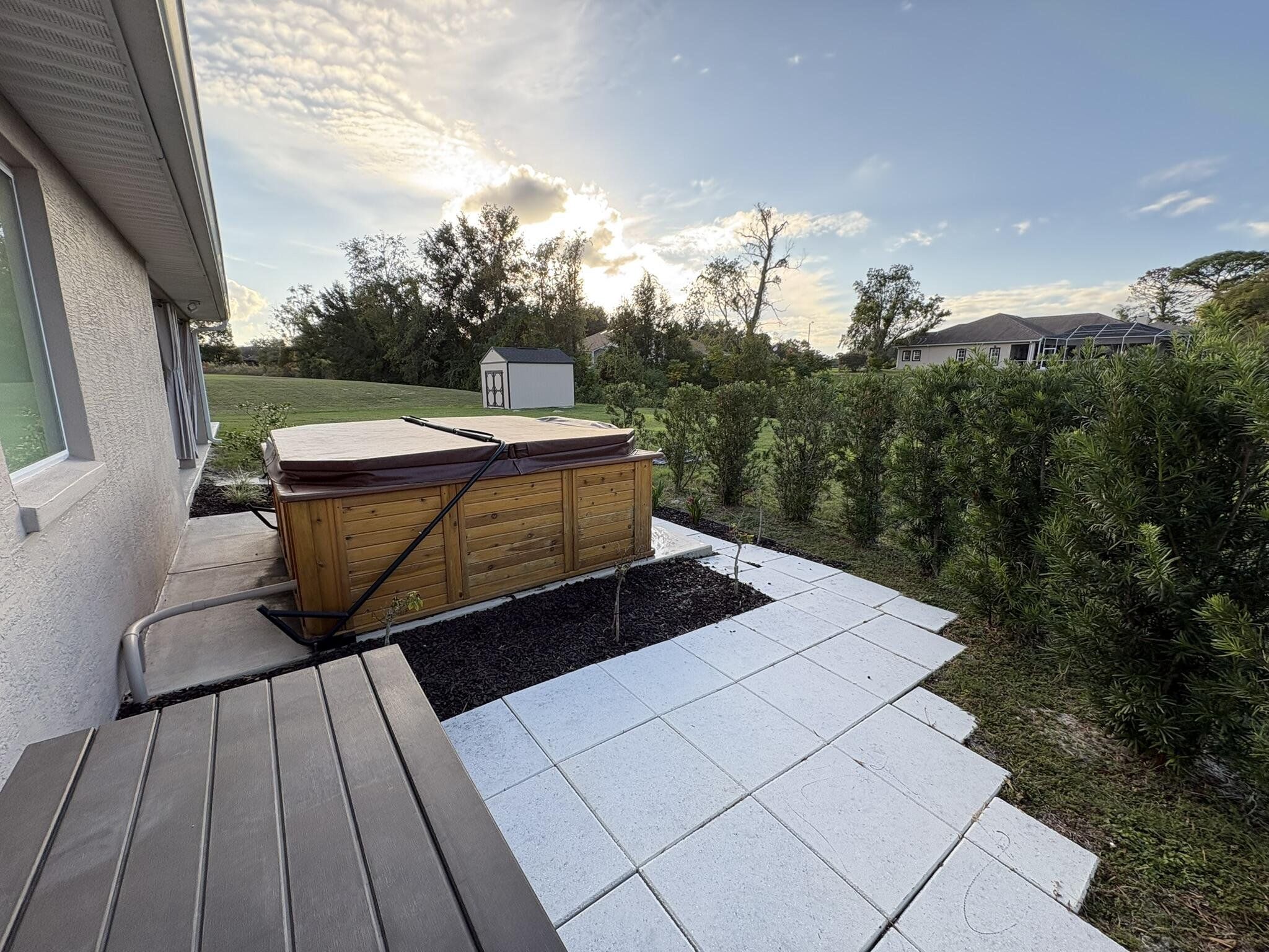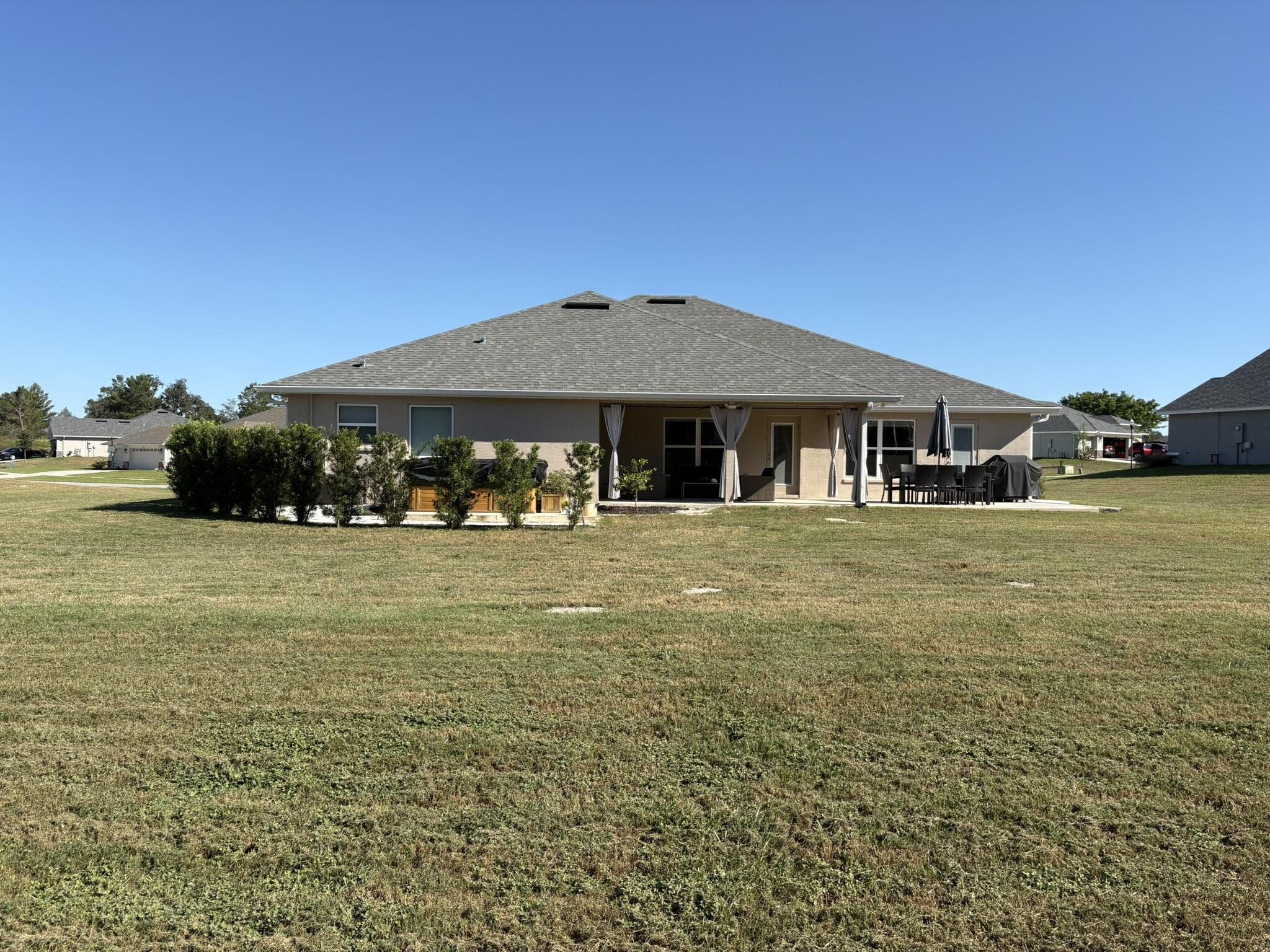 This newer four bedroom three bathroom home features three thousand square feet of bright open living on a private half acre lot. The layout is spacious and functional with high ceilings, abundant natural light, and a seamless flow between the kitchen, dining, and main living areas. The upgraded kitchen is designed for both everyday living and entertaining, featuring a large center island, granite countertops, modern shaker cabinetry, upgraded appliances, and a walk in pantry. The family room overlooks the backyard and opens to a covered patio, creating a perfect indoor outdoor connection. The primary suite is a private retreat with a spacious bedroom, upgraded spa style bathroom, walk in closets, and a modern water vapor fireplace that adds beautiful ambience. All secondary bedrooms include built in closets for excellent storage. The home also features an oversized laundry and utility room with cabinetry and a built in workspace. Outdoor living is a highlight with a covered patio, privacy curtains, and an eight person hot tub. The backyard provides peaceful views, beautiful sunsets, and a quiet setting with clear night skies. Additional features include a two car garage with pull down attic access, whole house water purification system, tankless water heater, upgraded irrigation system, powered shed, and generator wiring. Located in a quiet Spring Hill neighborhood just minutes from the Veterans Expressway and County Line Road, this home provides privacy, comfort, and convenience.