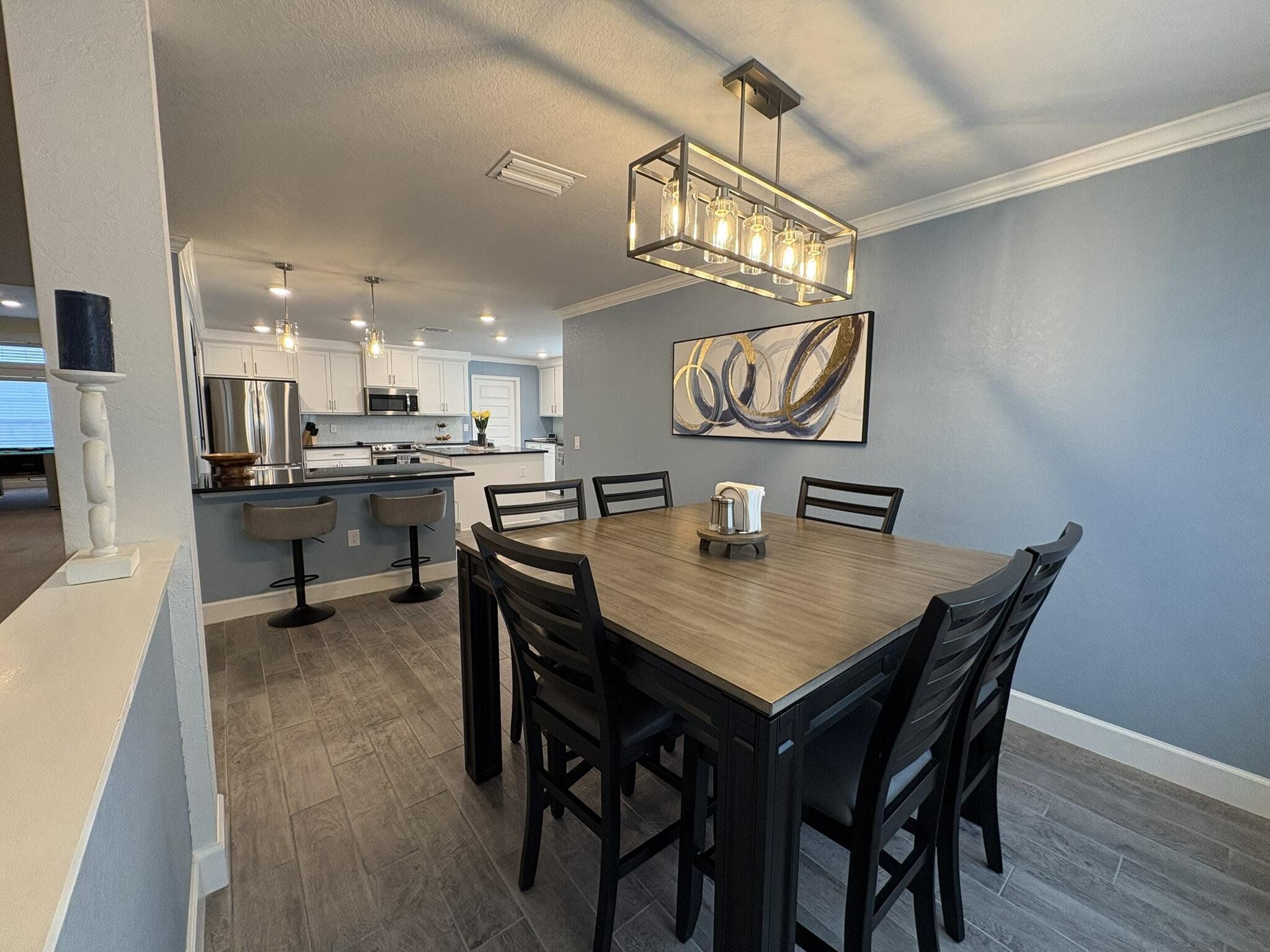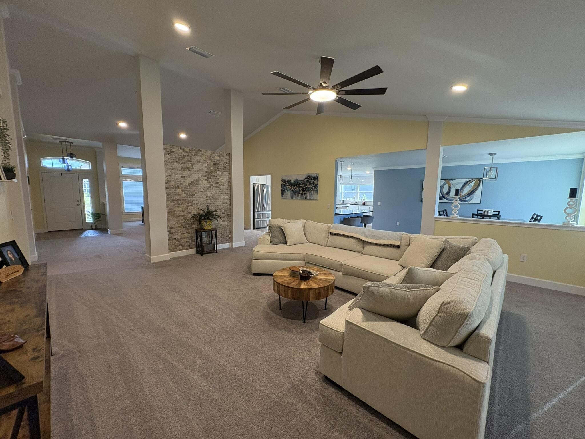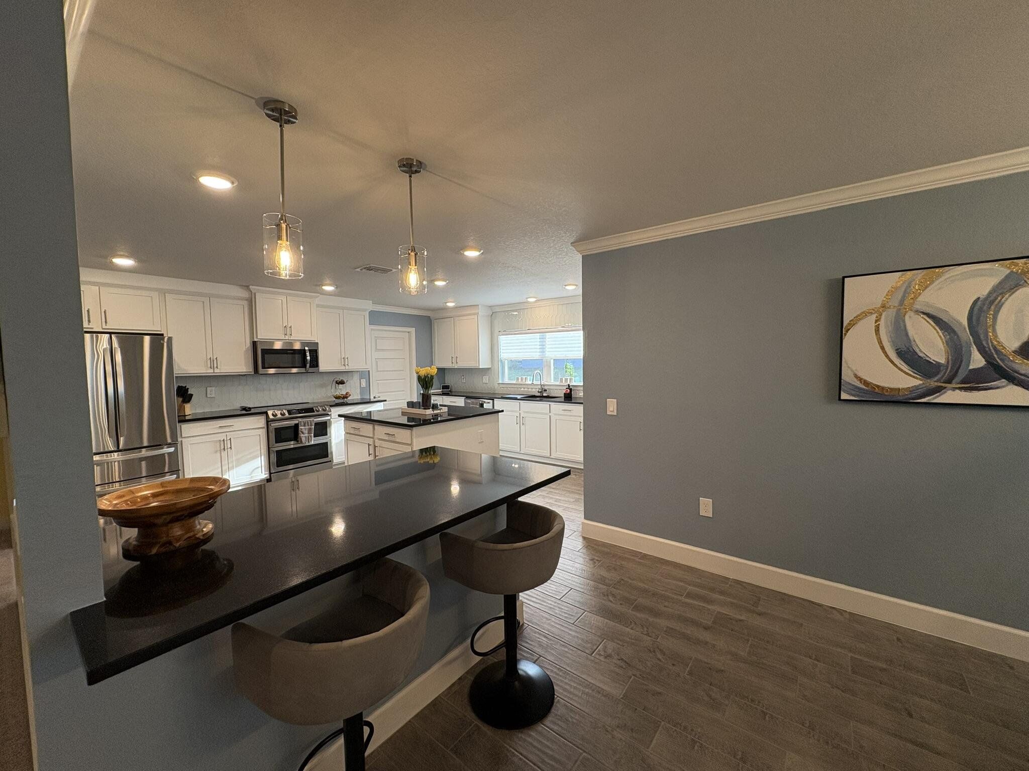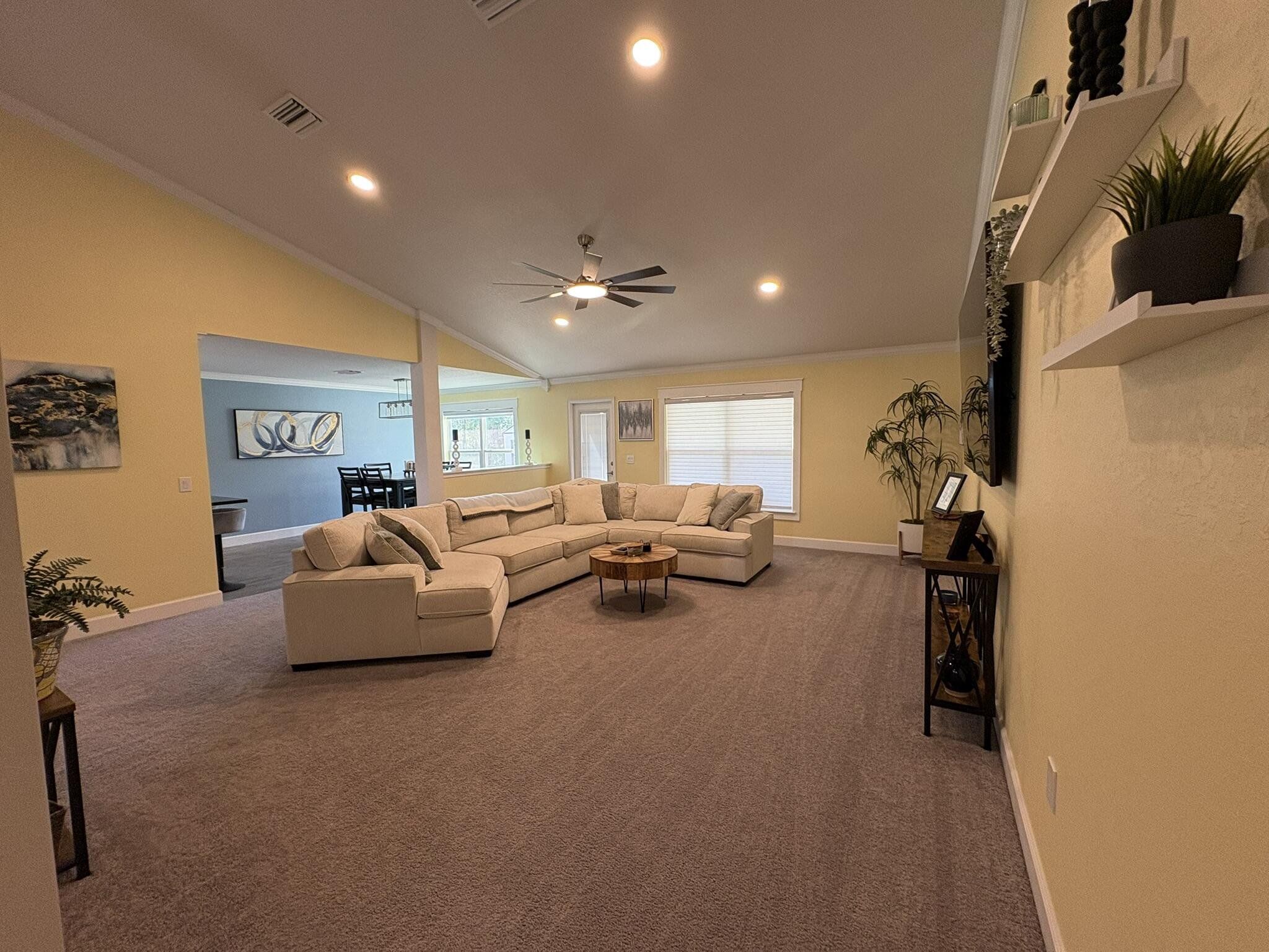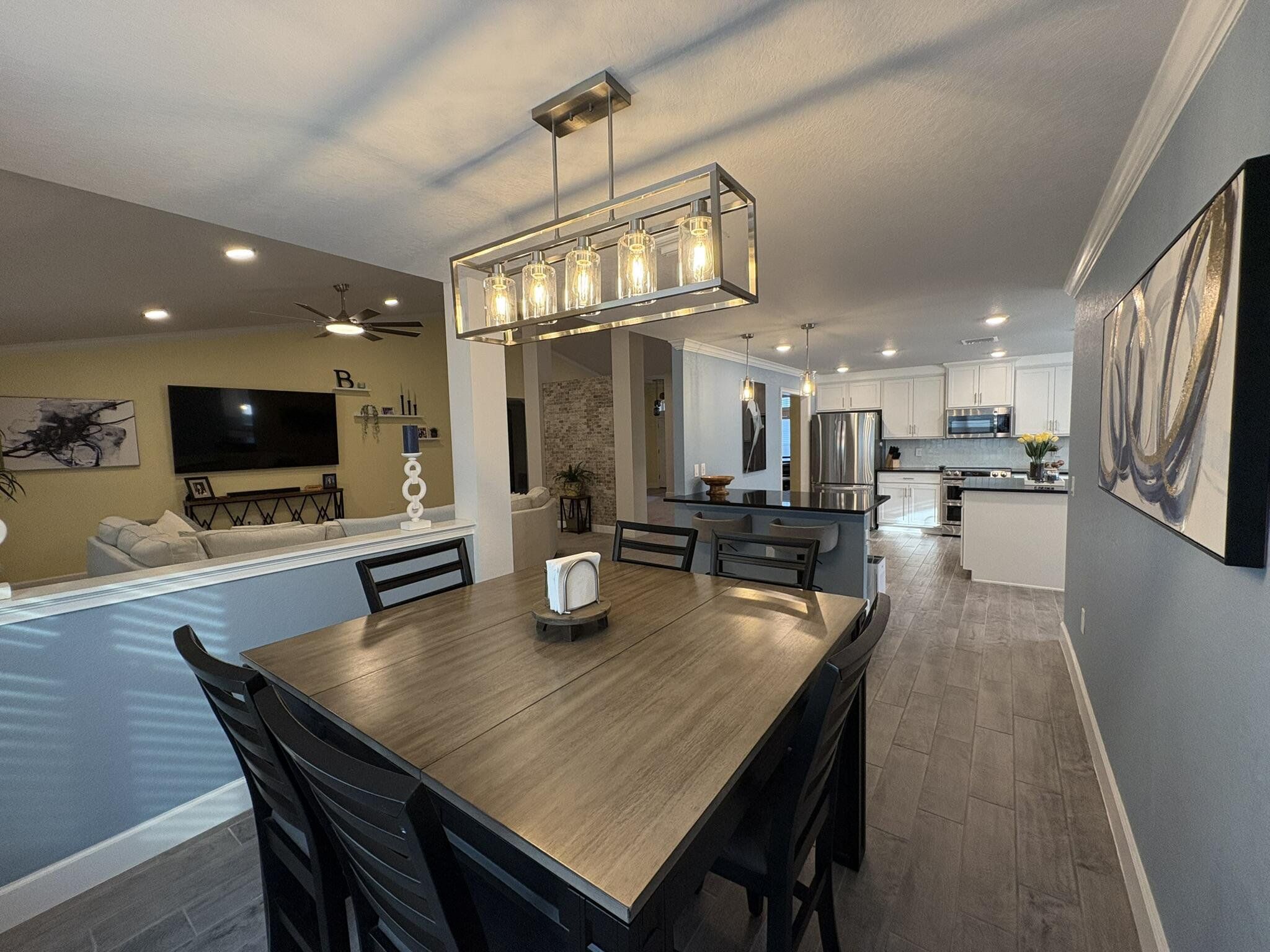 This newer four bedroom three bathroom home features three thousand square feet of bright open living on a private half acre lot. The layout is spacious and functional with high ceilings, abundant natural light, and a seamless flow between the kitchen, dining, and main living areas. The upgraded kitchen is designed for both everyday living and entertaining, featuring a large center island, granite countertops, modern shaker cabinetry, upgraded appliances, and a walk in pantry. The family room overlooks the backyard and opens to a covered patio, creating a perfect indoor outdoor connection. The primary suite is a private retreat with a spacious bedroom, upgraded spa style bathroom, walk in closets, and a modern water vapor fireplace that adds beautiful ambience. All secondary bedrooms include built in closets for excellent storage. The home also features an oversized laundry and utility room with cabinetry and a built in workspace. Outdoor living is a highlight with a covered patio, privacy curtains, and an eight person hot tub. The backyard provides peaceful views, beautiful sunsets, and a quiet setting with clear night skies. Additional features include a two car garage with pull down attic access, whole house water purification system, tankless water heater, upgraded irrigation system, powered shed, and generator wiring. Located in a quiet Spring Hill neighborhood just minutes from the Veterans Expressway and County Line Road, this home provides privacy, comfort, and convenience.