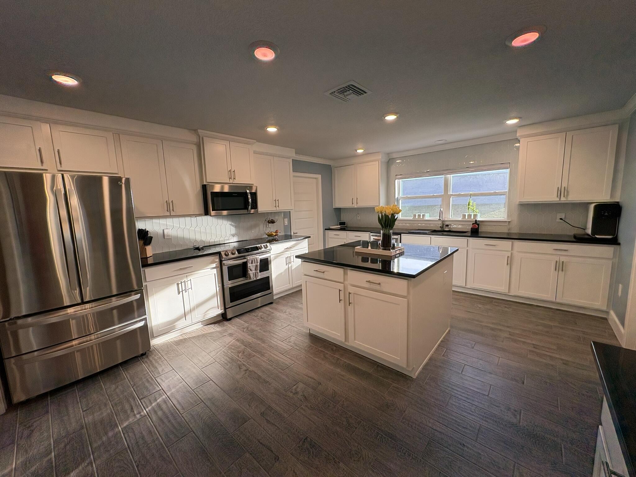 This newer four bedroom three bathroom home features three thousand square feet of bright open living on a private half acre lot. The layout is spacious and functional with high ceilings, abundant natural light, and a seamless flow between the kitchen, dining, and main living areas. The upgraded kitchen is designed for both everyday living and entertaining, featuring a large center island, granite countertops, modern shaker cabinetry, upgraded appliances, and a walk in pantry. The family room overlooks the backyard and opens to a covered patio, creating a perfect indoor outdoor connection. The primary suite is a private retreat with a spacious bedroom, upgraded spa style bathroom, walk in closets, and a modern water vapor fireplace that adds beautiful ambience. All secondary bedrooms include built in closets for excellent storage. The home also features an oversized laundry and utility room with cabinetry and a built in workspace. Outdoor living is a highlight with a covered patio, privacy curtains, and an eight person hot tub. The backyard provides peaceful views, beautiful sunsets, and a quiet setting with clear night skies. Additional features include a two car garage with pull down attic access, whole house water purification system, tankless water heater, upgraded irrigation system, powered shed, and generator wiring. Located in a quiet Spring Hill neighborhood just minutes from the Veterans Expressway and County Line Road, this home provides privacy, comfort, and convenience.