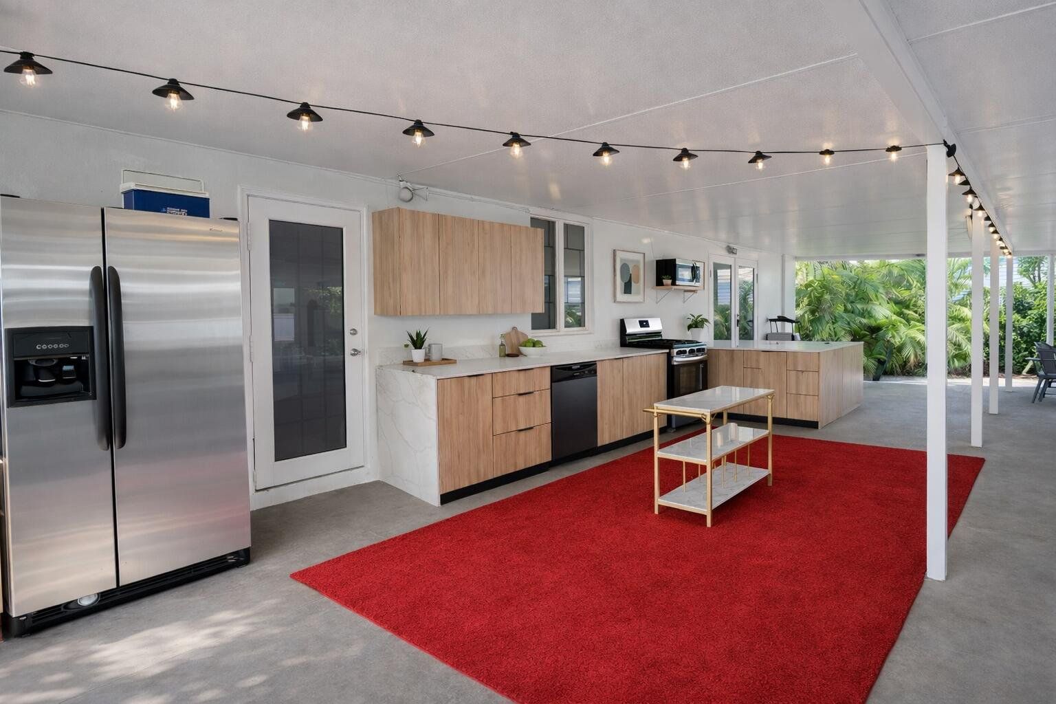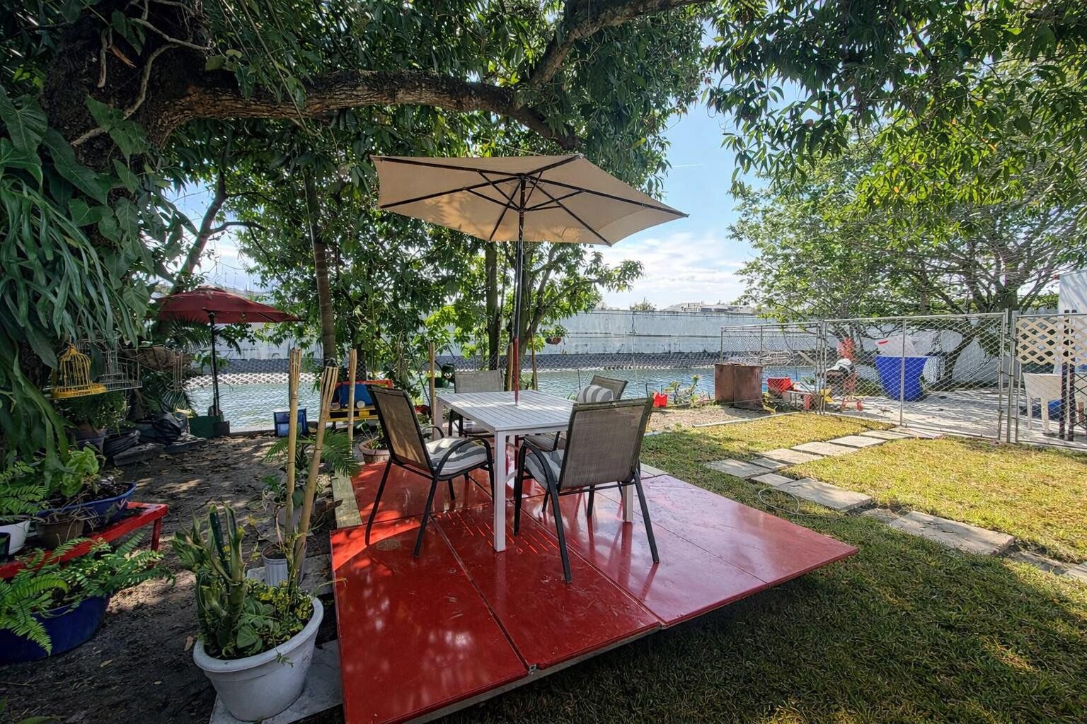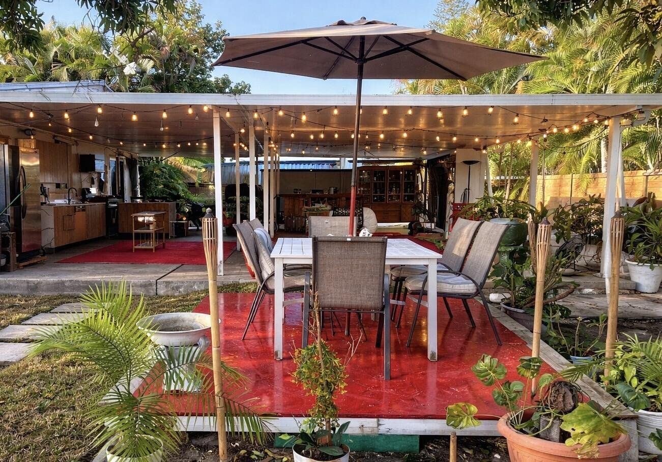 Canal-front property situated on an approx. 8,875 sq ft lot. Private retreat with resort-style outdoor living. Renovated 3-bedroom, 2-bath residence has a rare blend of privacy, outdoor entertaining, and flexible interior space providing privacy for an extended family. Buyer encouraged to conduct own due diligence regarding zoning, square foot, and intended use. Recent upgrades include metal roof, impact windows, doors, A/C system, covered terrace, privacy fencing, a custom outdoor kitchen and bar plus a detached storage structure for additional secure space. Located at the end of a quiet street with canal access, this property has a unique privacy advantage rarely found in the area, along with mature mango, plum, and coconut trees, cooling breezes, and a peaceful setting. Some photos have been virtually rendered.