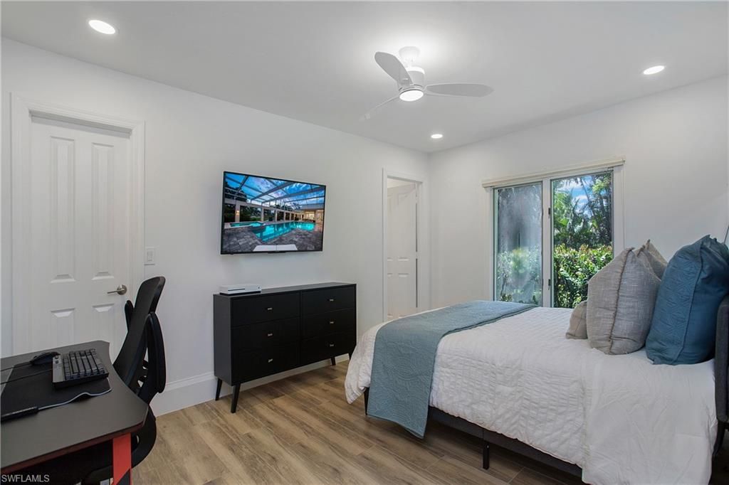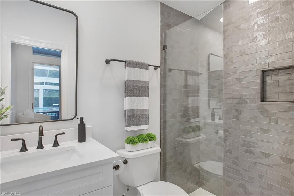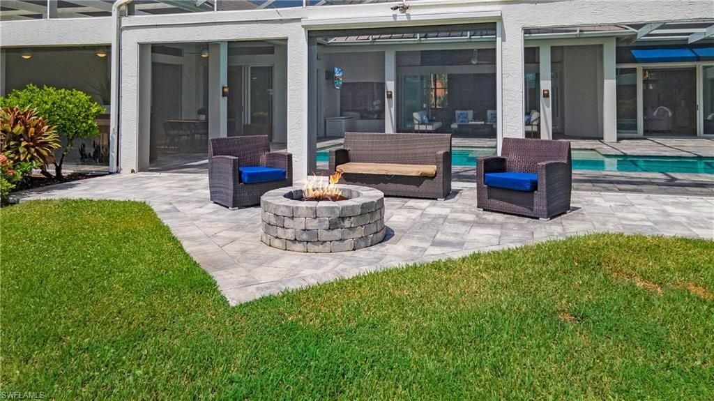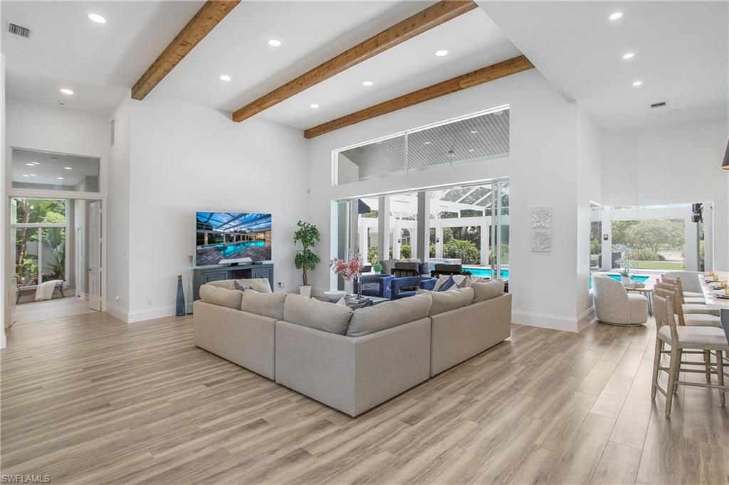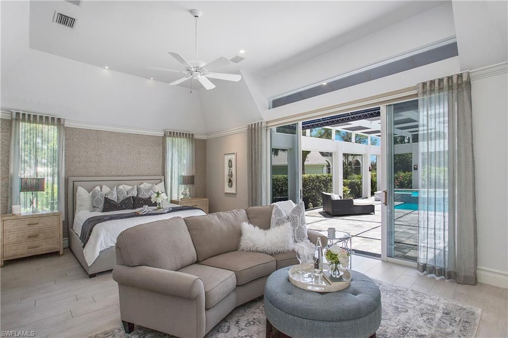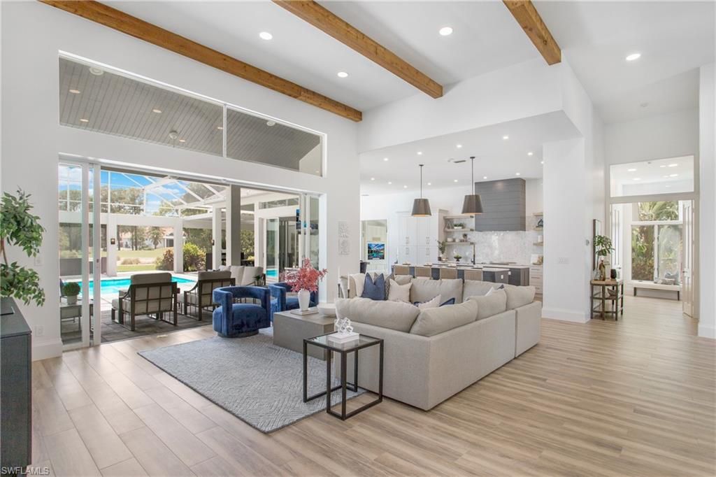 Come experience the understated luxury of this 4-bedroom, 4-bathroom Quail Creek estate home. Reimagined in a modern coastal style that perfectly complements its surroundings, this home stuns with soaring 14’ ceilings and an abundance of sliding glass pocket doors that dissolve the boundaries between indoor and outdoor living. Designed to meet the needs of today’s dynamic lifestyles, this home is the perfect balance of an open floor plan and designated spaces tailored for family engagement, productivity, and privacy. The kitchen is a chef's paradise featuring dual islands and equipped with top-of-the-line appliances, and the dining room is a space you will actually use – open to the kitchen, light and bright. Or dine al fresco on the covered lanai as the retractable pergola roof ensures a perfect meal rain or shine. A theater room, library and game room offer space to entertain, relax or work. Take advantage of the beautiful SWFL weather lounging by the pool, savoring the tranquility of panoramic golf course views on the over 1500 sf screened lanai. Marvel at spectacular sunset views and end the day gathered around the fire pit to share stories and create lasting memories. The life you’ve always imagined is possible in this beautifully renovated haven!