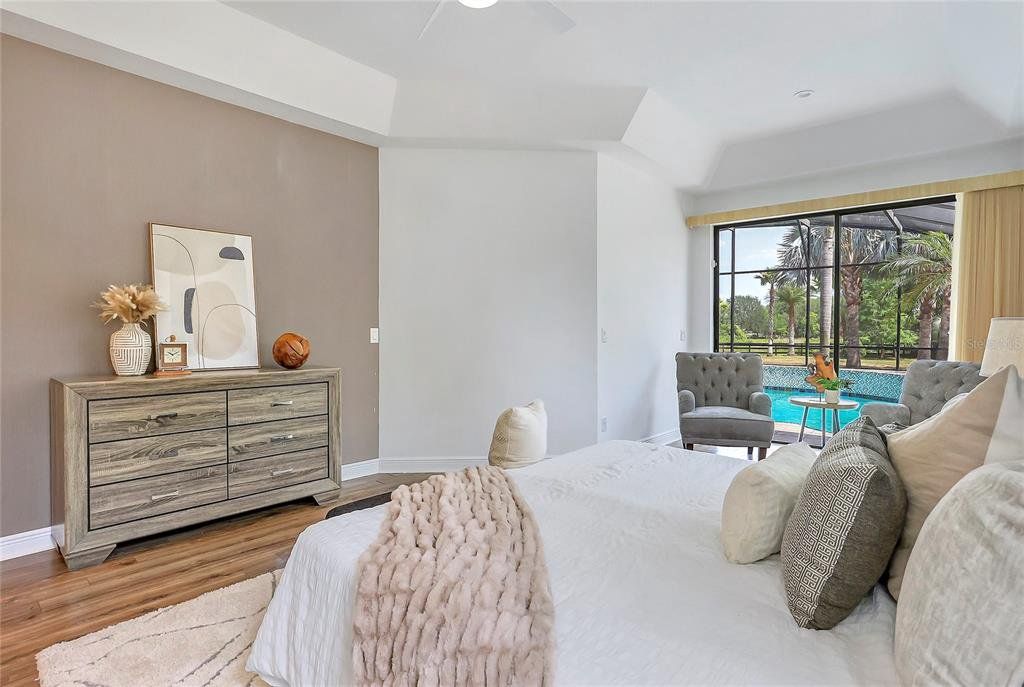 Welcome to a rare opportunity in one of Windermere’s most exquisite communities where luxury living meets farmland feel. The Farms community consists of 12 properties of one or more acres each. The community also has a horse stable that homeowners can keep horses. Nestled at the end of a cul-de-sac, this gorgeous estate offers sophistication, premium finishes and a quaint feeling throughout.As you step up to the front entrance, you are greeted by beautiful water fountain. Once inside your living room with a wood burning fireplace welcomes you to your living room on the right. Continuing your way into the house, your inviting family room awaits with an eat in kitchen island completing the scene. The gourmet kitchen is a chef’s dream, outfitted with top-of-the-line appliances and plentiful cabinetry. Retreat to the oversized owner’s suite with double walk-in closets, a luxurious master bathroom and a private sitting area overlooking the pool area. Enjoy an enclosed pool area and expansive backyard. There is also a second master suite with private bathroom and walk-in closet. At the opposite end of the family room there is a hallway leading to another full bathroom and three additional bedrooms. Located just minutes from championship golf courses, downtown Windermere, Winter Garden Village, and top-rated schools, this home offers the perfect blend of tranquility and convenience. Don’t wait, schedule your showing today!
