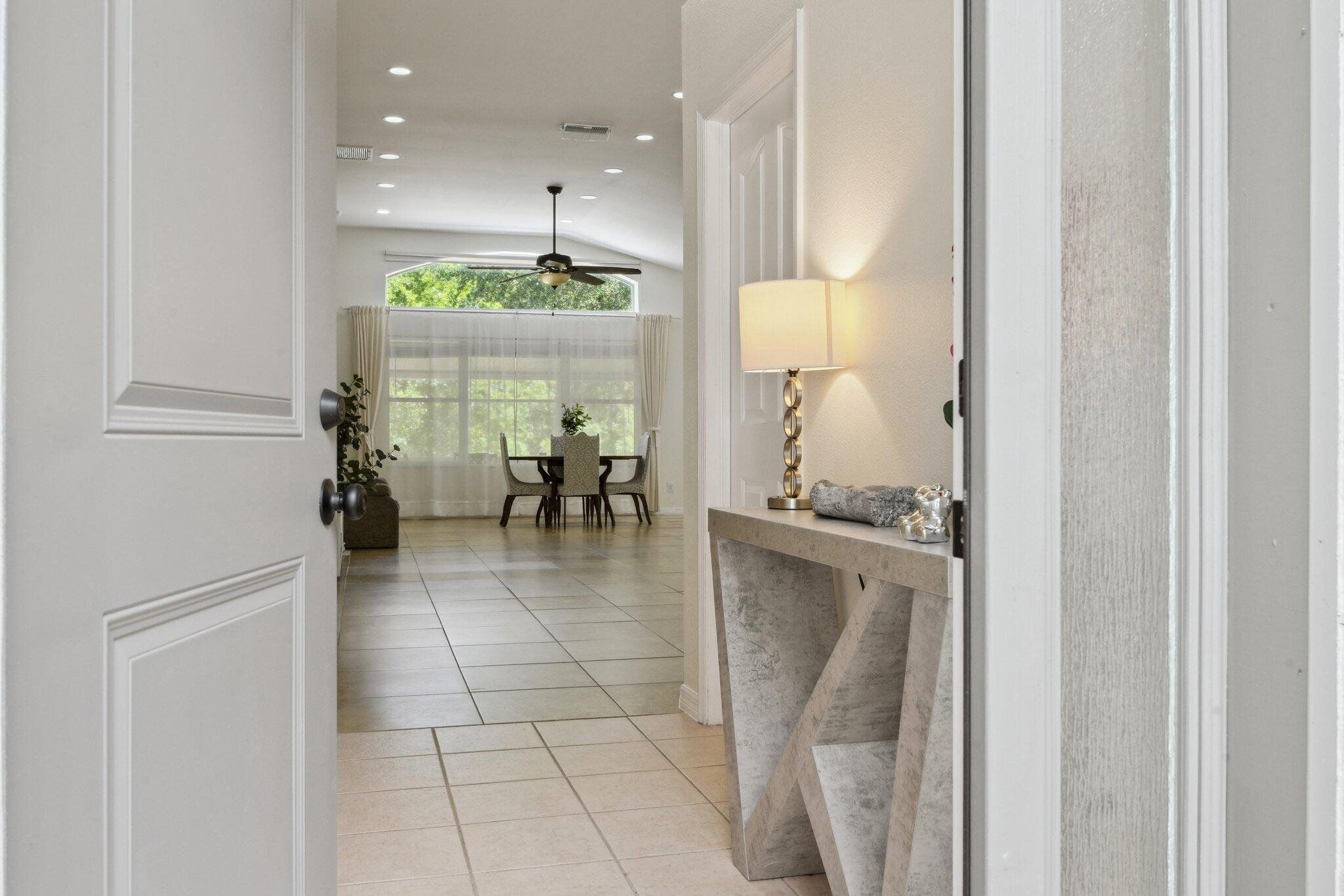 Lakefront Living in Tampa’s Fawn Lake Community Wake up to serene lake views and enjoy your morning coffee on a screened-in lanai overlooking peaceful water and conservation. Welcome to 13405 Fawn Springs Drive, a beautifully updated 4-bedroom, 2-bathroom residence located in the sought-after Fawn Lake community. Step inside and experience a bright, open interior enhanced by soaring ceilings and abundant natural light. The thoughtfully designed layout connects each living space seamlessly, while the updated kitchen stands out with modern finishes and functionality suited for both everyday living and entertaining. The primary suite serves as a private retreat, featuring a soaking tub, walk-in shower, dual vanities, and a spacious walk-in closet. Custom-fitted wardrobes extend across an entire wall, providing refined and generous storage while maintaining an open feel. Recent improvements add significant value and peace of mind. The kitchen has been renovated, and the interior and exterior were freshly painted in 2024, creating a clean and contemporary aesthetic. Additional updates include a new roof (2023), a newer Carrier A/C system, and a 2016 water heater. A whole-home water softener and filtration system enhances water quality throughout. Hurricane window protection is also installed, providing added security during storm season. The home is equipped with modern technology upgrades that enhance convenience and efficiency. Outside, the screened lanai overlooks a tranquil lake and conservation area—ensuring privacy with no rear neighbors and uninterrupted natural views. Conveniently located just minutes from Veterans Expressway, Citrus Park Mall, highly rated schools, dining, shopping, and the scenic Upper Tampa Bay Trail, the property combines a peaceful setting with excellent accessibility. Residents of Fawn Lake enjoy access to a community pool, playground, and scenic walking paths surrounded by lakes and mature landscaping. A refined lakefront residence in one of Tampa’s most desirable communities.