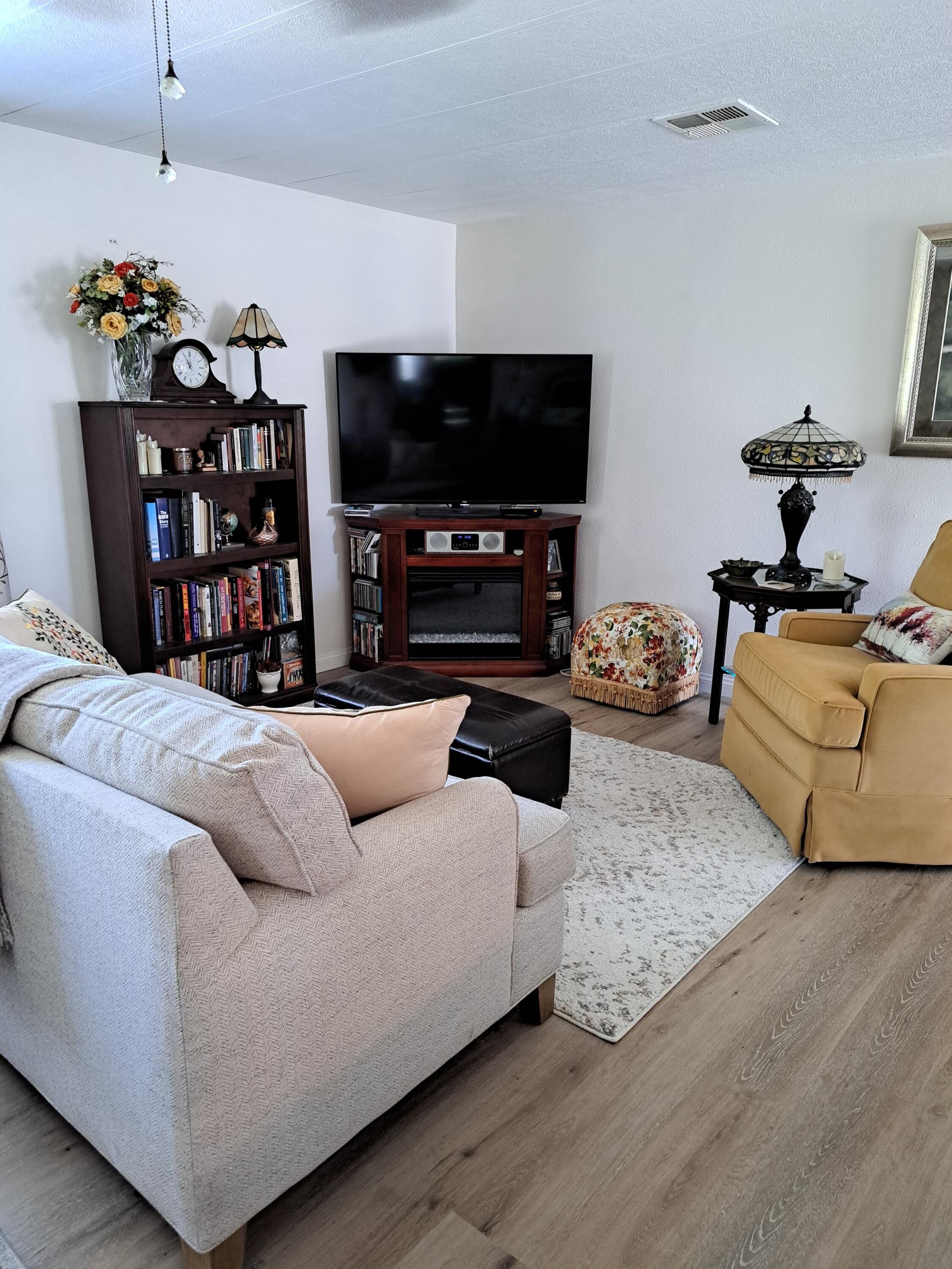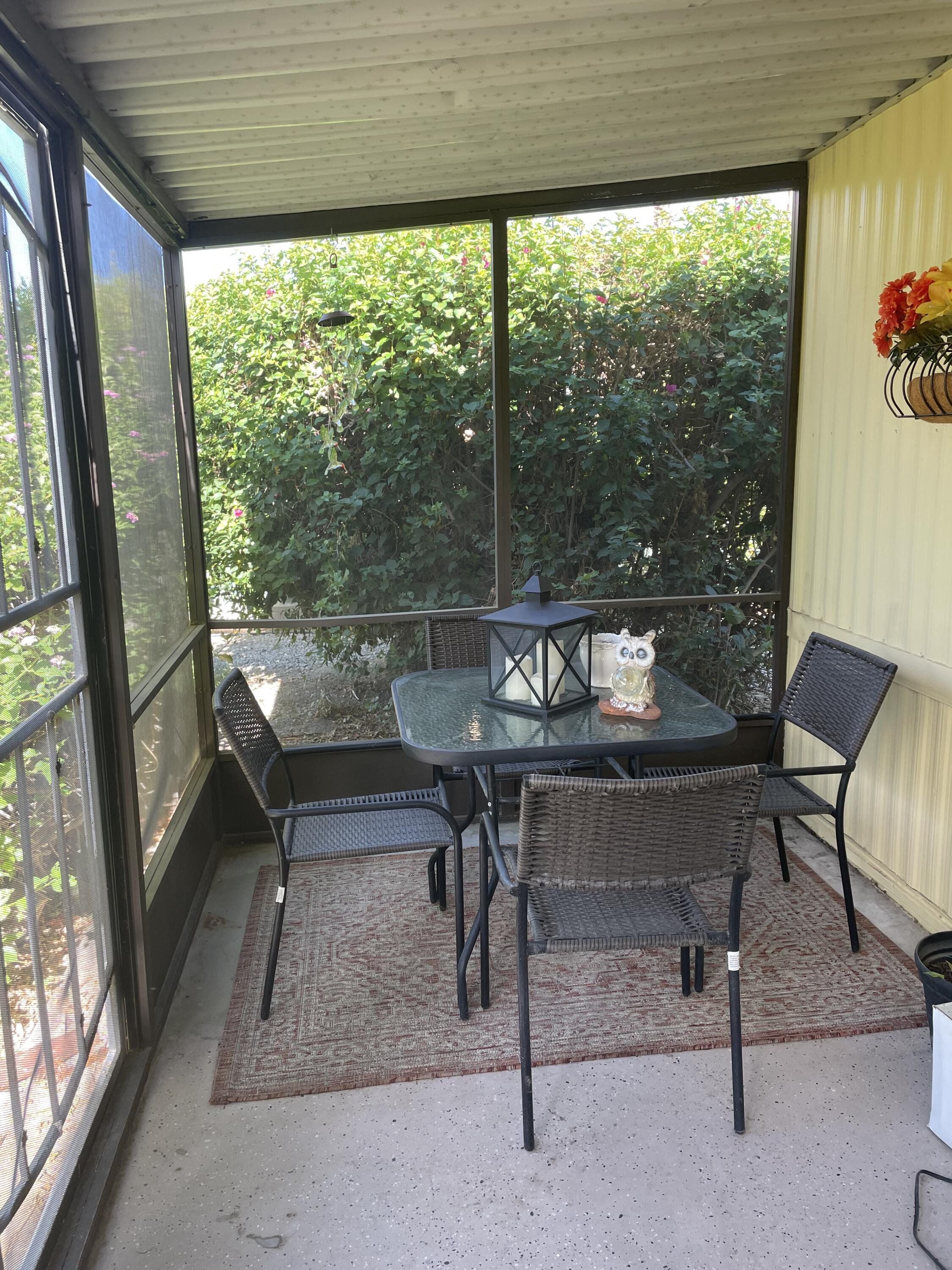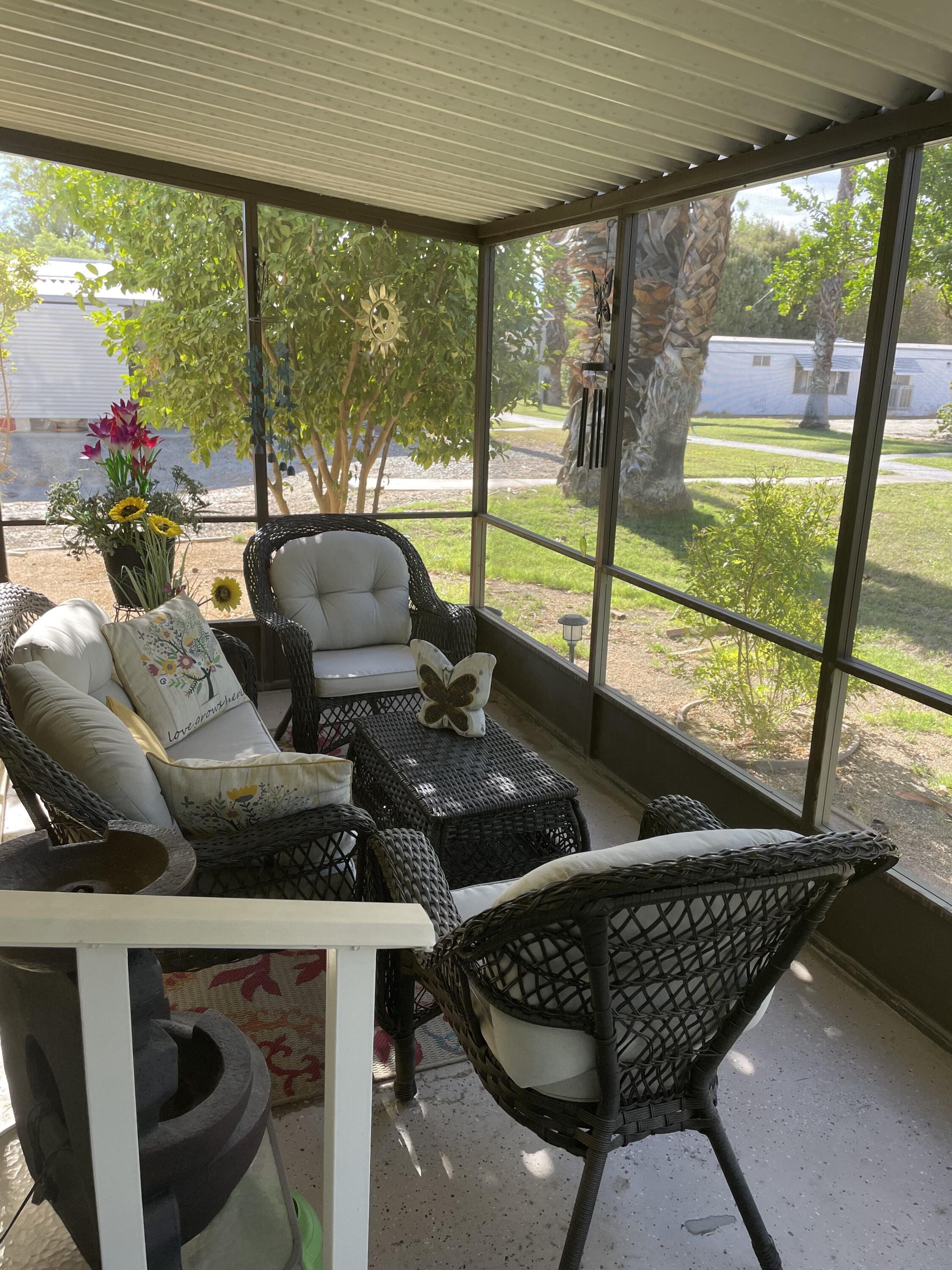 This property is a 2 Bedroom/1.75 Bath with a Den. Great location near restaurants and shopping. This home was fully updated between 2022 and 2025. All windows (with sliding screens) replaced. All flooring and subflooring replaced, bathrooms remodeled with custom soaking bath tub and kitchen has been updated, all new appliances. House leveled, yard and fencing installed for pet friendly living. Porch completely rescreened, new air conditioning with eco friendly thermostat. Shed replaced. New mirrored doors, fans and lighting. Painted inside and out. This park has wonderful walking paths with lots of citrus trees to pick from. Also two pools and a hot tub. Park fees include sewer, water and trash.