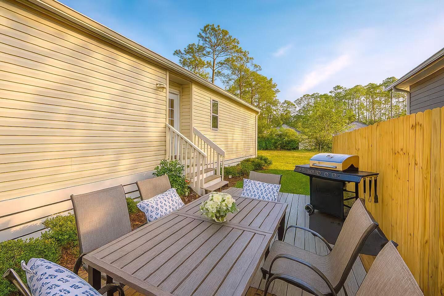 INCOME-GENERATING HOME - TURNKEY - NO HOA Located in Santa Rosa Beach just about 7 minutes from the ocean and roughly 2 minutes from Cessna Landing on the bay, this updated 3BR/2BA coastal home combines strong income potential with an easy, ready-to-use setup. The street is quiet and newer, with tall pines directly across from the property and no homes in front, creating a private, relaxed, wooded feel while still being close to 30A beaches, dining, and shops. Built in 2019, the home features an open living / dining / kitchen layout, bright neutral interior, modern décor, durable flooring, a large kitchen island, and newer appliances and TVs. Freshly painted front porch and rear deck extend the living space outdoors. Outside, the 0.14-acre lot is fully enclosed with a new full privacy fence, a new BBQ deck, and an outdoor dining area, plus driveway parking for multiple vehicles. The property is being sold fully furnished and equipped, including furniture, kitchenware, linens, outdoor furniture, and many household supplies, so it is ready for immediate use after closing. It works well as a primary residence, second home, or continued furnished rental. The home is currently used as a furnished rental with bookings in place into the first quarter, so income can continue from day one after closing for buyers who choose to maintain rental use. Existing cleaning, lawn, and local service contacts can be shared if requested. Systems include central HVAC, a Wi-Fi–enabled thermostat and an exterior camera for convenient monitoring. Additional property details, rental history, income information, inventory list, and virtual tour can be provided upon request.