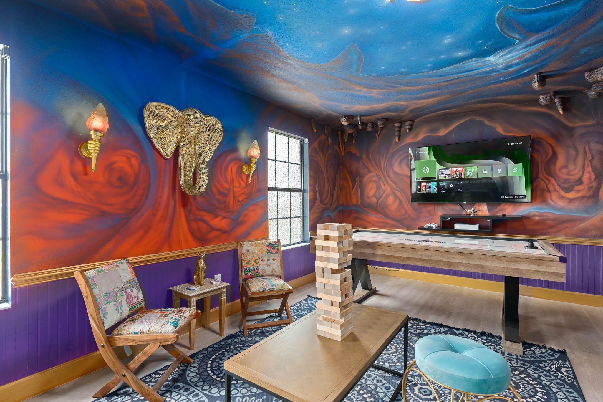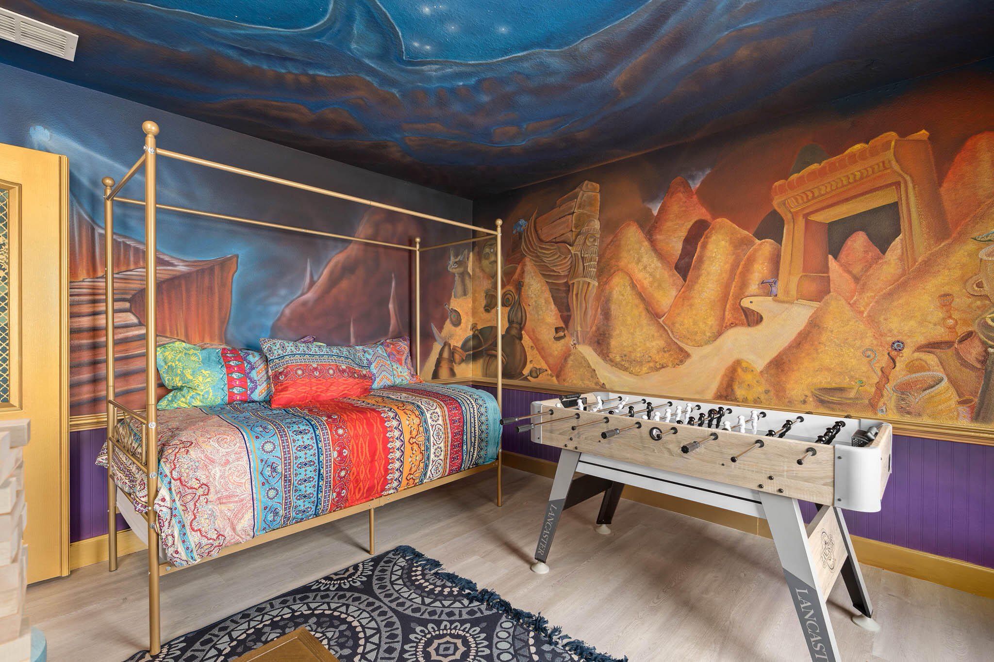 Welcome to the Fire & Ice Castle, a beautifully remodeled 8-bedroom, 5-bathroom home in the sought-after Champions Gate resort community. Just 12 miles from Walt Disney World, this fully furnished property stands out with custom Frozen and Aladdin themed rooms, a private pool, and a custom home theater, perfect for unforgettable experiences. This house comes completely turnkey, includes everything you see! Designed with both comfort and entertainment in mind, this home features spacious living areas, a modern kitchen, and stylish finishes throughout. Themed bedrooms delight kids and families, while the layout easily accommodates large groups. Enjoy resort-style amenities including a water park with lazy river and water slide, clubhouse with fitness center, game room, movie theater, tiki bar, tennis courts, sand volleyball, and even a 36-hole championship golf course. If you're looking for a high-performing investment, this property delivers. Last year, the home generated $123k+ in gross rentals with a strong booking history. Don’t miss this turnkey opportunity in one of Orlando’s top rental communities.