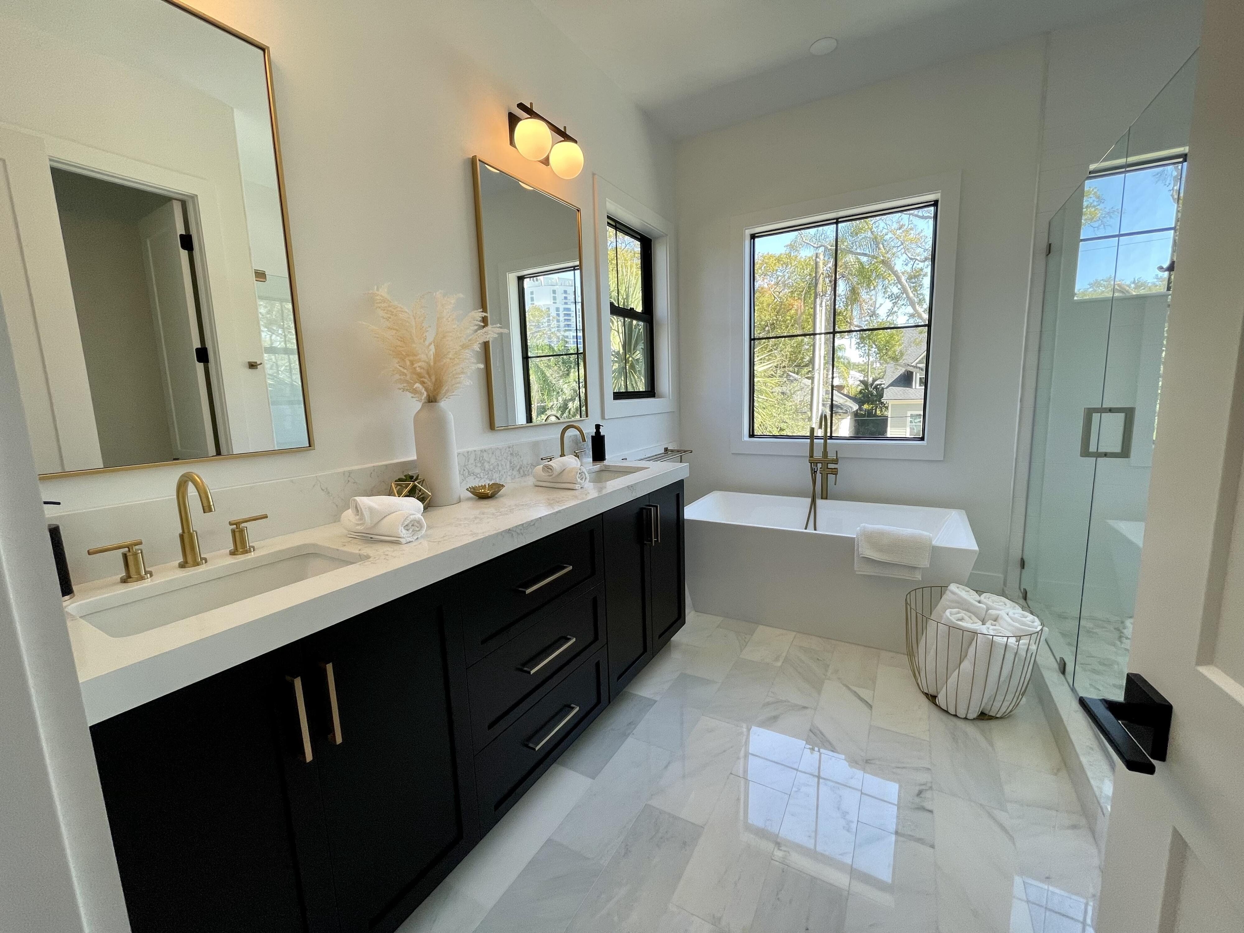 NEW CONSTRUCTION Completed 2023. Upscale Modern Farmhouse townhome in highly desired South Tampa neighborhood. Walking distance to Bayshore Boulevard, Howard Ave and Hyde Park Village. Home contains 4 bedrooms, an office, and 3.5 baths. Highlights: Custom floor plan to maximize livable space, natural light throughout, hardwood floors throughout, quartz counters throughout, floor to ceiling kitchen cabinets, GE Monogram appliances, gas fireplace, large covered back patio with generous green space (plumbed for outdoor kitchen and TV), oversized impact windows, dry bar with wine cooler, stand alone tub in master bath, 2 walk in closets in master, pot filler over gas range, 10 ft ceilings on both level.