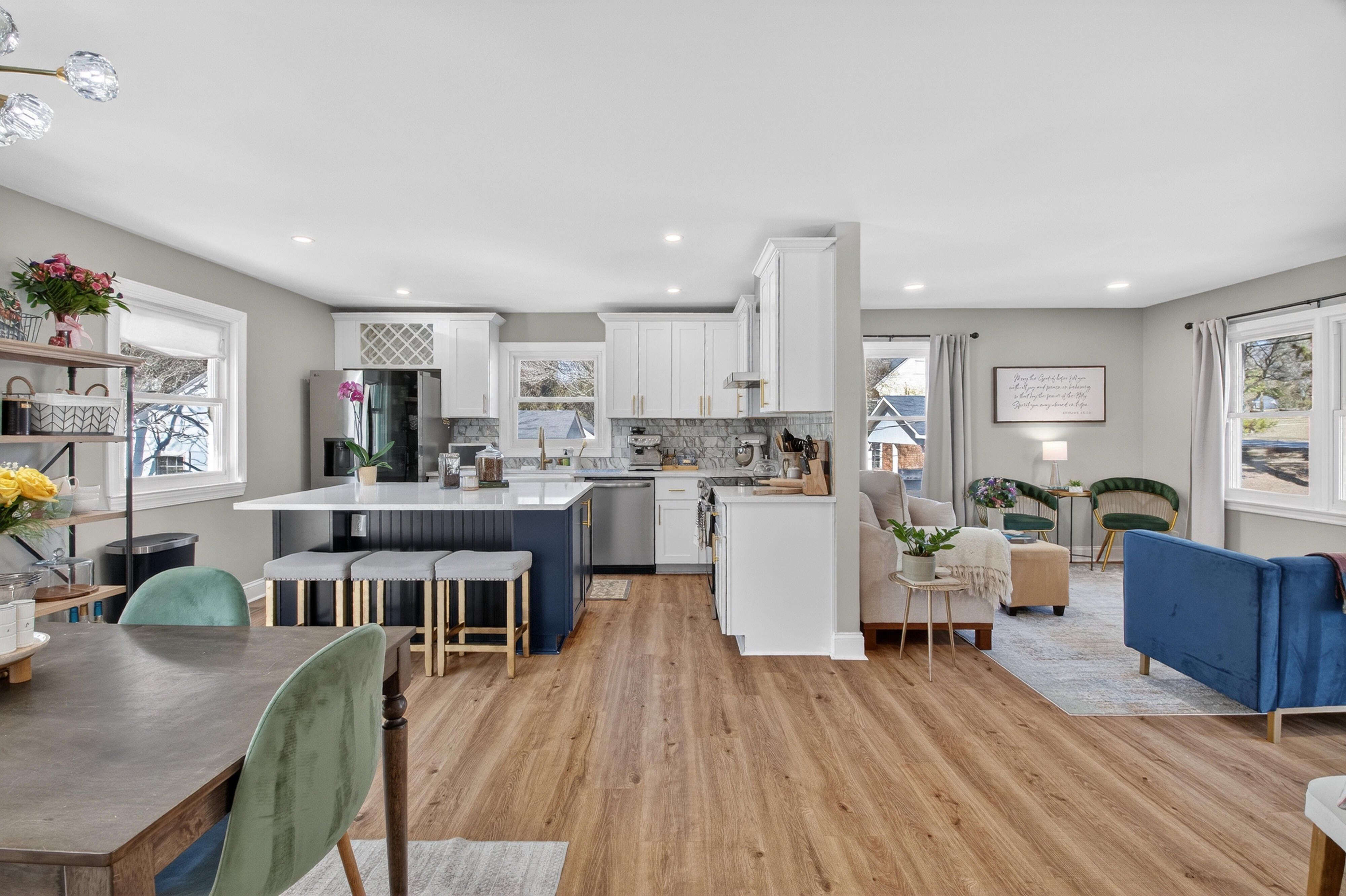 Seller relocating! This stunning home was fully renovated in 2024 and delivers modern luxury throughout. Enjoy quartz countertops, a designer kitchen backsplash, gorgeous tilework in all three full bathrooms, and luxury vinyl plank flooring across the entire home. Located in the highly sought-after Ardmore neighborhood, this home has unbeatable convenience—just minutes from Novant Health, Wake Forest Baptist Hospital, and popular shopping and dining, including Trader Joe’s. Three full bathrooms in Ardmore is a rare find, and the oversized concrete driveway makes parking easy. Pull around back to access the one-car garage for added convenience. Buyer’s agents welcome! Move-in ready, beautifully updated, and perfectly located—this is your chance to own a fabulous Ardmore home.