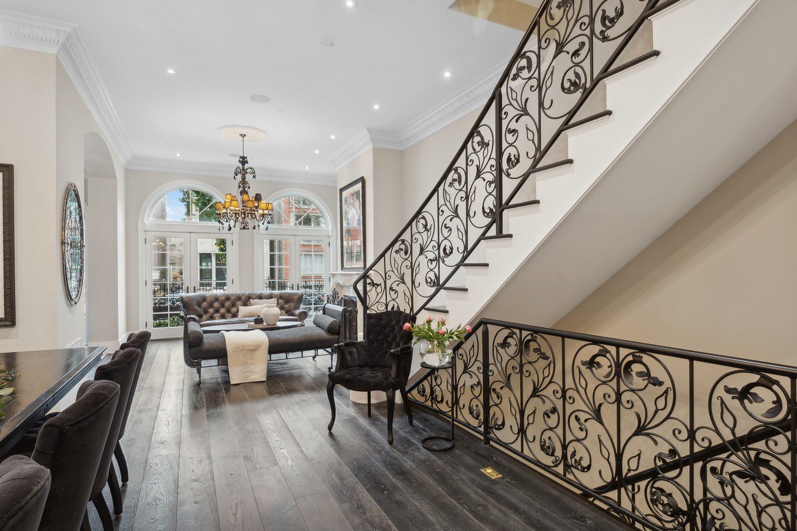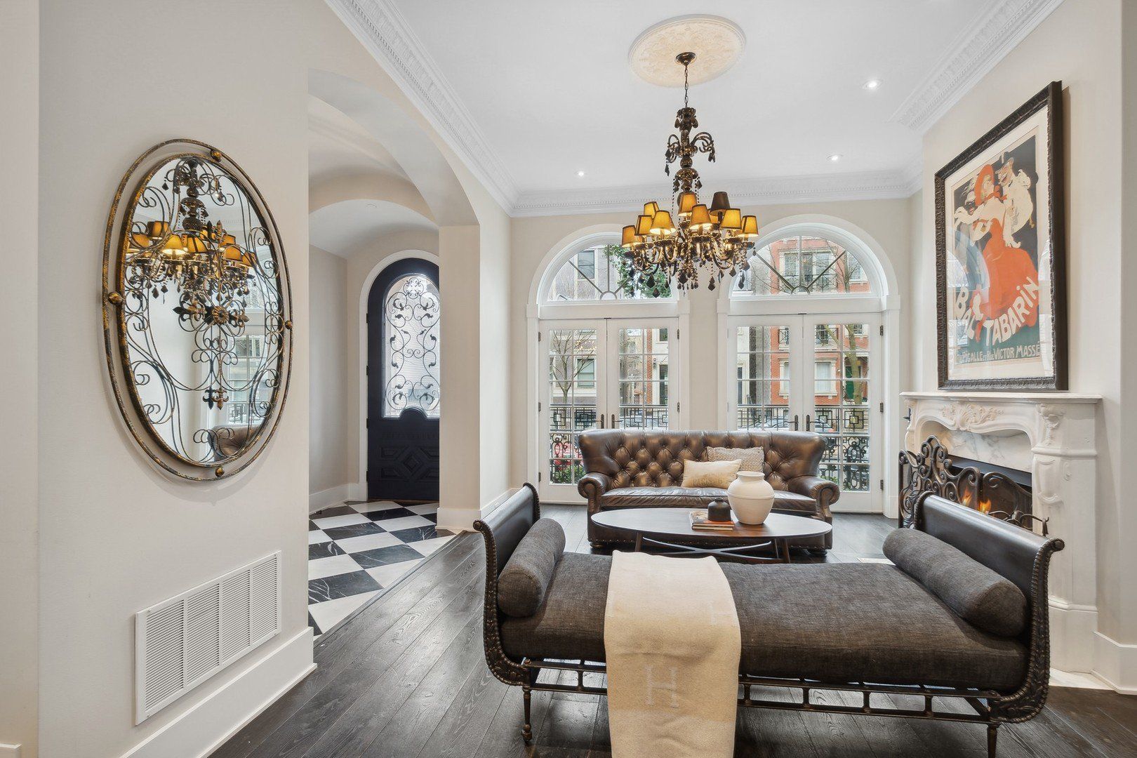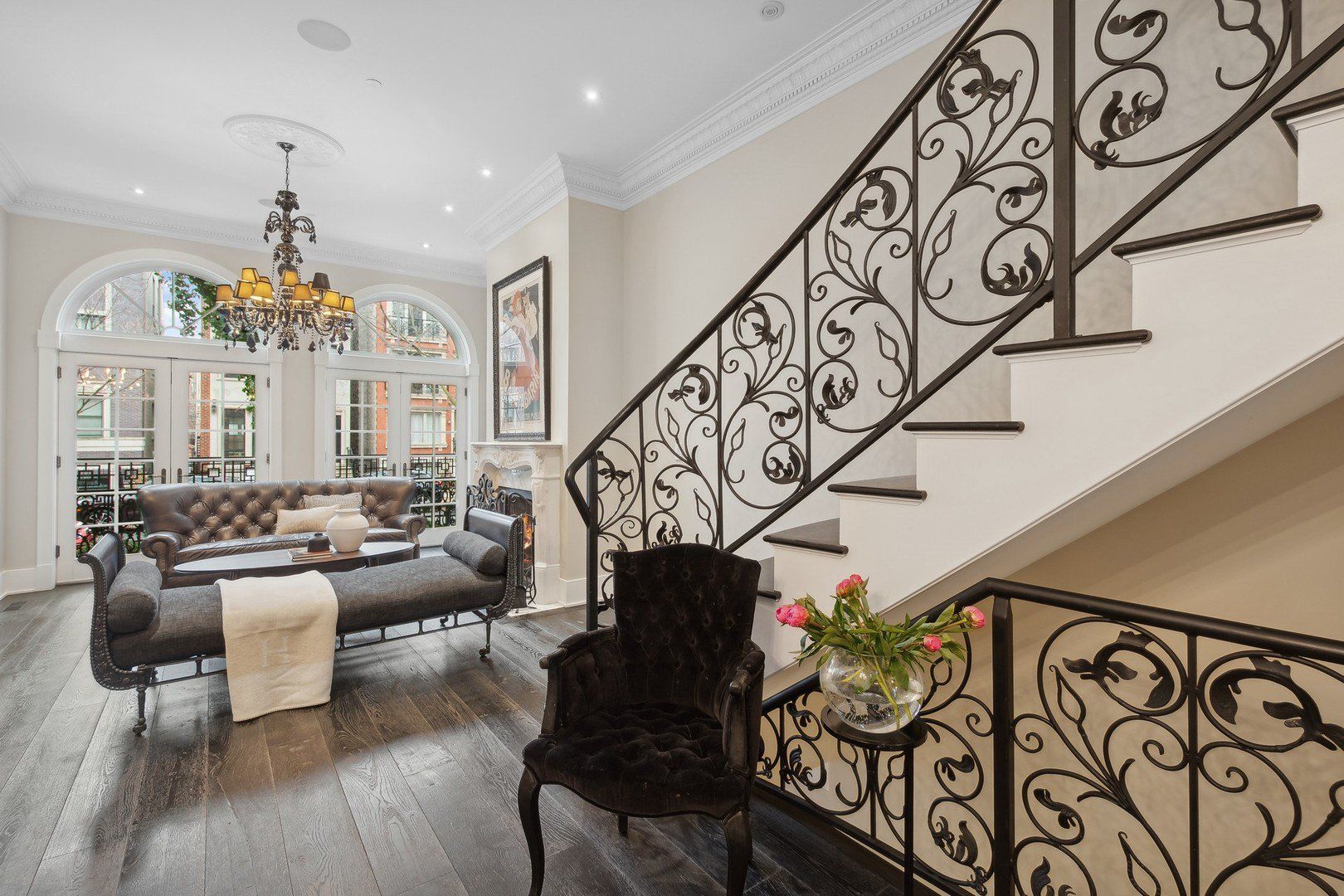 Welcome to one of Old Town's finest homes built on and oversized lot and surrounded by mature gardens of Boxwood, Limelight Hydrangea and Thorndale Ivy. Enter through its custom iron gates and be ready to fall in love. This home views like a story book with all of its special features and architectural details. Full limestone and brick construction originally built in 2012 and perfected throughout 2024. Provencal inspired complements including arched doorways, palladium windows and a mansard roof are just the beginning of this romantic tale. The main living area is met by a sprawling French country kitchen featuring reclaimed wood beamed ceilings, marble countertops, a La Cornue range, double sided sub-zero, heated floors plus. Gorgeous walk out to covered arched bricked patio leading to multiple outdoor spaces including outdoor fireplace, built in Wolf cooking station and garage roof top with pergola. Six inch plank solid oak flooring continue up the winding custom iron staircase to the second level to the primary, second and third bedrooms. Primary suite features its own private outdoor space and a simply majestic marble bath and walk in closet. 3rd level is currently configured as a wet bar leading to a fun music /entertainment space plus office and can easily be bedroom #6. This level leads out to double level trex outdoor space including an outdoor rain head shower and 4th floor viewing deck to enjoy the show stopping skyline. Lower level with tumbled stone heated floors and great theater room with top of the line surround sound/wet bar, 2 additional bedrooms, a 1500 bottle wine cellar, and (huge) sauna. The entire house is controlled by a state of art Crestron system (2024 seller investment of over 250 k) with full security cameras, electronically controlled window treatments +. All top of the line televisions and speakers will transfer with the home. Electronic car charging station in garage, snow melt sidewalks leading to the house-- true conveniences in Chicago. Interior is fully sprinklered and the exterior has a full irrigation system. There are so many surprises this special home holds, you must visit to know them all. Truly a turn key property. We promise not to disappoint and we will see you soon!