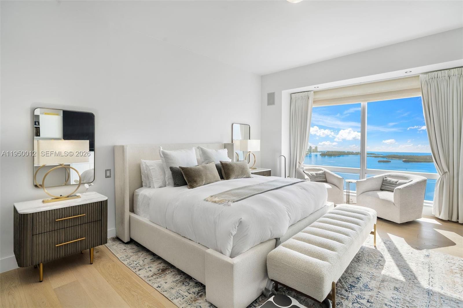 Experience unrivaled sophistication in this exceptional 3,357 square foot corner residence at the iconic Four Seasons Brickell, soaring above the city on the 58th floor. This exquisitely appointed 3-bedroom plus den, 4-bathroom home showcases sweeping panoramic views and a seamless blend of timeless elegance and modern comfort. Rich wood and marble floors flow throughout expansive open living spaces, illuminated by floor-to-ceiling glass that frames the skyline and bay beyond. Each bedroom is a serene private retreat with spa-inspired en-suite bathrooms and generous closet space. The chef’s kitchen is thoughtfully designed with top-of-the-line appliances and sleek refined finishes ideal for both intimate dining and entertaining. Residents enjoy access to an expansive 2-acre sun deck with lush landscaping, hammock gardens, a heated swimming pool, kids’ pool, whirlpool, lounge seating and poolside dining. Additional amenities include two on-site restaurants, a boutique, business center, 15,000 square feet of event space and a 50,000 square foot Equinox fitness club offering group classes, personal training and a full-service spa with a wide range of health and beauty treatments. Four Seasons services include personalized concierge, 24-hour in-room dining, valet parking, security, housekeeping, laundry and dry-cleaning services and curated activities for children.