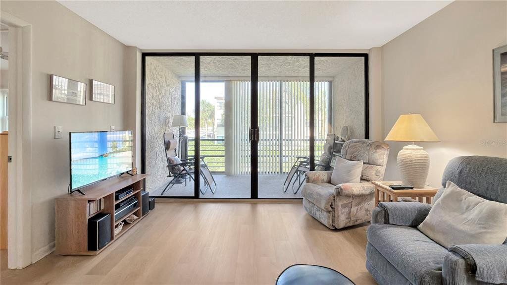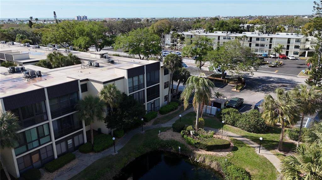 Elevate your living with this 2nd floor END-UNIT! Located in the 55+ & better community of Lakeview of Largo South Condo, featuring 2 bedrooms, 1.5 bathrooms, and nearly 900sqft of living space. The kitchen offers warm cabinetry and solid countertops, ready to take on meal times and preparations! The convenient breakfast bar connects the kitchen to an expansive living room, showcasing water views from any angle. Your living space is ILLUMINATED by the natural light coming in through the LARGE sliding doors that lead out to your SCREENED IN LANAI! Outdoor space is a must-have to enjoy all of Florida's beautiful weather. Neutral toned paint makes it easy to customize this unit to fit your style, while LVP FLOORING THROUGHOUT offers a seamless transition from room to room! The primary suite boasts an impressive size, while the primary bath offers XL counter space, a full tub/shower combo, and a generous WALK-IN CLOSET. You and your guests will appreciate the additional 1/2 bathroom located directly off of the second bedroom. Can't forget to mention... both bedrooms are topped off with PLANTATION SHUTTERS, and the washer and dryer are in the unit! No lugging your laundry around here! Residents enjoy the LOW MAINTENANCE LIVING of the condo life, where you can make friends at your community pool/spa and bocce ball, or stroll along the sidewalks between buildings. Located just minutes away from shopping/dining, Indian Rocks Beach, with a short drive to Saint Petersburg, Clearwater, and the airport... This condo has it all! The only thing missing is YOU!
