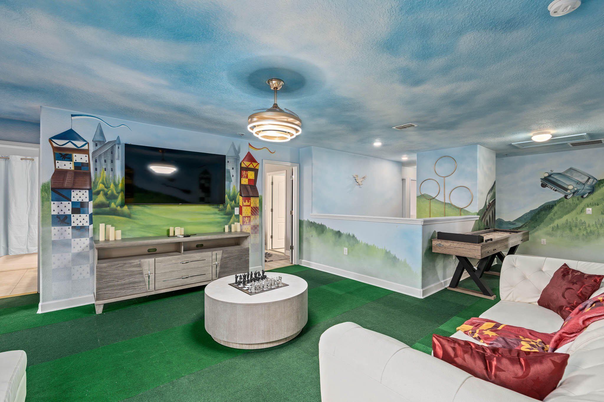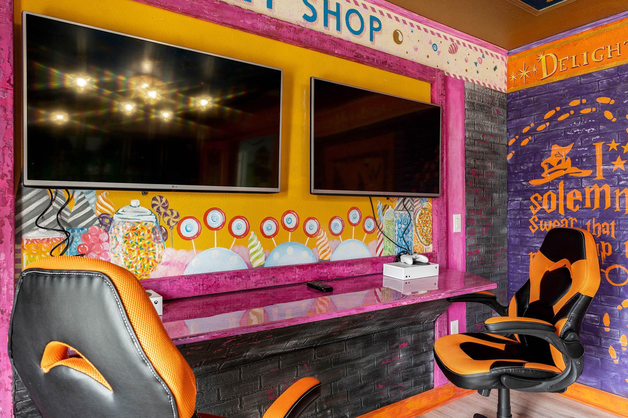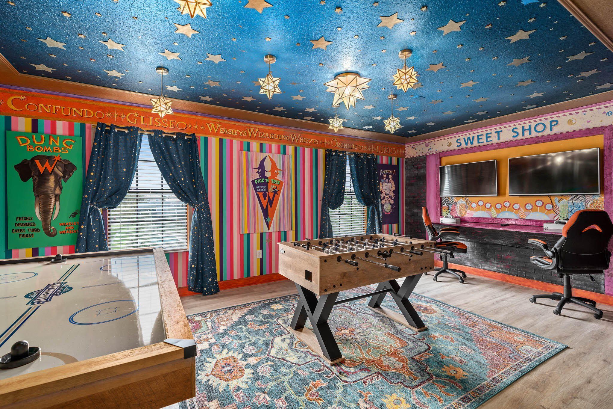 Magical 8-Bedroom Themed Villa in Champions Gate – Wizard World | Turnkey Investment Near Disney Step into Wizard World, a newly remodeled and fully themed 8-bedroom villa designed to captivate the imagination of families and groups. Located in Champions Gate community just minutes from Walt Disney World and other Orlando theme parks, this exceptional property sleeps up to 16 guests and offers a rare opportunity to own a turnkey rental or a luxurious second home. Property Highlights: 8 Spacious Bedrooms with immersive themes including Harry Potter, Frozen, Star Wars, and Minions — each room thoughtfully designed to create a memorable experience for guests of all ages. Private Pool & Spa in a screened lanai, great for relaxing after a day of park adventures. Dedicated Movie Theater offering a cinematic experience in the comfort of home. Custom Game Room with a variety of entertainment options. Resort & Community Amenities: Enjoy exclusive access to the Oasis Clubhouse amenities, featuring: Resort-style pool, lazy river, and water park with water slides Fitness center and theater room Game room and play area Tiki bar, tennis courts, and sand volleyball court 36-hole championship golf course Gated community with 24/7 security for peace of mind and easy access via a parking pass. Don’t miss your chance to own this enchanting villa in one of Central Florida’s most sought-after vacation communities.