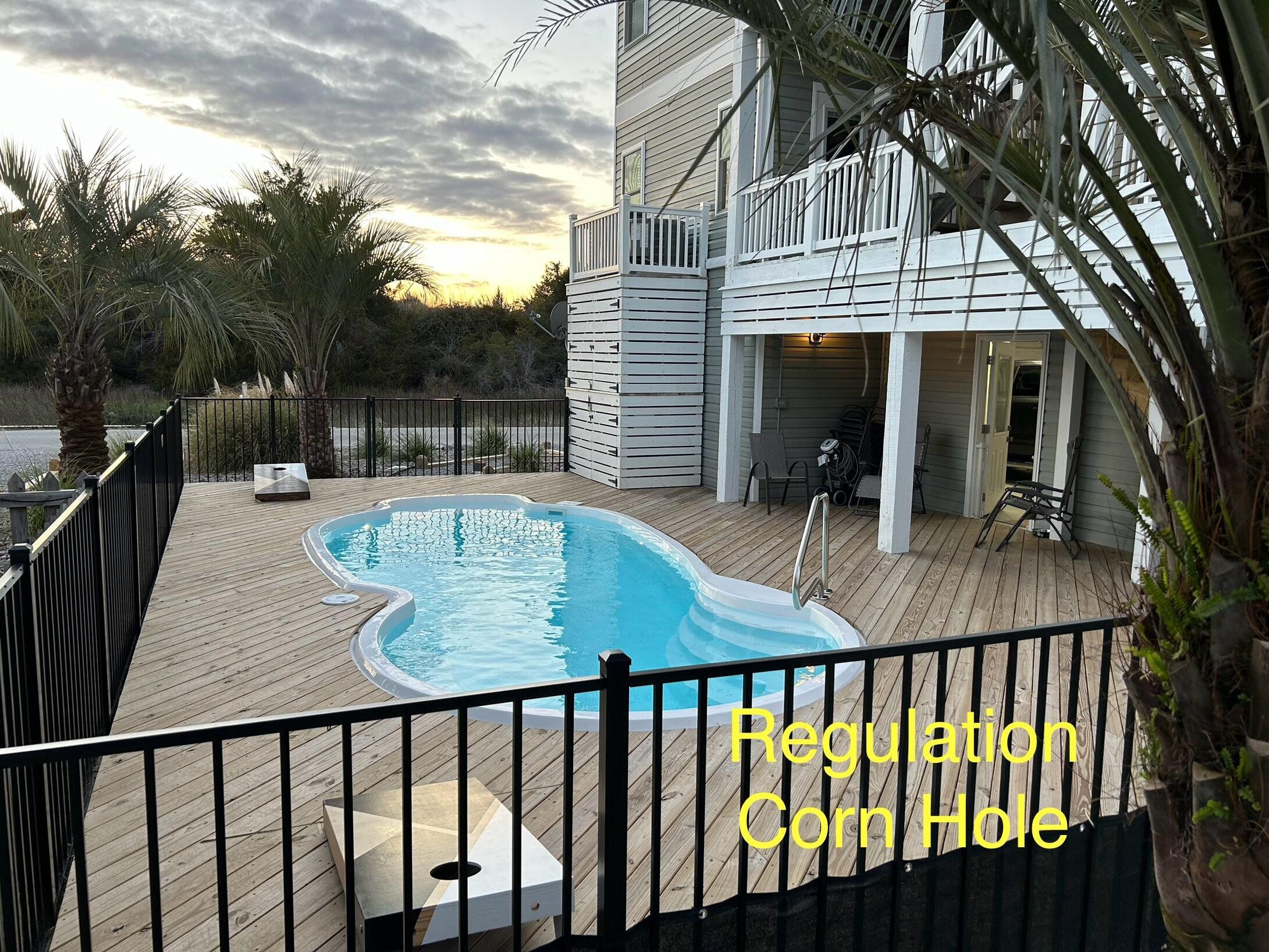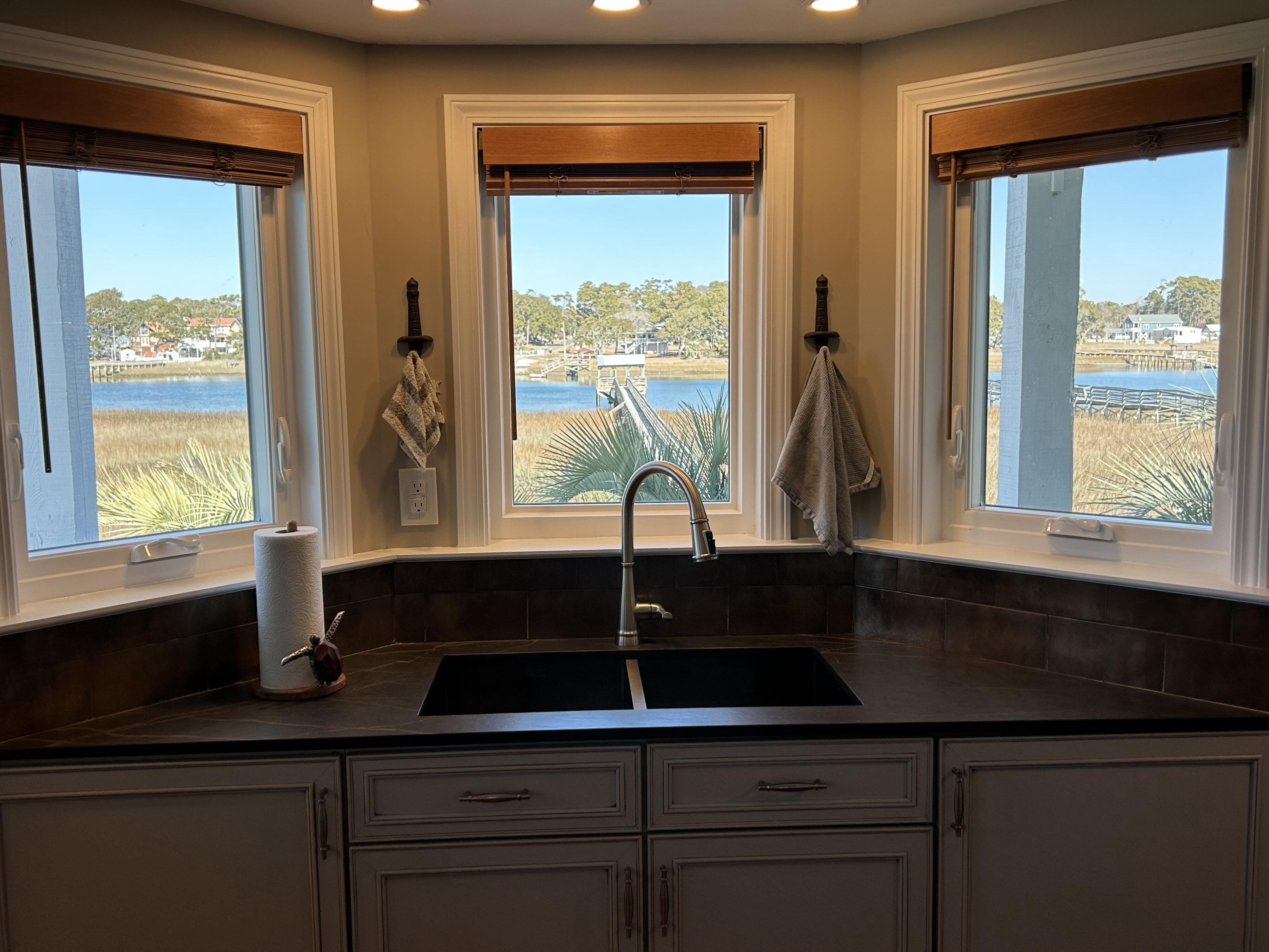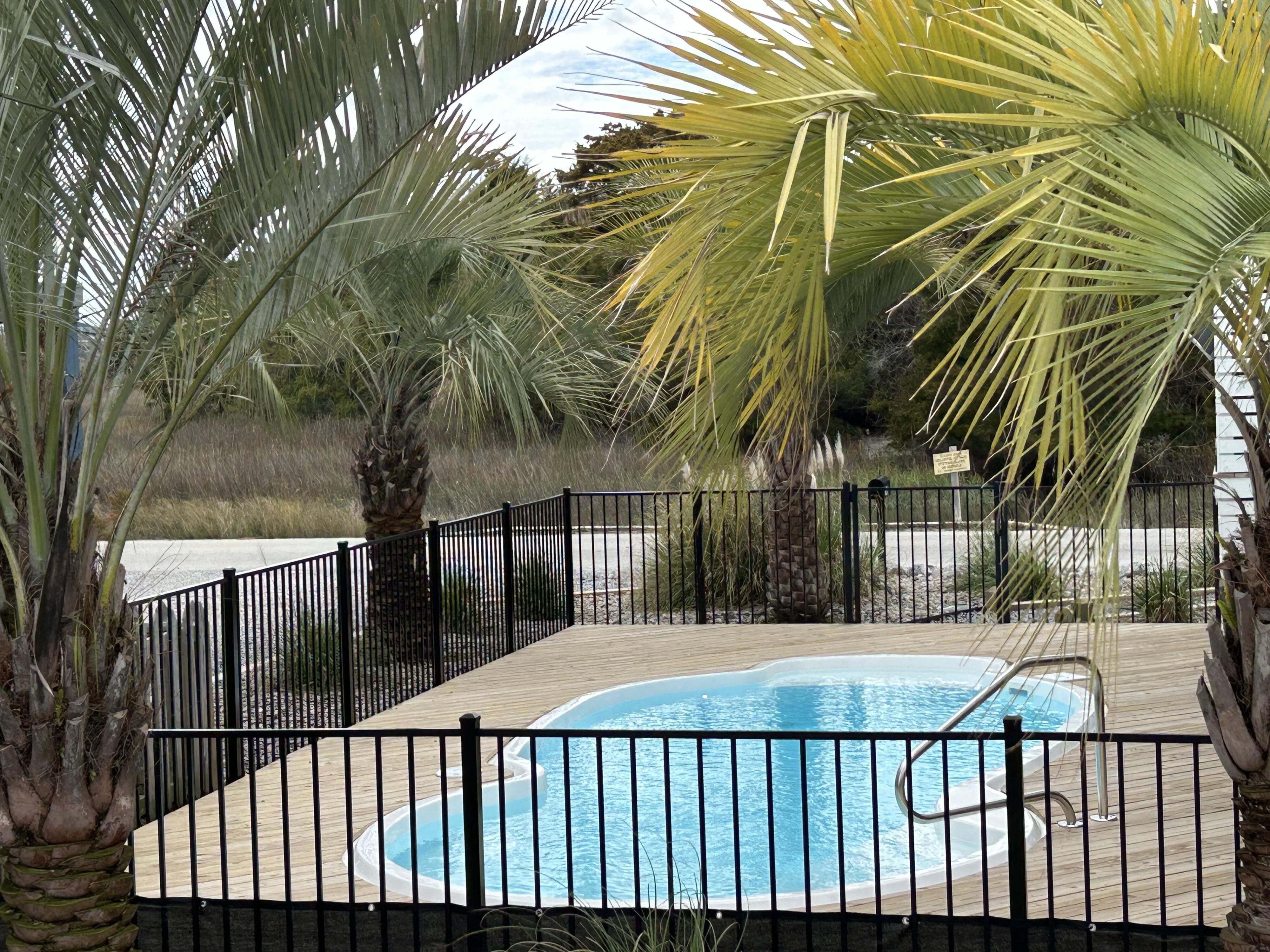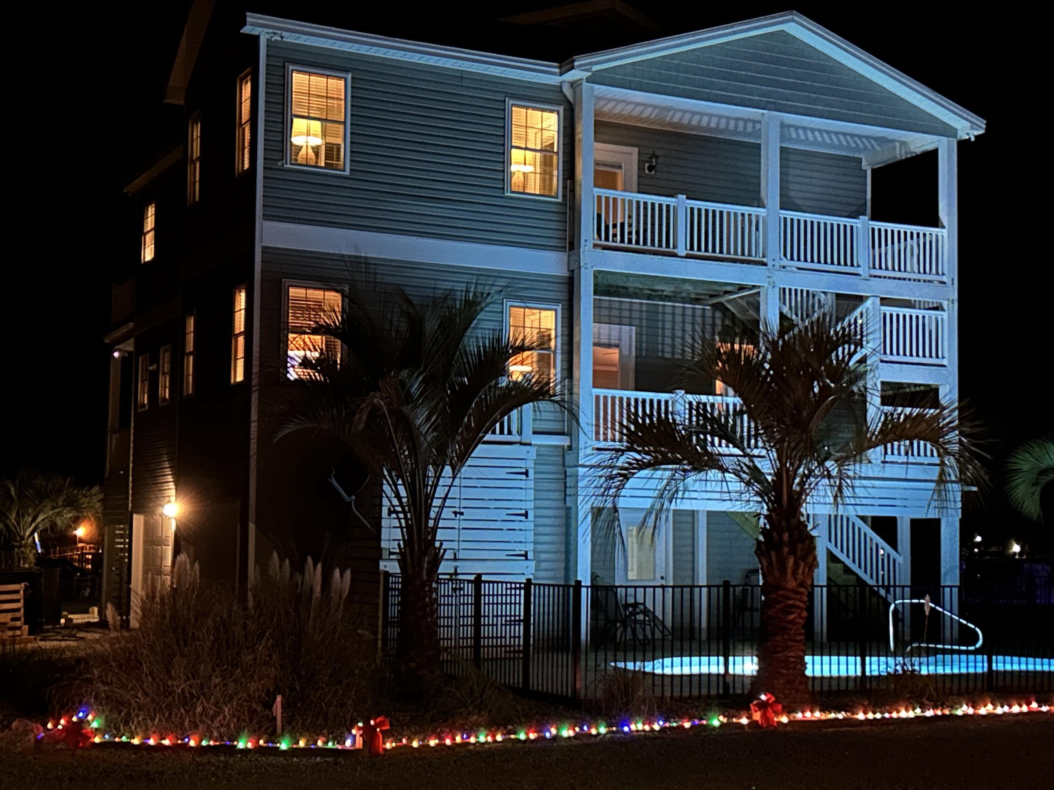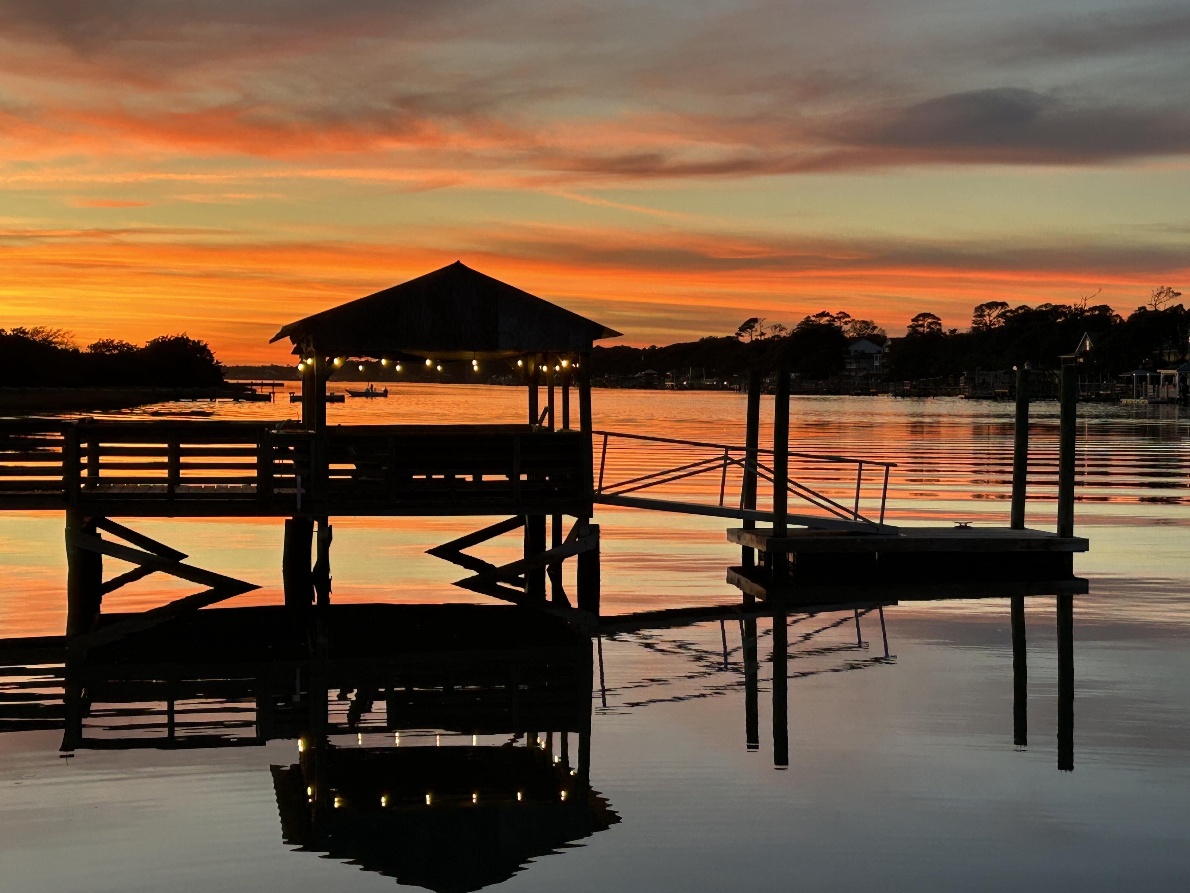 Marker 57 in NOT a canal house. This home is on the actual Intracoastal Waterway with wide open sweeping views with a dock and gazebo with both sunrise and sunset views up and down the waterway that you just don't get from canal houses. Watching the yacht migration each spring and fall never gets old. Fishing, sunning and socializing is a completely different experience here than on a canal. ... Marker 57 is an easy 5 minuet walk to the beach along a 50 acre green marsh arriving at the General Store and Haley's Ice Cream right on the beach. The neighboring marsh and wonderful tidal creek that wrap around the house are features that few homes have and make this place special. Large waterfowl have a thoroughfare between the house and marsh island trees and sore right by the porch corners and kitchen windows. The creek is full of baitfish and attracts a lot of sea birds. Watching the tide come and go in and out of the creek every day is very satisfying. ... Marker 57 is professionally decorated in a casual nautical theme and comes with all new (as of 2024) furniture, decor, 9 large TV's, 12 appliances, 8 quality mattresses, and much more. ... Marker 57 is 5 bedrooms counting the Bunk Room. It sleeps 4 and has 10 large drawers for clothing and hanging space in the hall. There is also a half bath in the hall. All 5 bedrooms have glass doors leading to various different balconies. The house has 5 toilets and 5 showers all total. The tankless gas water heater provides endless hot water to all 5 showers at the same time. ... Marker 57 having no canal in the back yard allows the wonderful pool with a big marsh view. The gas pool heater is so powerful it will heat the water in just a few hours. The adjacent enclosed ground level of the house is not part of the heated square footage but is a significant feature of the house. With the game area, TV room full bath, direct access to the pool and front patio, it becomes Grand Central Hangout.