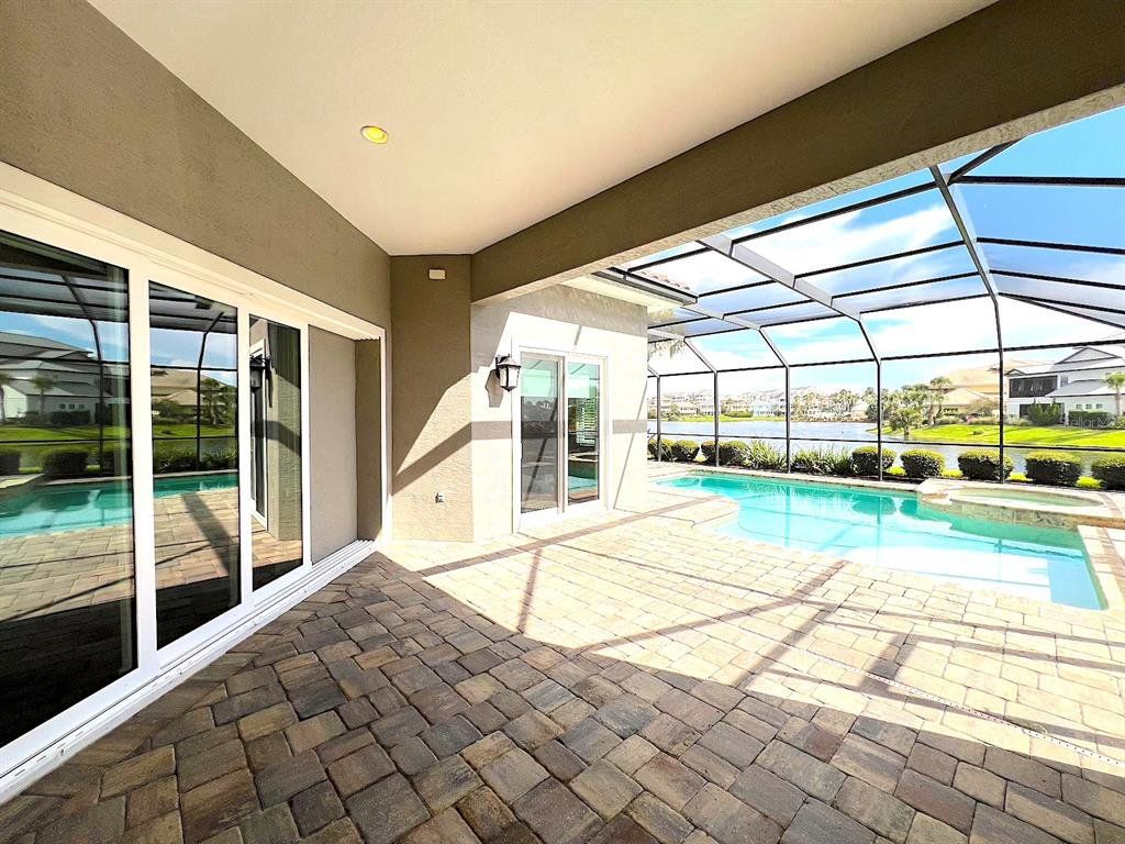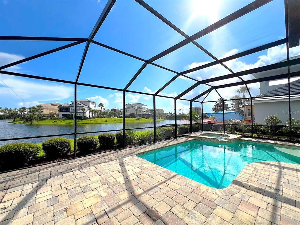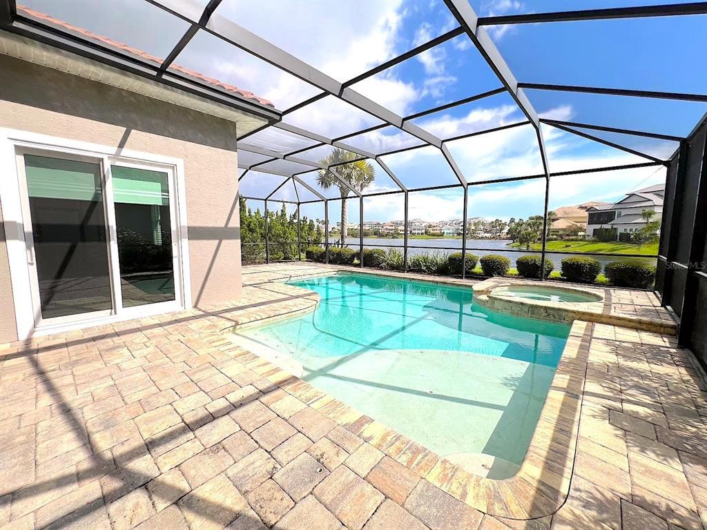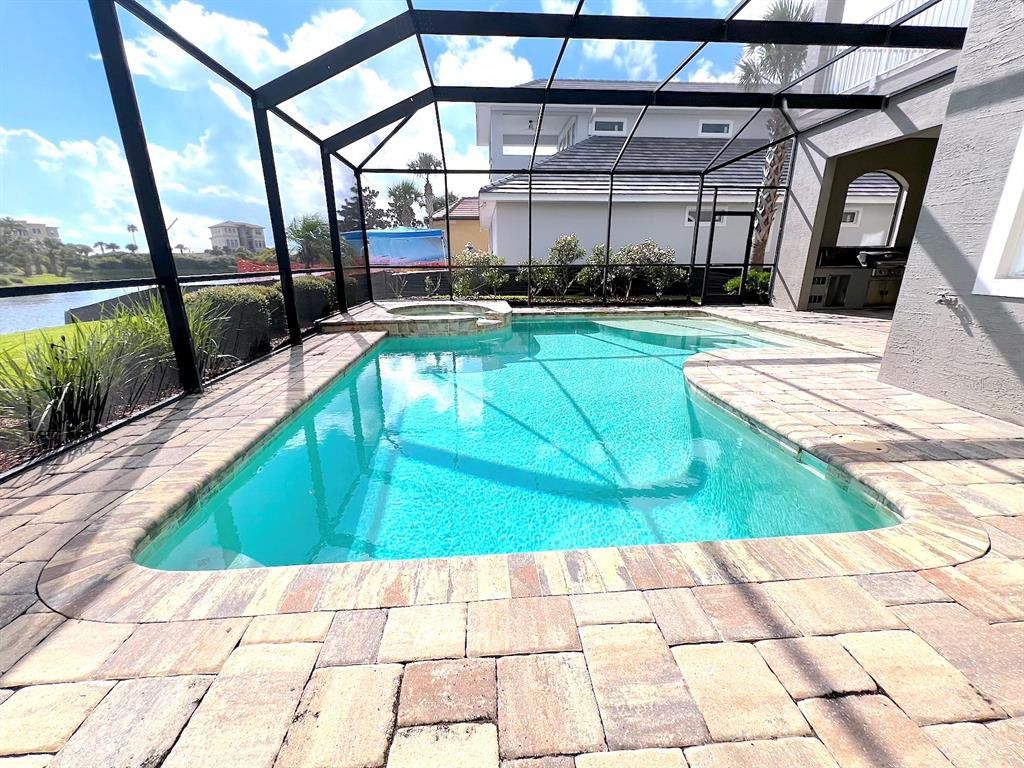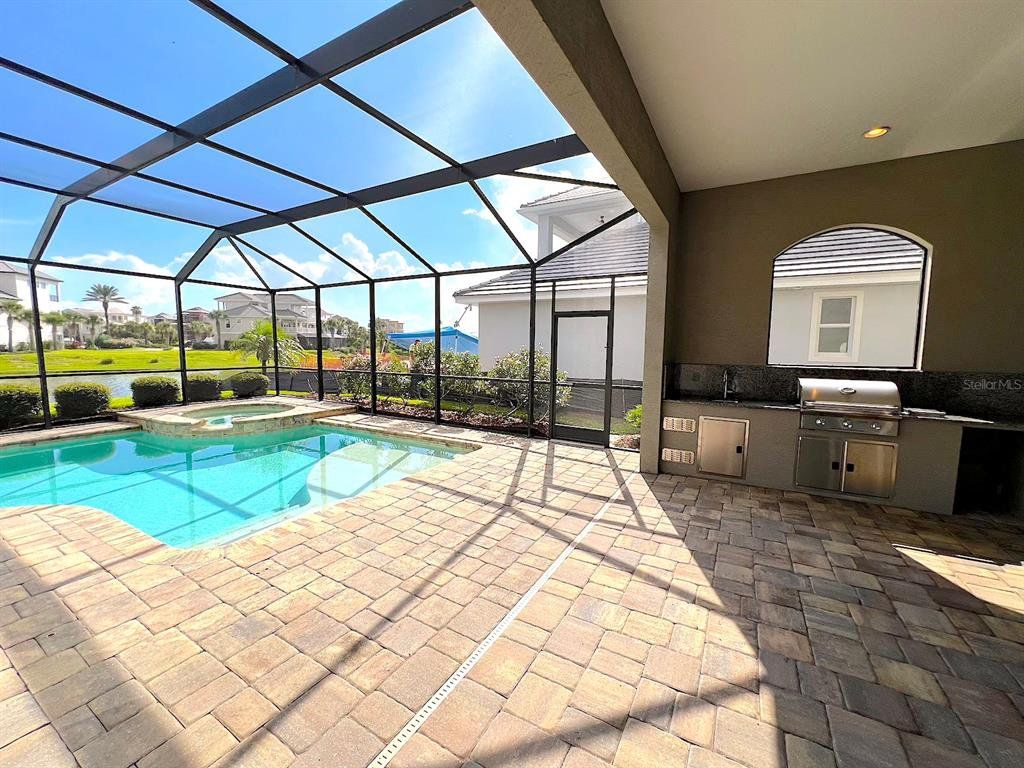 Built by Bellagio Custom Homes this fantastic 3 bedroom, 1 office, 3.5 bathroom, 2 car finished garage home features LAKE and OCEAN views and is a short walk from the beach! The ultra luxury home offers tons of upgrades like tray ceilings, porcelain wood-look tile and a gourmet kitchen with custom cabinets, accented by a glass tile backsplash, and beautiful quartz countertops. Other upgrades include Kohler enamel sink and stainless appliances, including a gas range and electric wall oven. The kitchen opens to the great room which is anchored by a gorgeous tiled electric fireplace. Each bedroom features its own bathroom access. The second floor offers water views from a huge bonus room and balcony with a wet bar. The home comes with a gorgeous screened pool and spa, as well as a large summer kitchen w Grill and stunning WATER VIEW! This house is located in the exclusive Hammock Beach gated community and is close to everything Palm Coast offers, including shopping, entertainment, schools, parks, and more. Easy access to major roadways and the I95 makes for easy commute to Jacksonville or Daytona Beach. LAWN CARE INCLUDED. Apply today! LBTR#13922