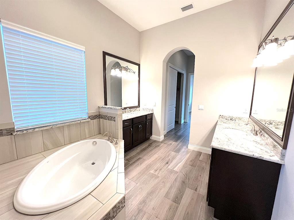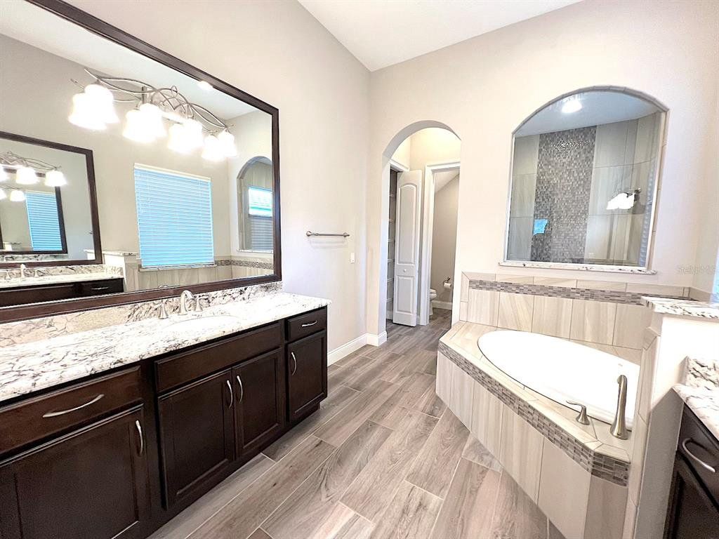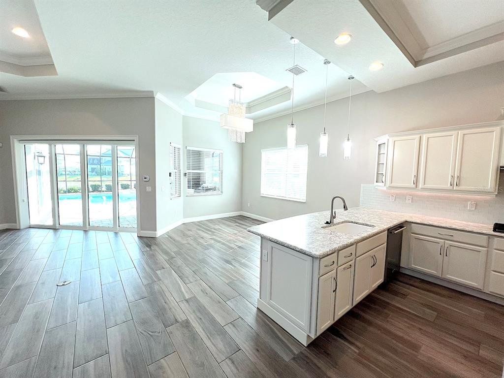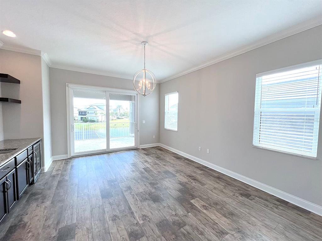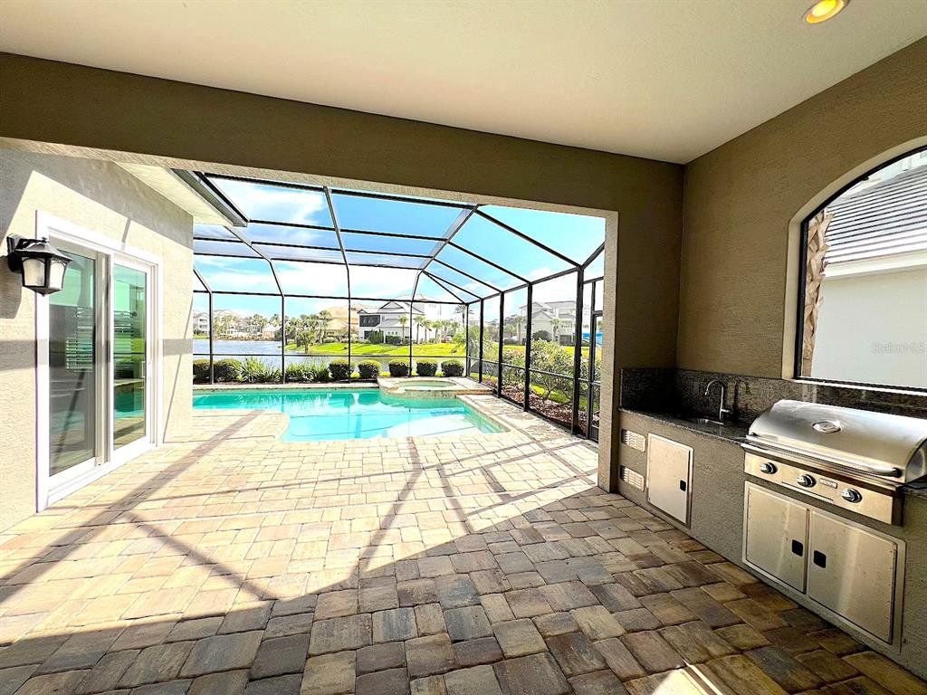 Built by Bellagio Custom Homes this fantastic 3 bedroom, 1 office, 3.5 bathroom, 2 car finished garage home features LAKE and OCEAN views and is a short walk from the beach! The ultra luxury home offers tons of upgrades like tray ceilings, porcelain wood-look tile and a gourmet kitchen with custom cabinets, accented by a glass tile backsplash, and beautiful quartz countertops. Other upgrades include Kohler enamel sink and stainless appliances, including a gas range and electric wall oven. The kitchen opens to the great room which is anchored by a gorgeous tiled electric fireplace. Each bedroom features its own bathroom access. The second floor offers water views from a huge bonus room and balcony with a wet bar. The home comes with a gorgeous screened pool and spa, as well as a large summer kitchen w Grill and stunning WATER VIEW! This house is located in the exclusive Hammock Beach gated community and is close to everything Palm Coast offers, including shopping, entertainment, schools, parks, and more. Easy access to major roadways and the I95 makes for easy commute to Jacksonville or Daytona Beach. LAWN CARE INCLUDED. Apply today! LBTR#13922