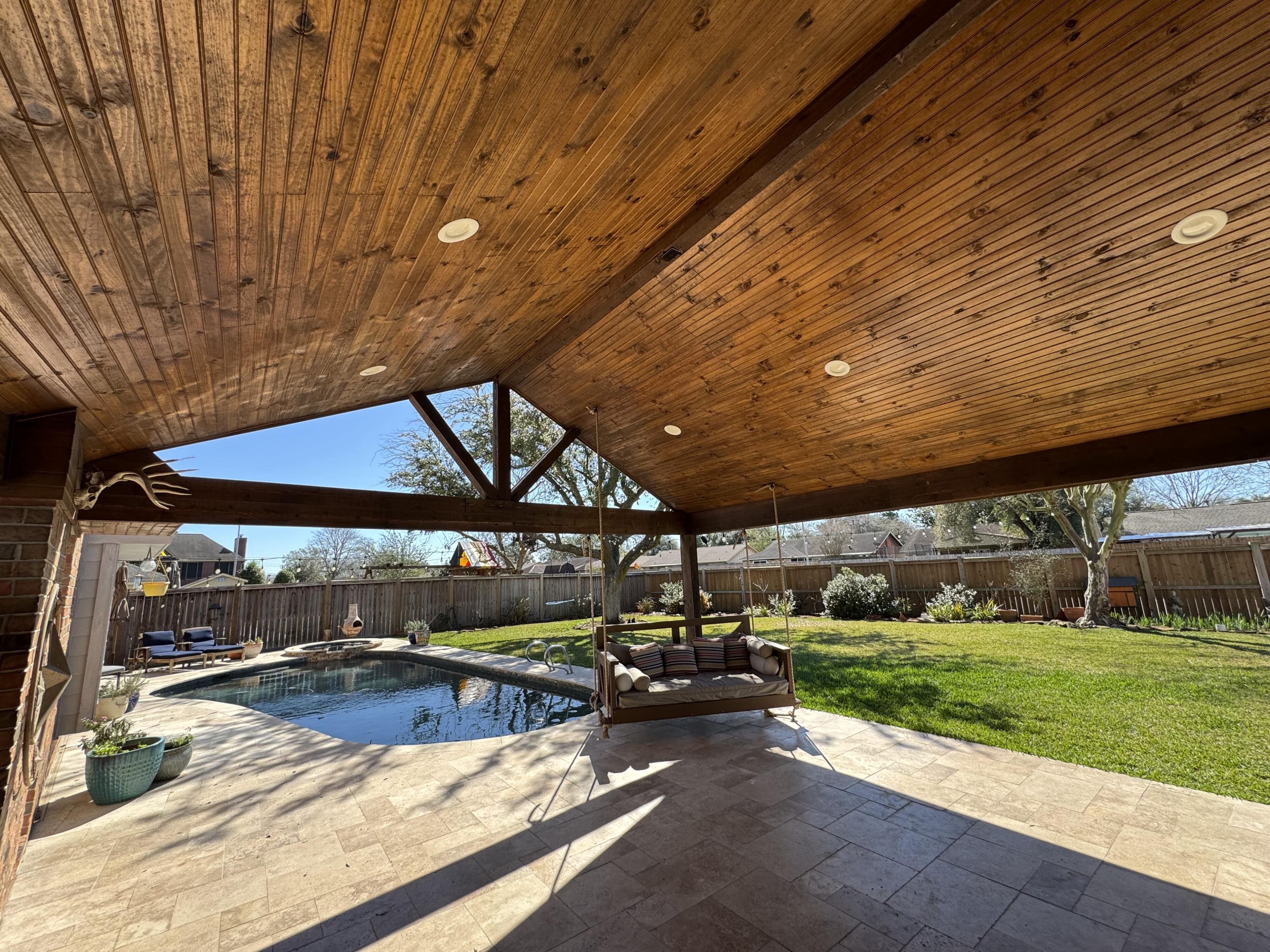 Beautiful family home on small, quiet cul-de-sac street in heart of Deer Park, short distance to schools. Completely renovated home over the last few years with new windows, plantation shutters, wood floors, kitchen appliances, cabinets and paint, huge patio with wood slat ceiling and travertine decking around large pool. Beautifully landscaped and expansive backyard with large oak tree and tons of room for the family to enjoy. This is an extremely unique home in a wonderful neighborhood with no HOA!