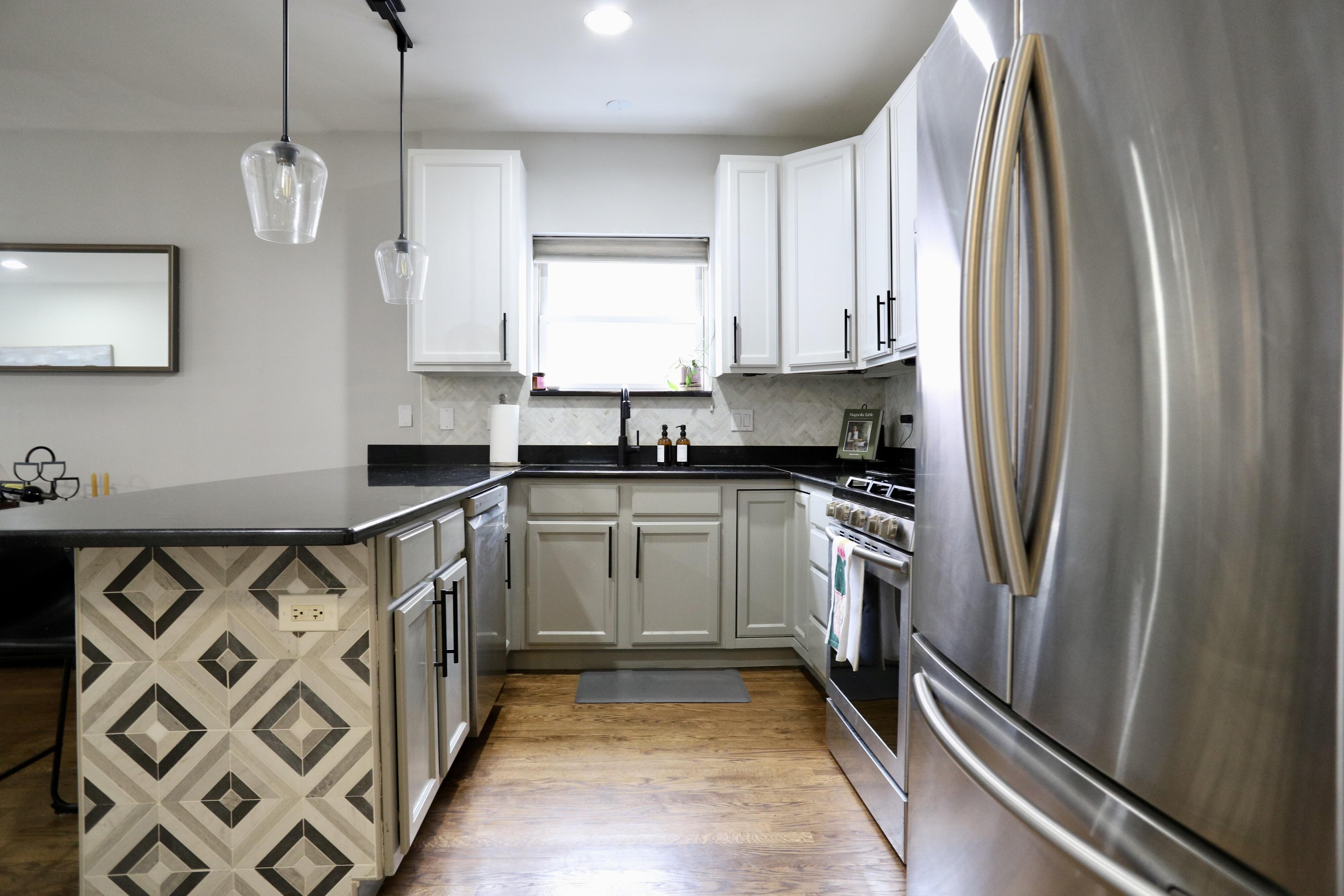 Experience this updated 3-bedroom, 2.5-bath duplex-down in West Town/Wicker Park, featuring multiple outdoor spaces and thoughtful renovations throughout. Fully updated, this home is truly move‑in ready. The main level contains an open living/dining area with a newly renovated gas fireplace, a large kitchen island for entertaining, and a dramatic two-story window overlooking tree-lined Artesian Avenue. This window extends to the lower level, bringing abundant natural light into the secondary family room. Motorized Hunter Douglas shades provide effortless privacy. The lower-level family room accommodates a full entertainment setup and sectional seating. Custom sliding barn doors open to a flexible third bedroom fit for an office or workout space. The kitchen features a herringbone backsplash, dark granite countertops, and custom-painted cabinetry. All bathrooms have been newly renovated with modern finishes. Two outdoor spaces complete the home: a front patio with custom benches great for entertaining and a private rear patio off the primary suite. Two outdoor parking spaces are included.