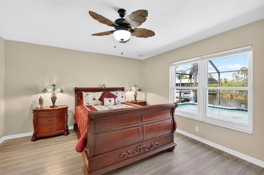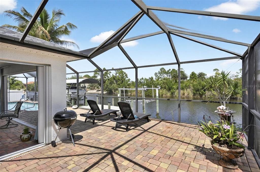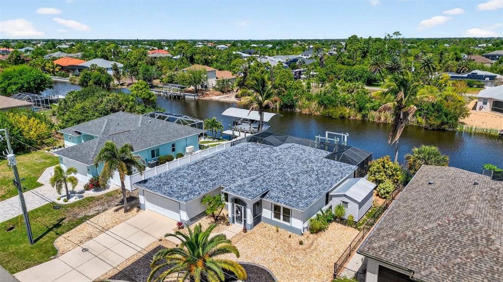 Step into a waterfront retreat where every detail has already been thoughtfully elevated-- this canal-front home is truly move-in ready and designed for effortless Florida living. From the moment you arrive, you’ll feel the care and quality poured into every newer upgrade: ROOF (2023) HVAC (2022) POOL HEATER (2025) POOL PUMP (2023) SALT CELL (2025) WATER HEATER (2025) INSULATED GARAGE CEILING R-30 (2025) EPOXY GARAGE FLOOR (2025) FRONT ENTRY DOOR FULL GLASS IMPACT (2025) PAINT INSIDE AND OUTSIDE (2023) and many more too much to list.Enjoy your private dock with an 8,000 lb boat lift, making it easy to spend your days on the water, and unwind in your saltwater heated pool within a screened encloser perfect for year-round relaxation. The lanai offers added comfort and flexibility with locking according hurricane sliders, enjoy the Sunsetter motorized awning, creates the ideal setting for sunset evenings. Peace of mind comes with CAT- 5 Miami, approved hurricane impact windows throughout-enhancing safety, lowering energy costs, and even helping insurance premiums. Inside, the home shines with LG stainless steel appliances, beautifully upgaded granite counter tops in both the kitchen and baths, and a built-in bar that’s perfect for entertaining. Upgraded flooring in bedrooms (2019). Additional, 2 outside storage sheds, one with AC and electric, 8‘ x 14’. Homes like this don’t come along often- where luxury, functionality, and waterfront living align so seamlessly. Don’t wait and watch this opportunity slip away!!! Now is the time to make this exceptional home your own and start creating the lifestyle you’ve been dreaming of. Home Never Flooded!