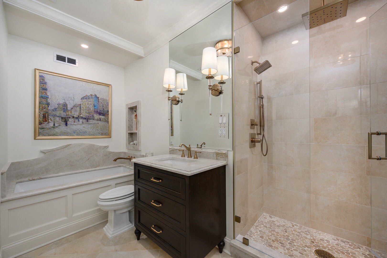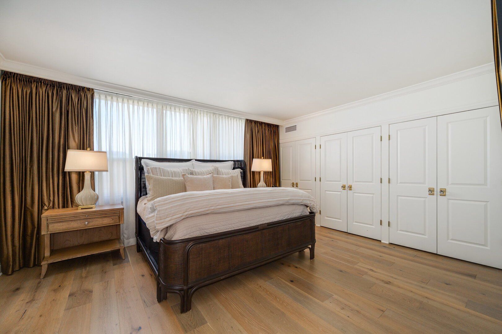 An extraordinary residence on one of Chicago's most coveted and historic streets, this impeccably reimagined Astor Street condo offers a rare blend of timeless elegance, modern luxury, and full-amenity living. Set within a beautifully maintained, full-service building where security, refinement, and sophistication greet you upon entry, this 5th-floor home enjoys serene treetop views of iconic Astor Street. Purchased in 2022 by only the second owners, this residence underwent a comprehensive, no-expense-spared renovation, thoughtfully curated with exceptional craftsmanship and premium finishes throughout. Wide-plank 7" white oak floors flow seamlessly under soaring ceilings, complemented by custom trim, wainscoting, crown moldings, and solid interior doors that add architectural depth and warmth. All windows and doors are new throughout home. The chef's kitchen is both striking and functional, featuring panel-ready Sub-Zero refrigeration, a built-in 148-bottle wine refrigerator and a statement 36" stainless steel gas range with elegant gold accents. Custom cabinetry, Rejuvenation hardware and luxurious Taj Mahal quartzite countertops and backsplash elevate the space, while new fixtures create a refined ambiance. Floor-to-ceiling windows flood the home with natural light and open to a private balcony overlooking picturesque, tree-lined Astor Street. Motorized blackout shades offer both privacy and polish. The primary suite is a tranquil retreat, boasting abundant storage with his-and-hers closets outfitted with California Closets organizers, spa-inspired bathrooms adorned with detailed tilework, and premium Kallista, Kohler, and Delta fixtures. The secondary bedroom features custom-built wardrobes, ensuring every inch of the home is maximized with intention. An in-unit laundry center with built-in organizers further enhances everyday convenience. Residents enjoy a well-managed, financially sound building with heated valet parking with car wash, rooftop pool with breathtaking city and Lake Shore Drive views, and an unbeatable location, just half a block from Lincoln Park, one block from the North Avenue underpass providing effortless access to Lake Shore Drive and North Avenue Beach. Just steps from Chicago's most sought-after dining and shopping destinations. This is a rare opportunity to own a truly turnkey Gold Coast residence, be it your primary residence or pied-a-terre, where every detail reflects quality, care, and a genuine passion for elevated living on one of Chicago's most beautiful streets. Welcome home!